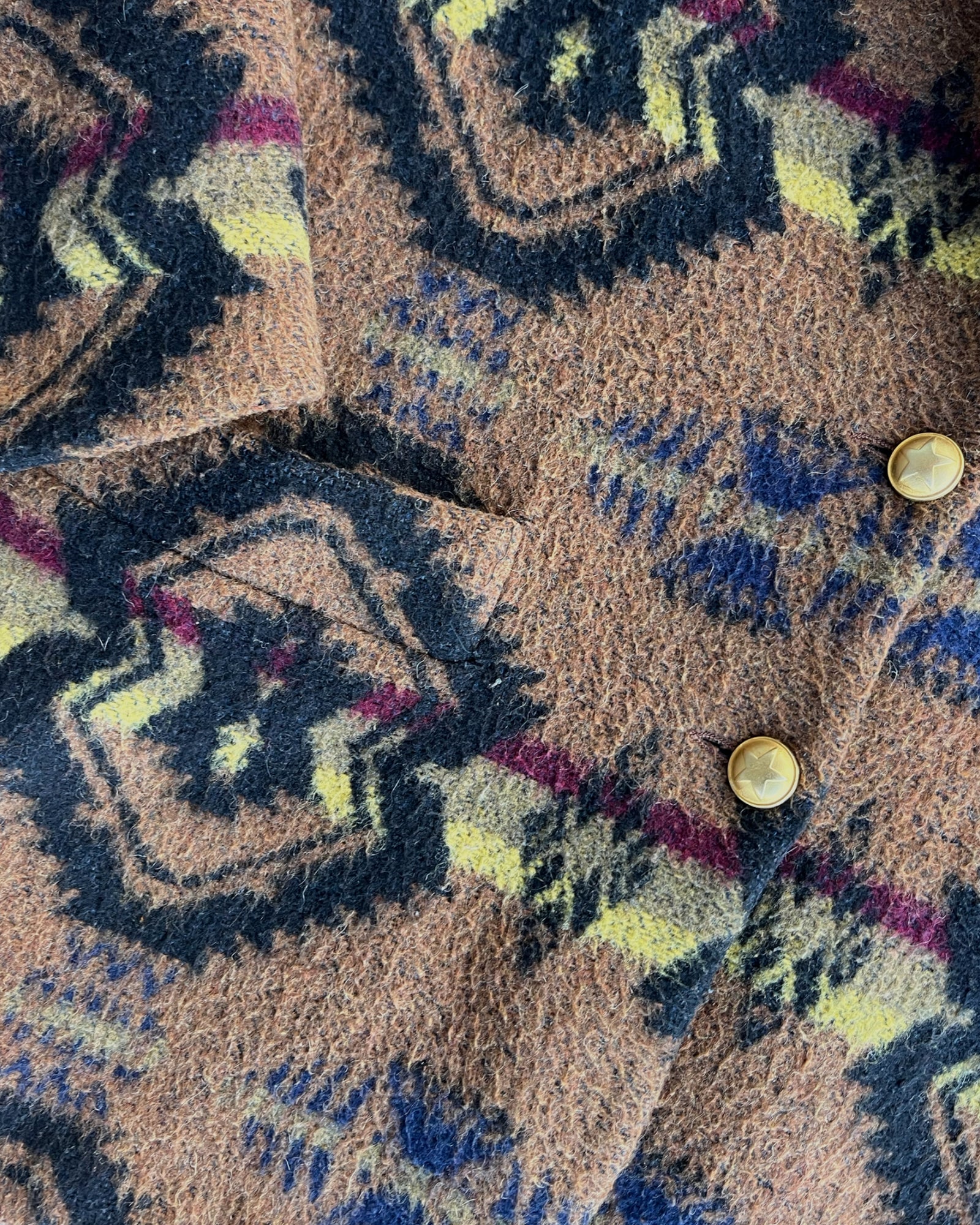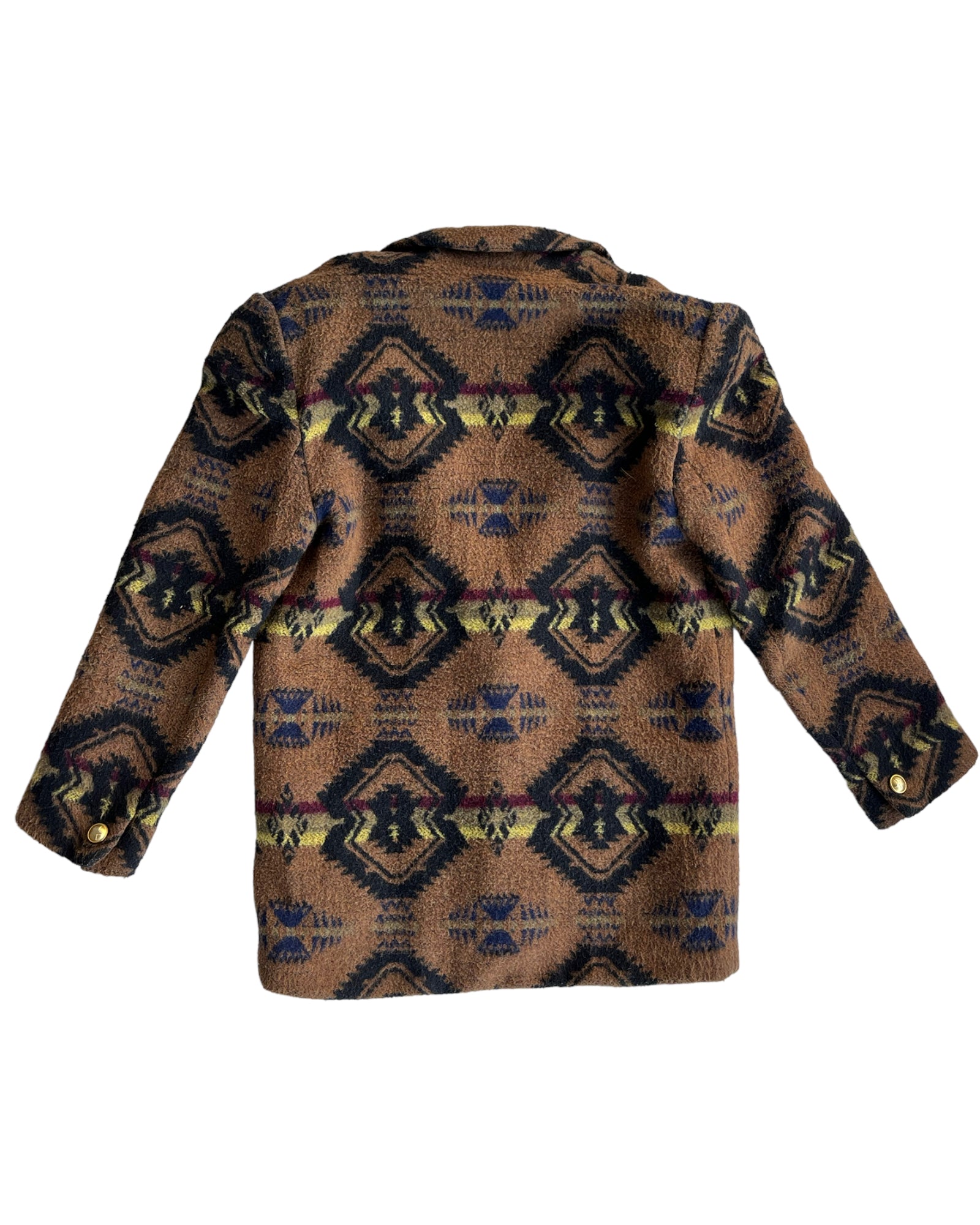 ABRIGO CAFÉ CON DETALLES TRIBALES Y BOTONES DORADOS DE ESTRELLA