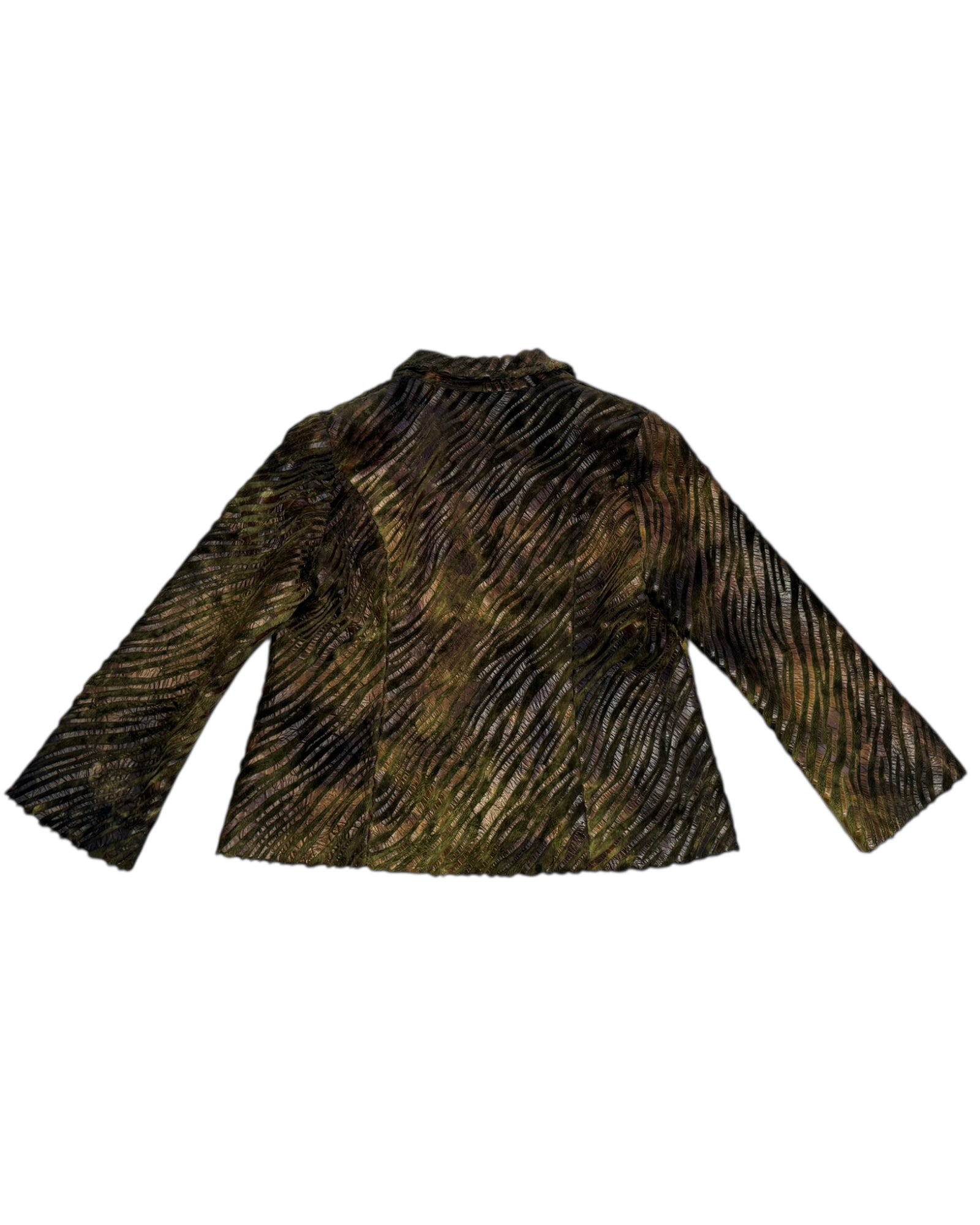CHAMARRA CAFE CON VERDE EN TEXTURAS DISTINTAS, ESTILO POLIPIEL Y DE PELO FALSO. 100% POLYESTER, BOTONES ERDES OVALADOS Y CON CUELLO. NO TIENE DETALLES, EN PERFECTAS CONDICIONES.