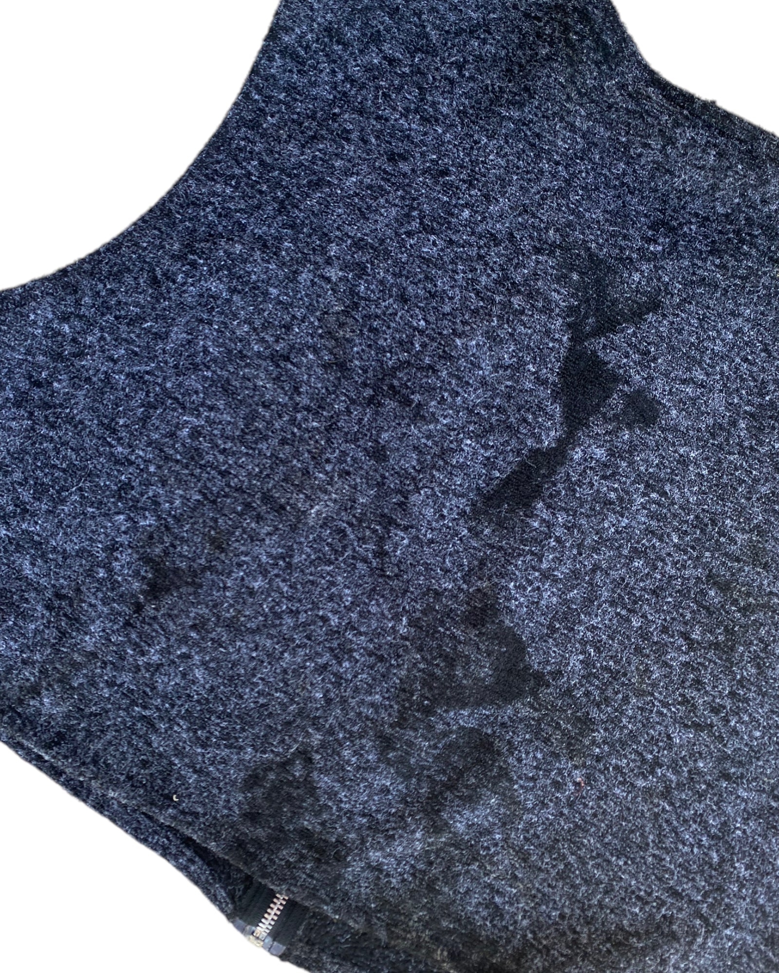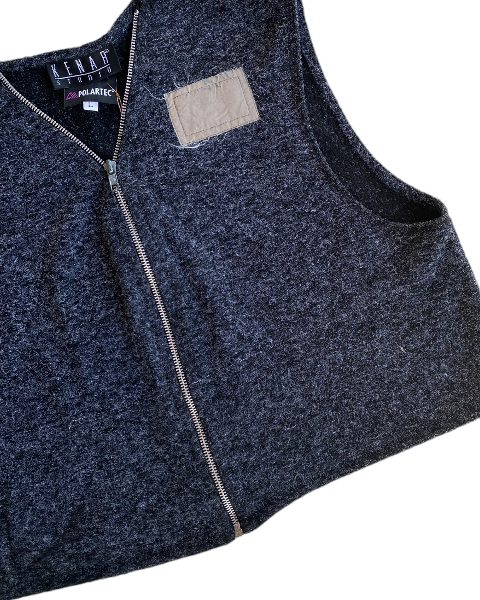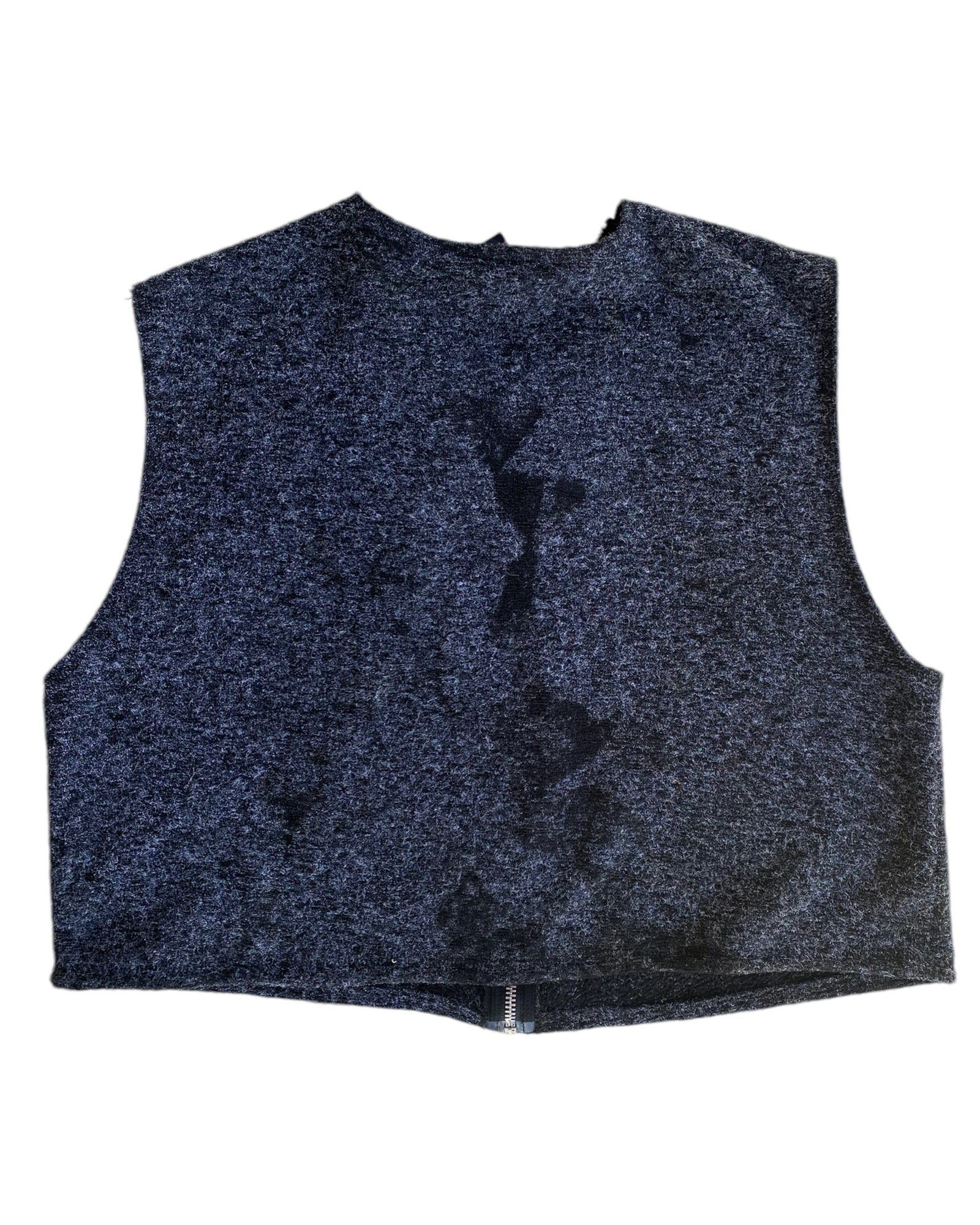 CHALECO GRIS OXFORD CROPPED CON ZIPPER PLATEADO 13% RAYON 84% POLYESTER DE TELA CALIENTE. SIN DETALLES DE USO.