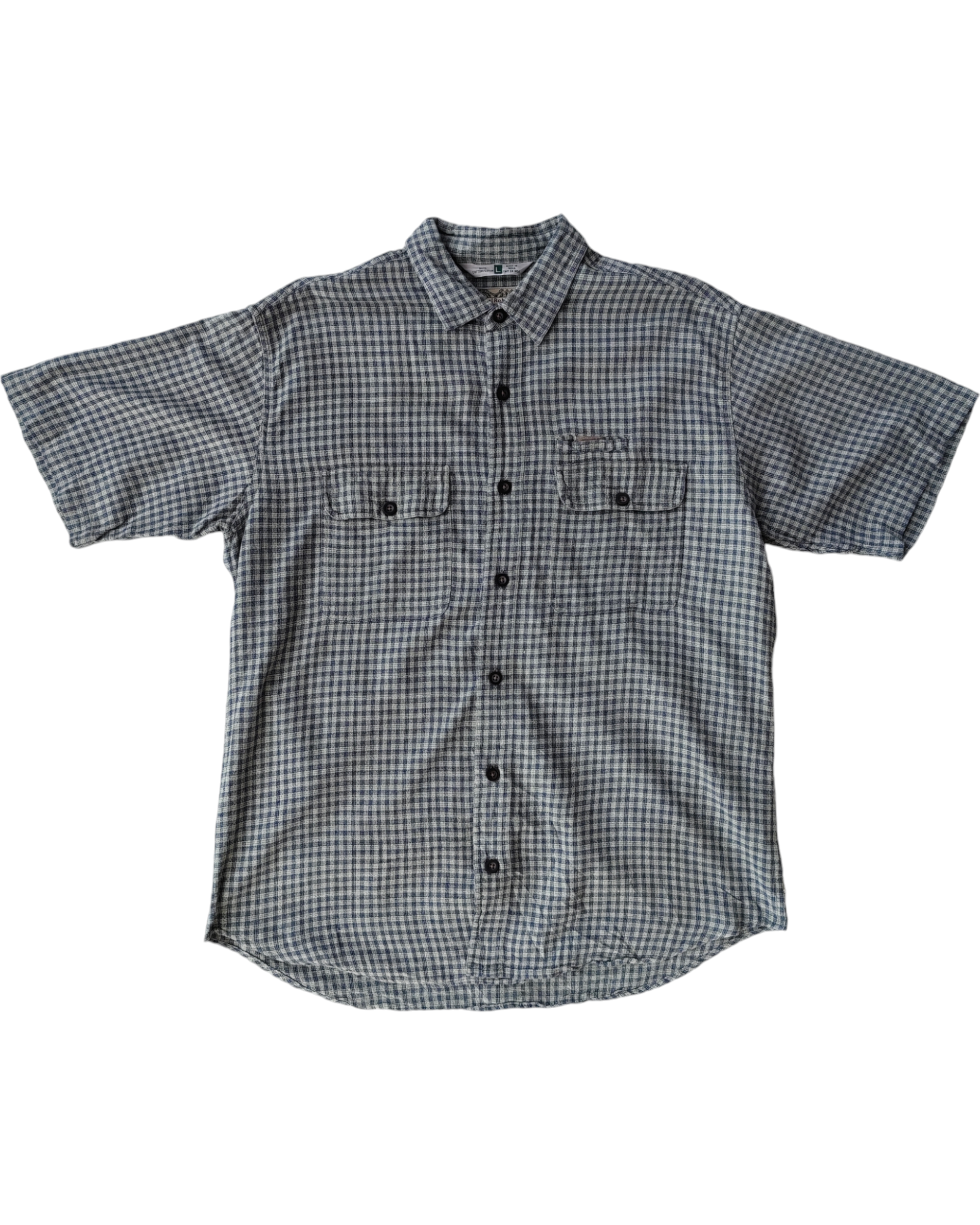 CAMISA DE CUADROS VERDE Y AZUL 100% ALGODON. MUY SUAVE Y CON DOS BOLSILLOS DELANTEROS FUNCIONALES. SIN DETALLES DE USO.
