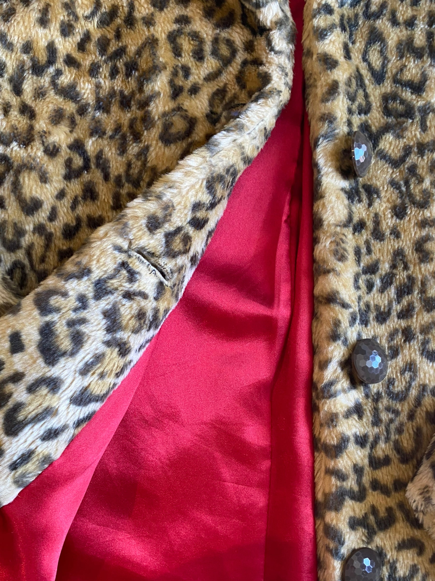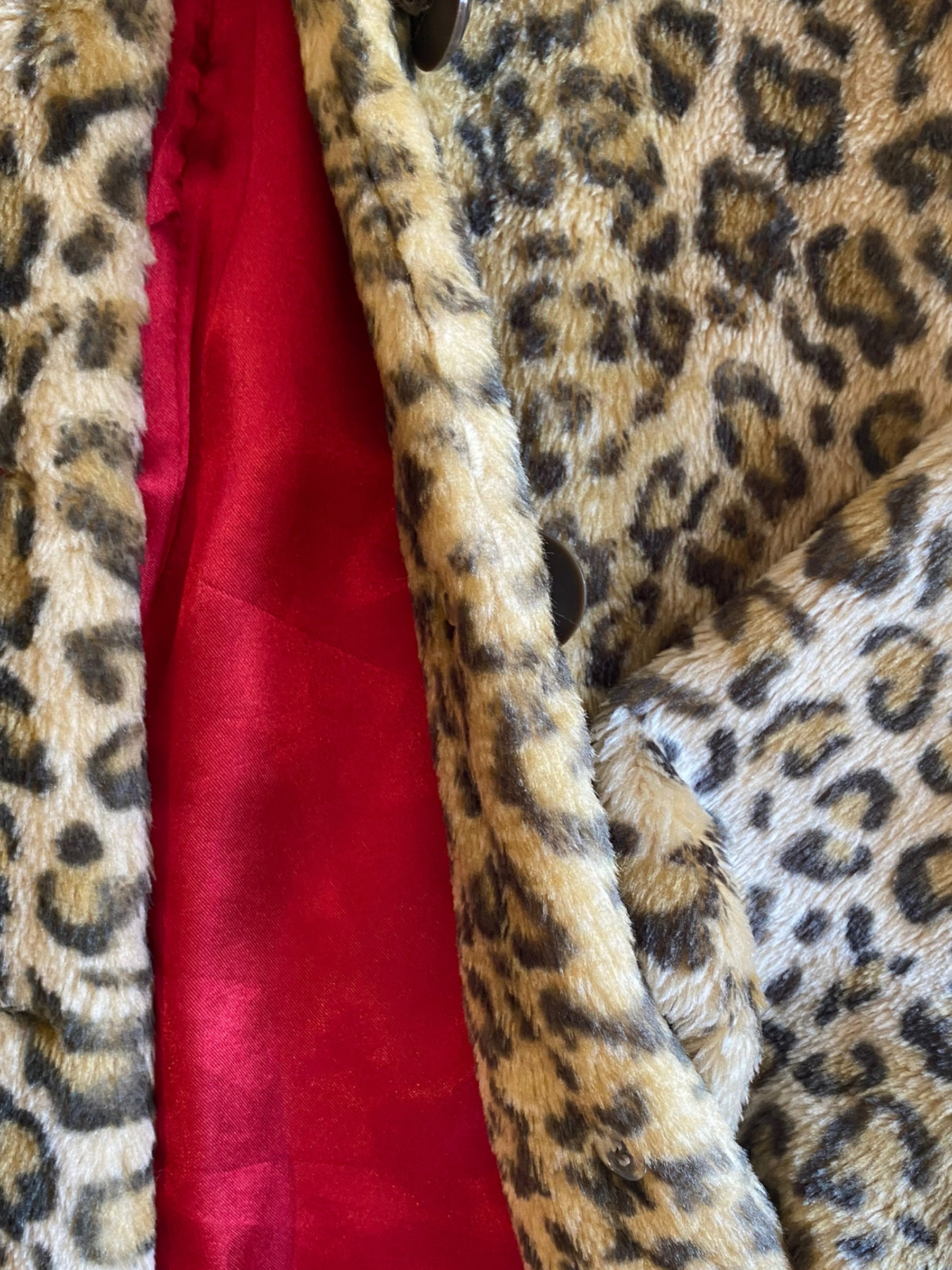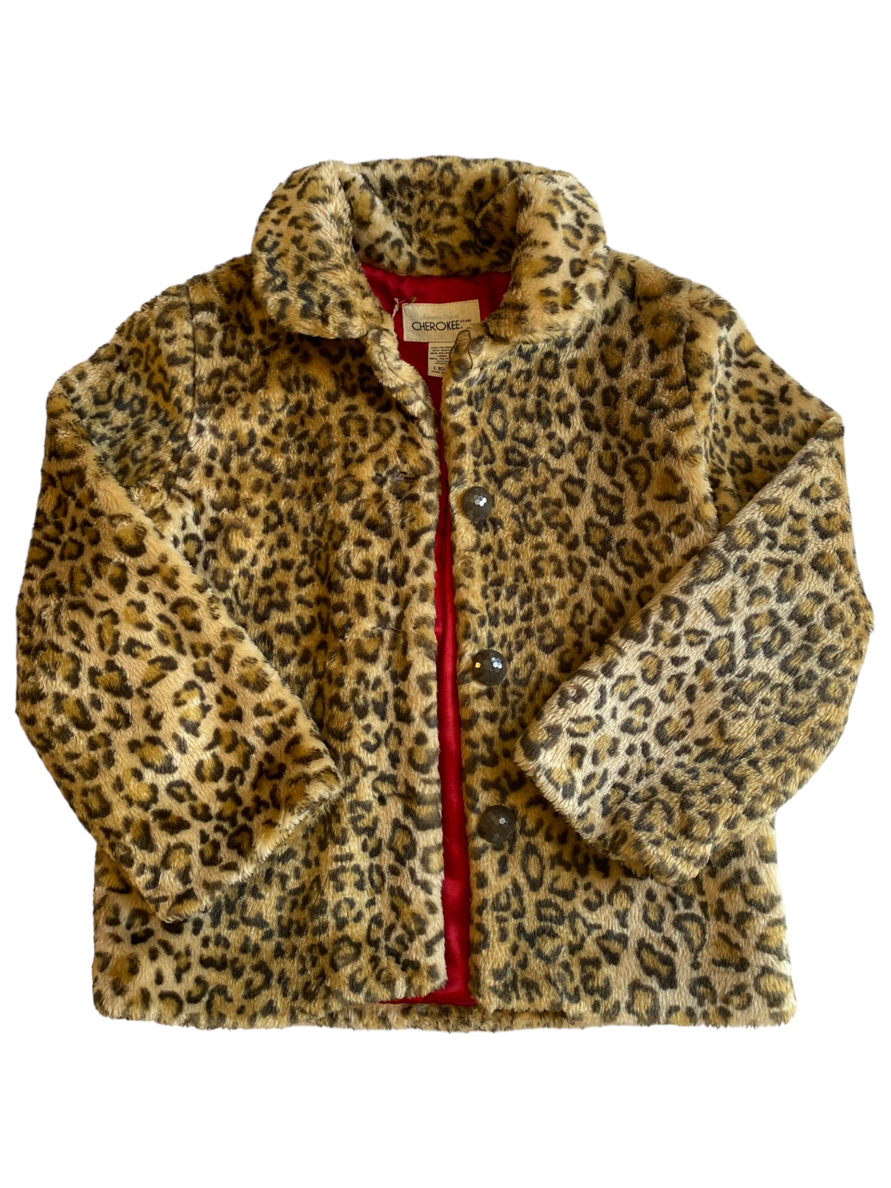 CHAMARRA CHEROKEE DE PELUCHE DE LEOPARDO CON INTERIOR ROJO HECHA DE POLIESTER
