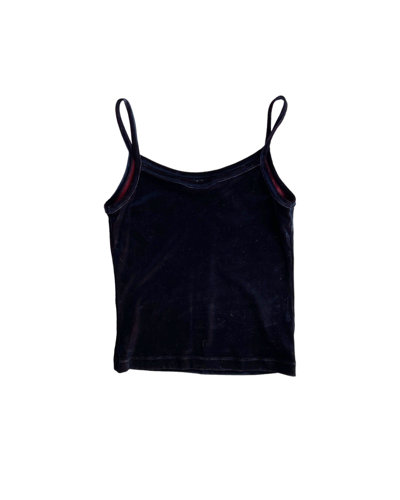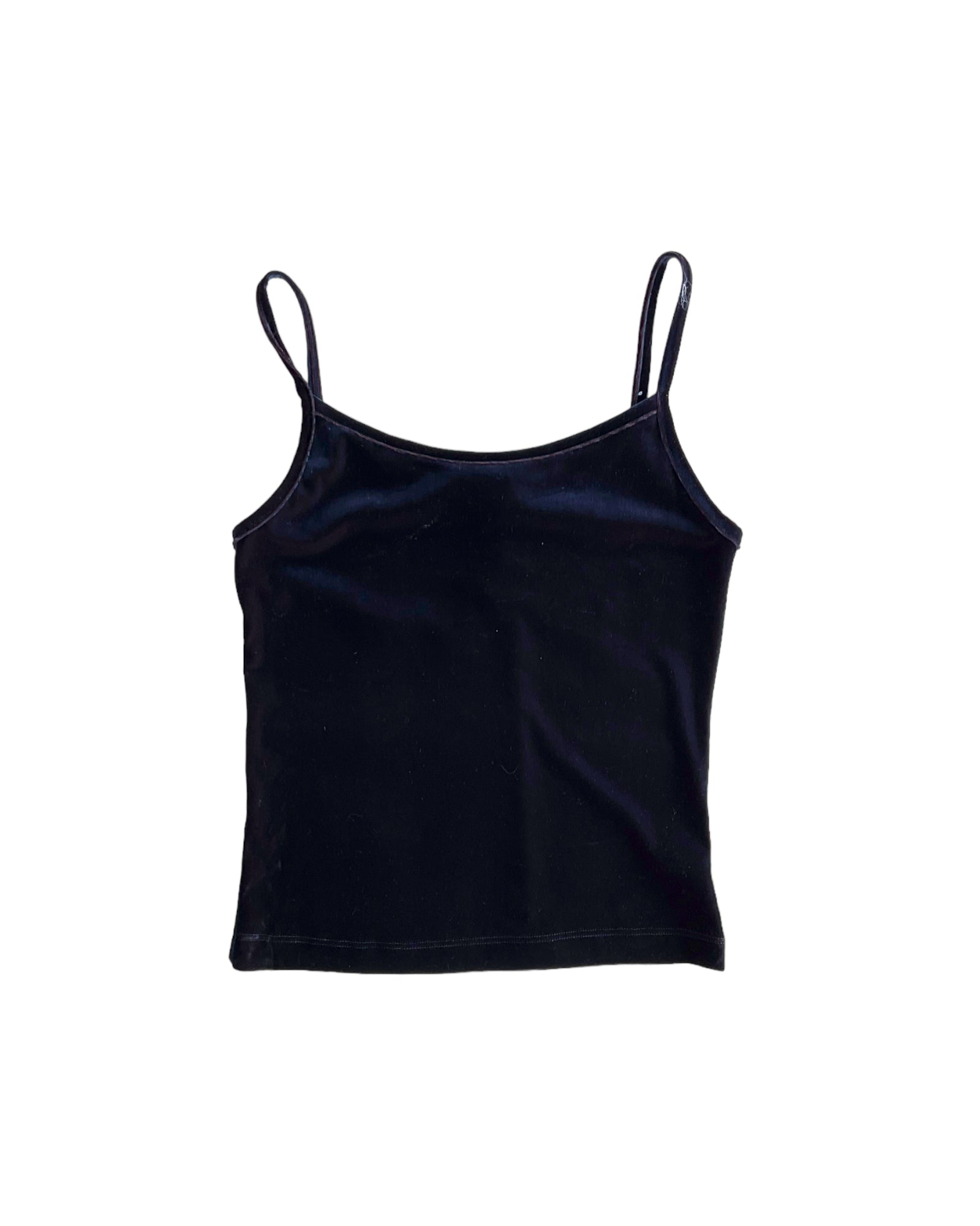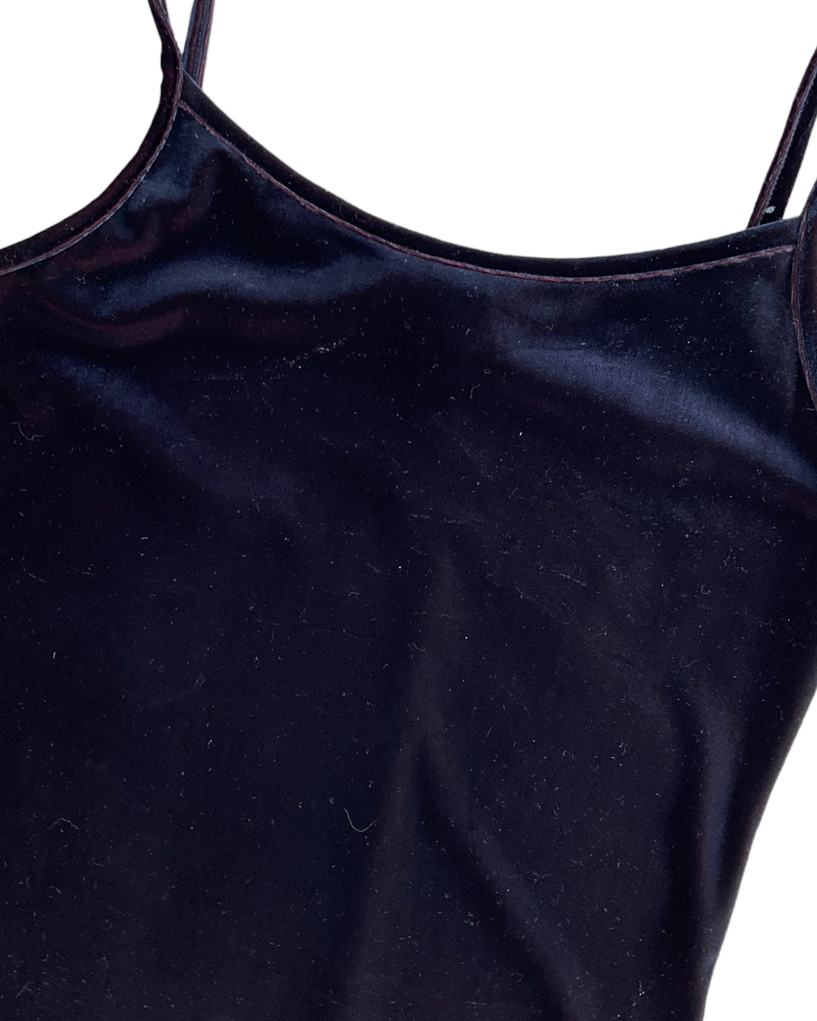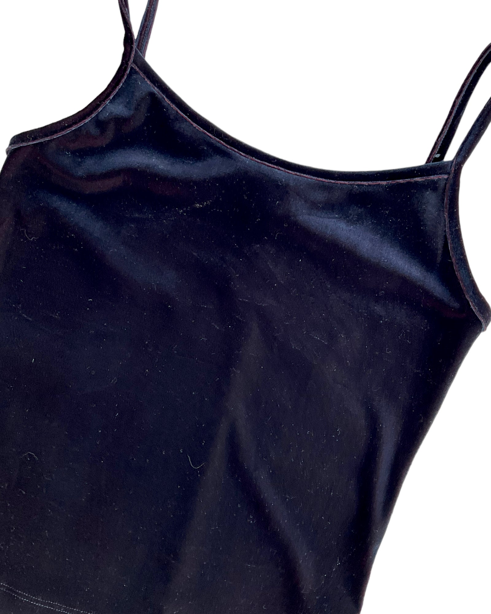 BLUSA NEGRA DE TIRANTES, ATERCIOPELADA, LISA, SIN ESTAMPADOS, 30% POLIESTER, 30% NYLON, 10% SPANDEX