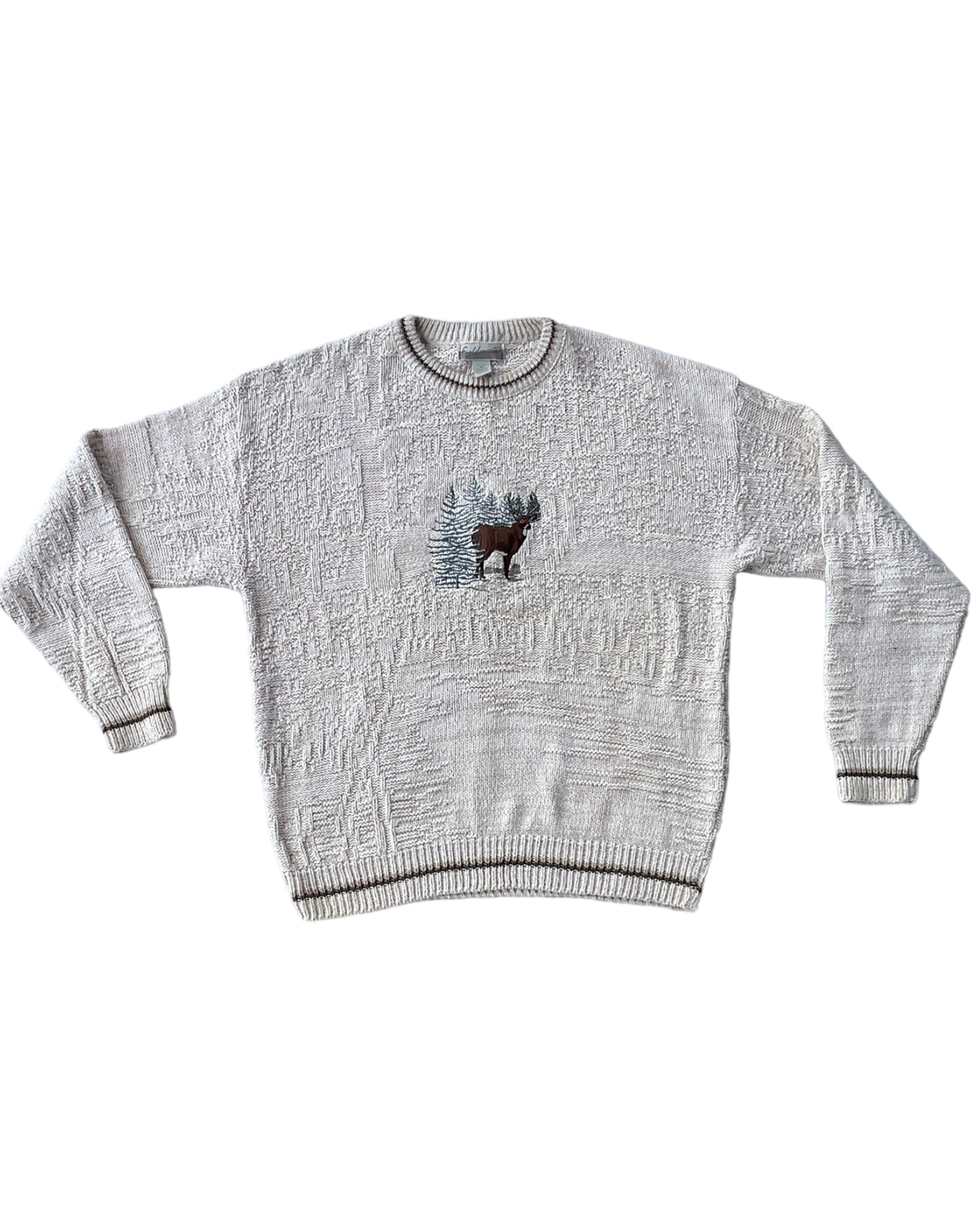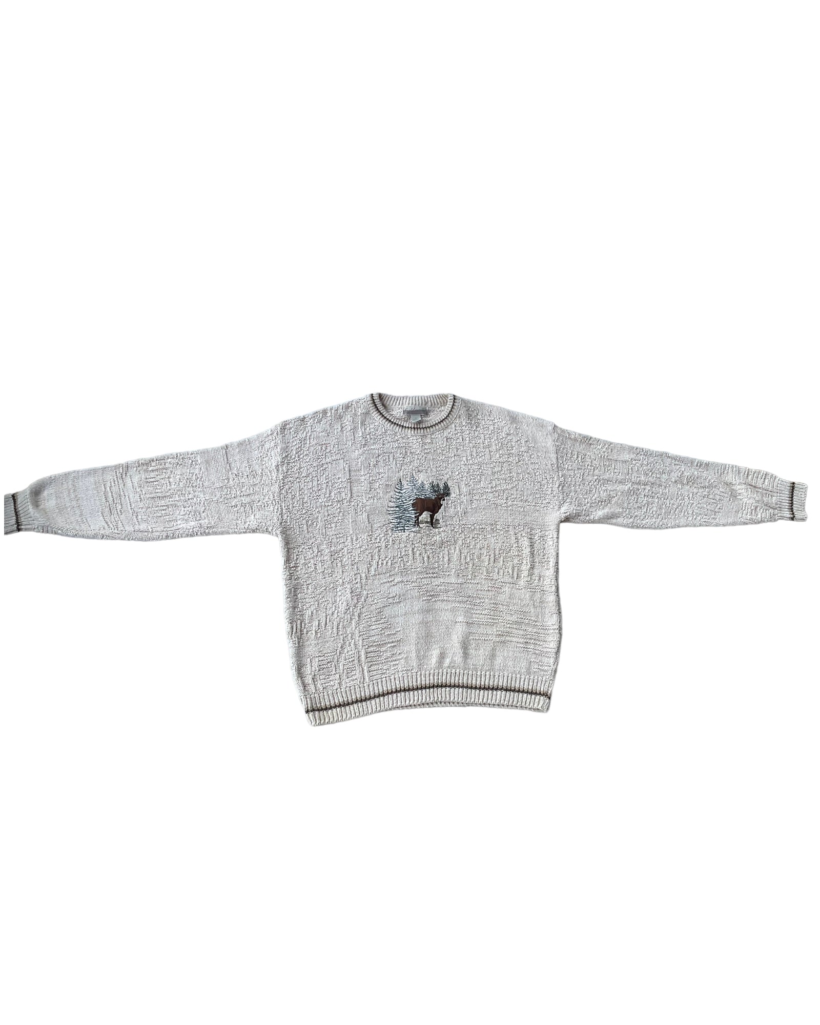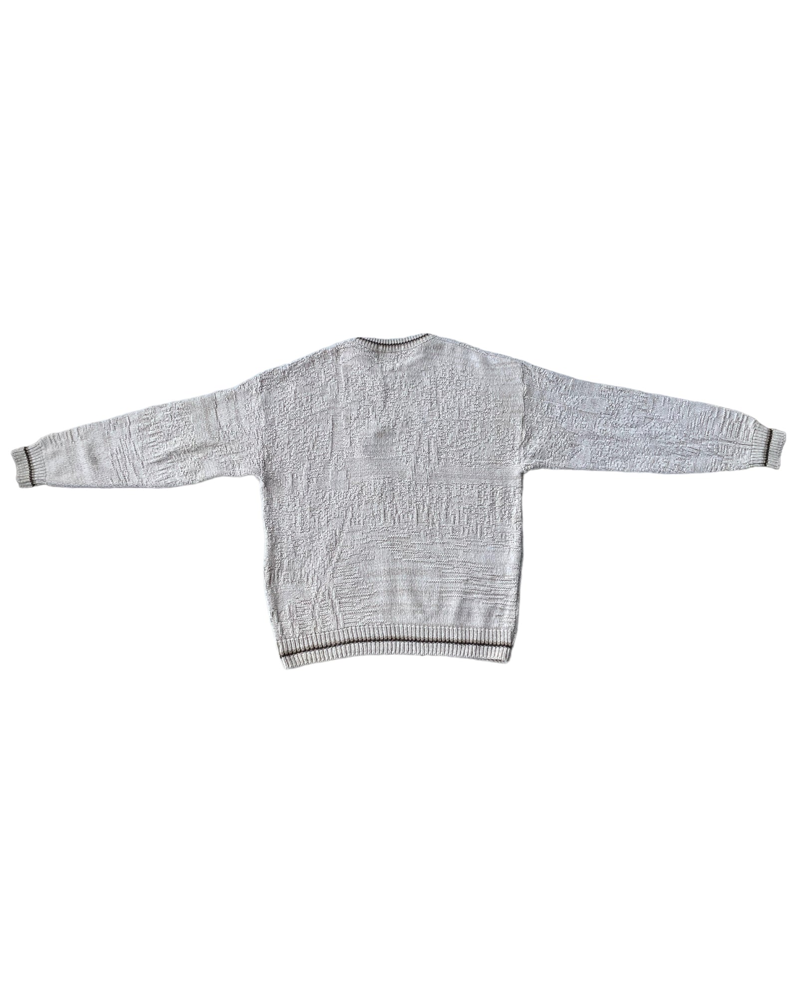 SUÉTER TEJIDO OVERSIZED CON BORDADO EN EL PECHO. 90% ALGODÓN, 5% ACRÍLICO, 3% POLIÉSTER.