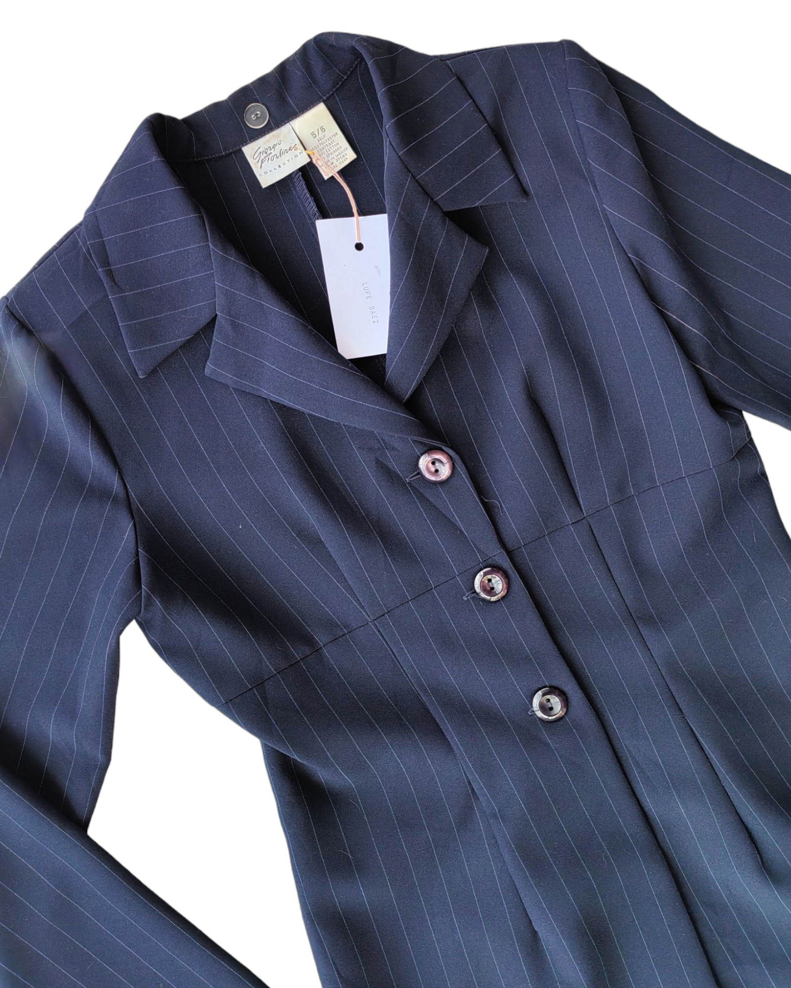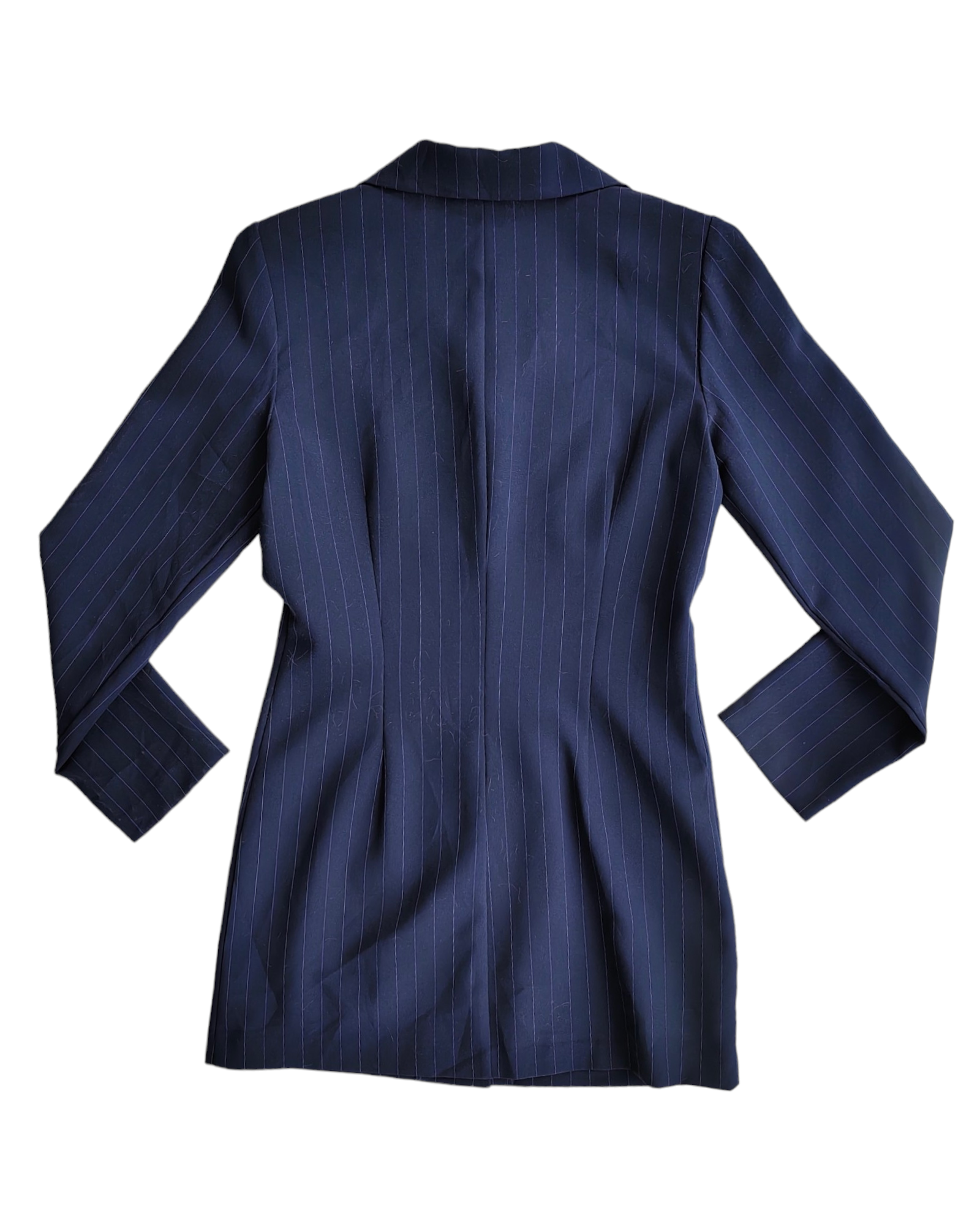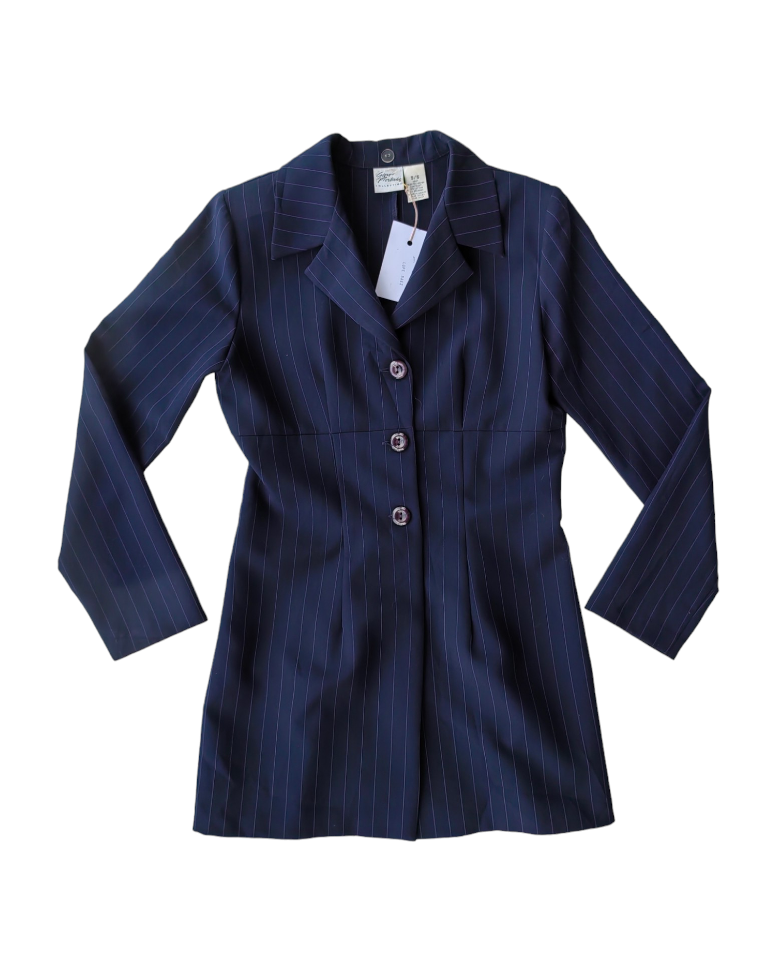 GABARDINA AZUL MARINO DE RAYAS, CON BOTONES POR EN MEDIO, 97% ALGODÓN, 3% SPANDEX
