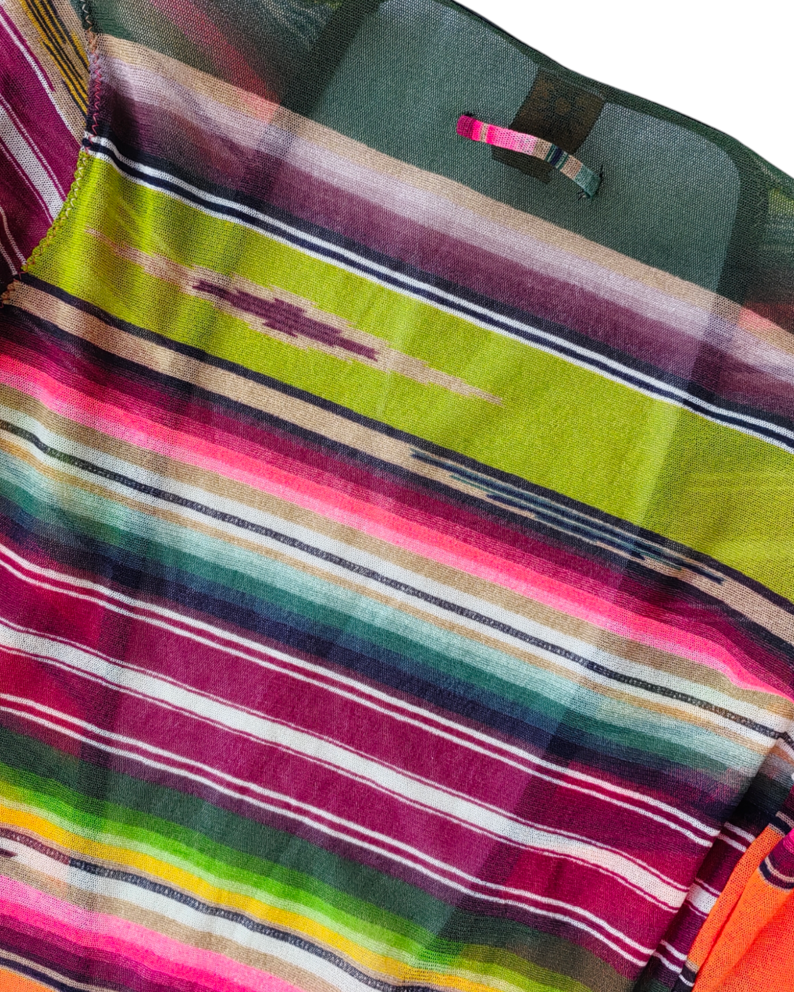 JEAN PAUL GAULTIER SOLEIL TOP. PRINT MESH. LINEAS CON PRINT COLORIDO.