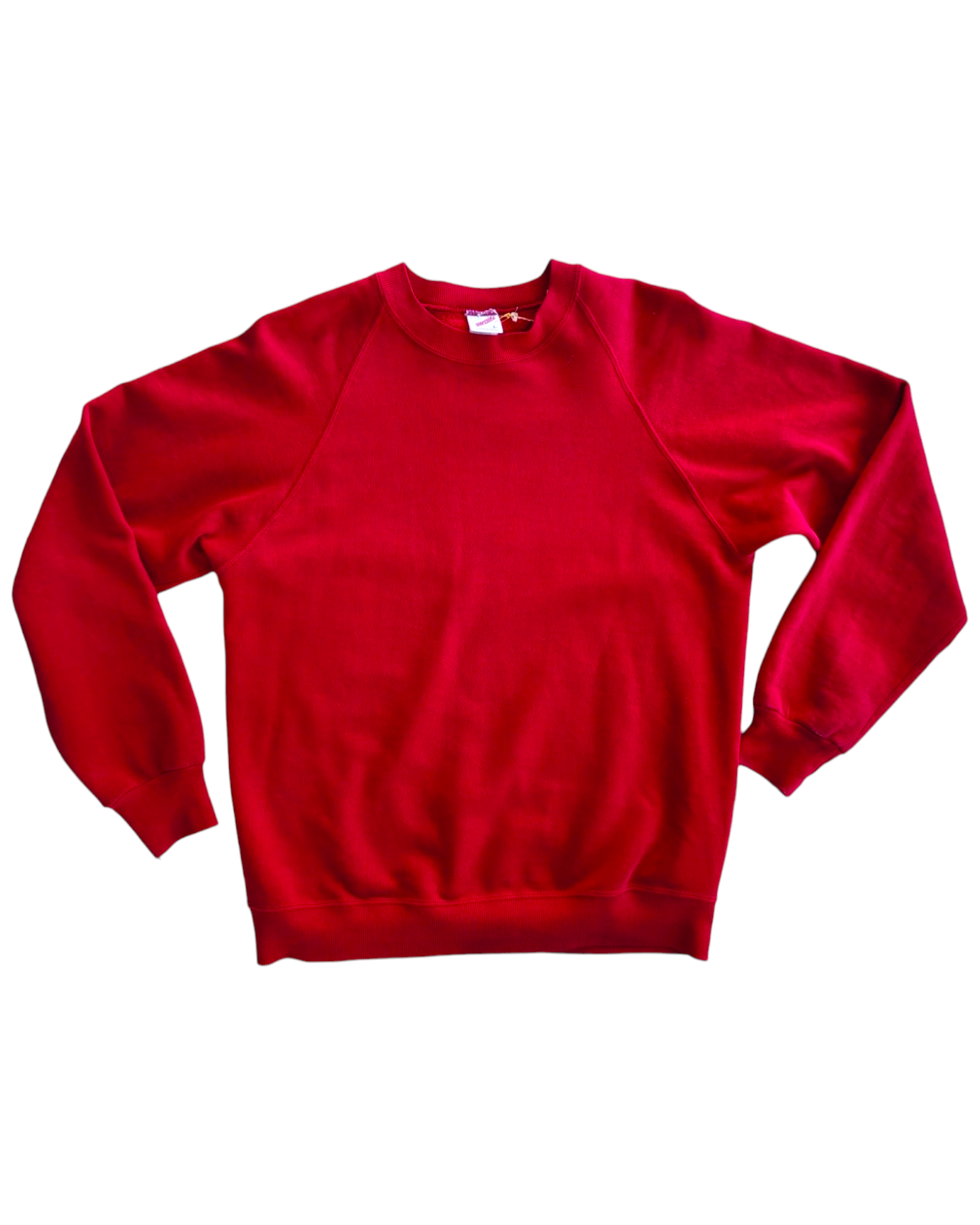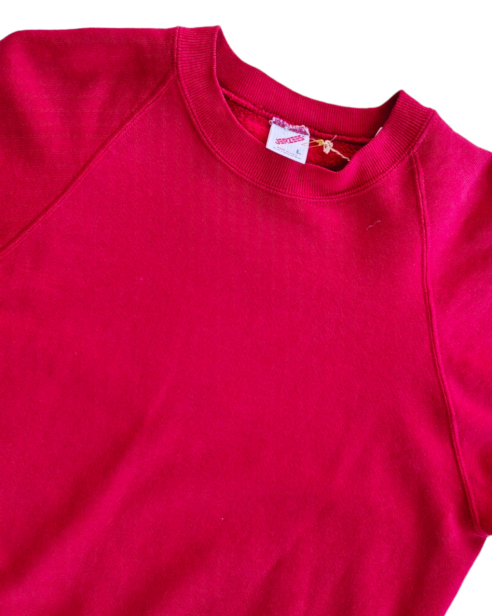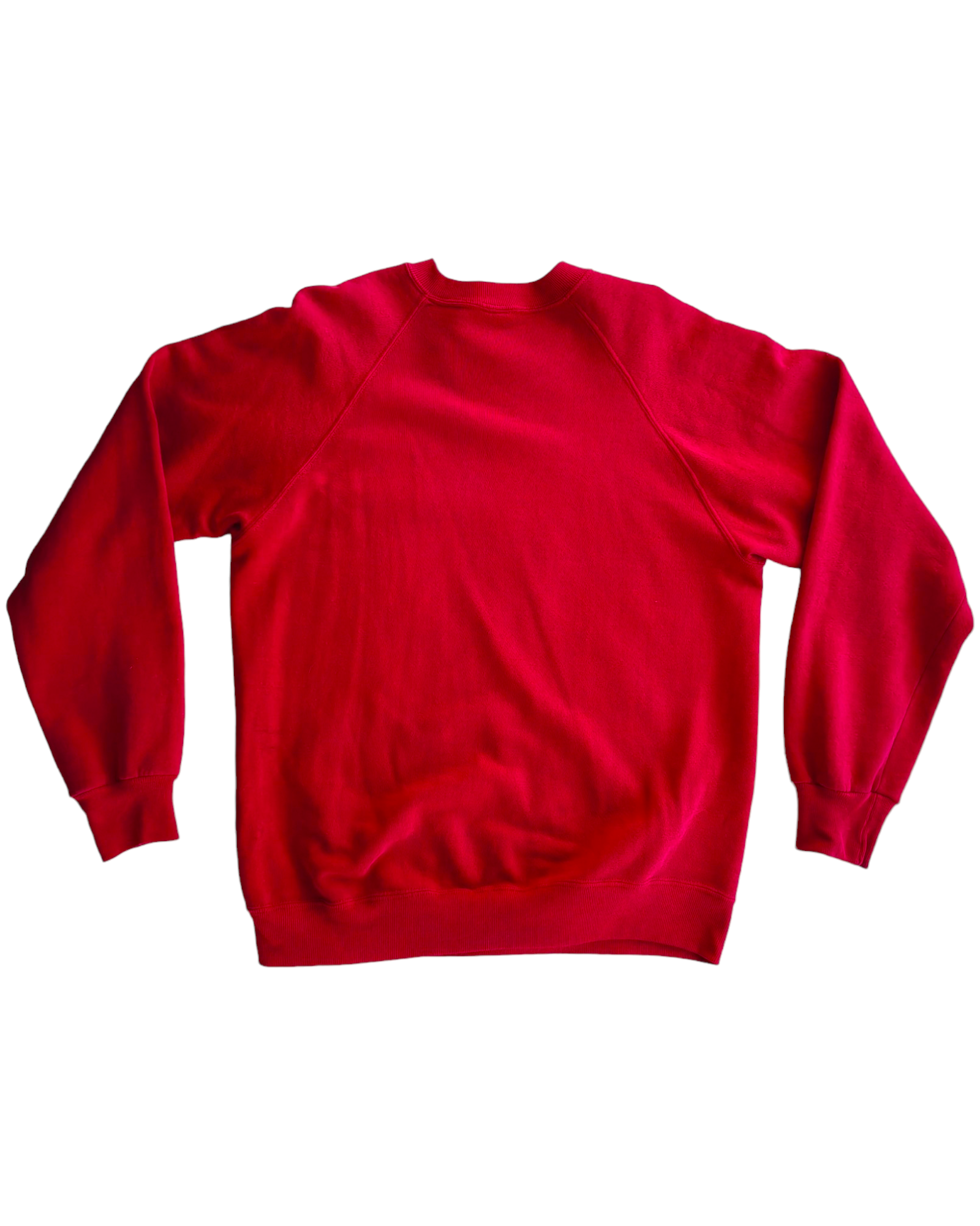 CREWNECK VINTAGE DE MARCA JERZEES. MADE IN THE U.S.A. COLOR ROJO. 50% ALGODON 50% POLYESTER.