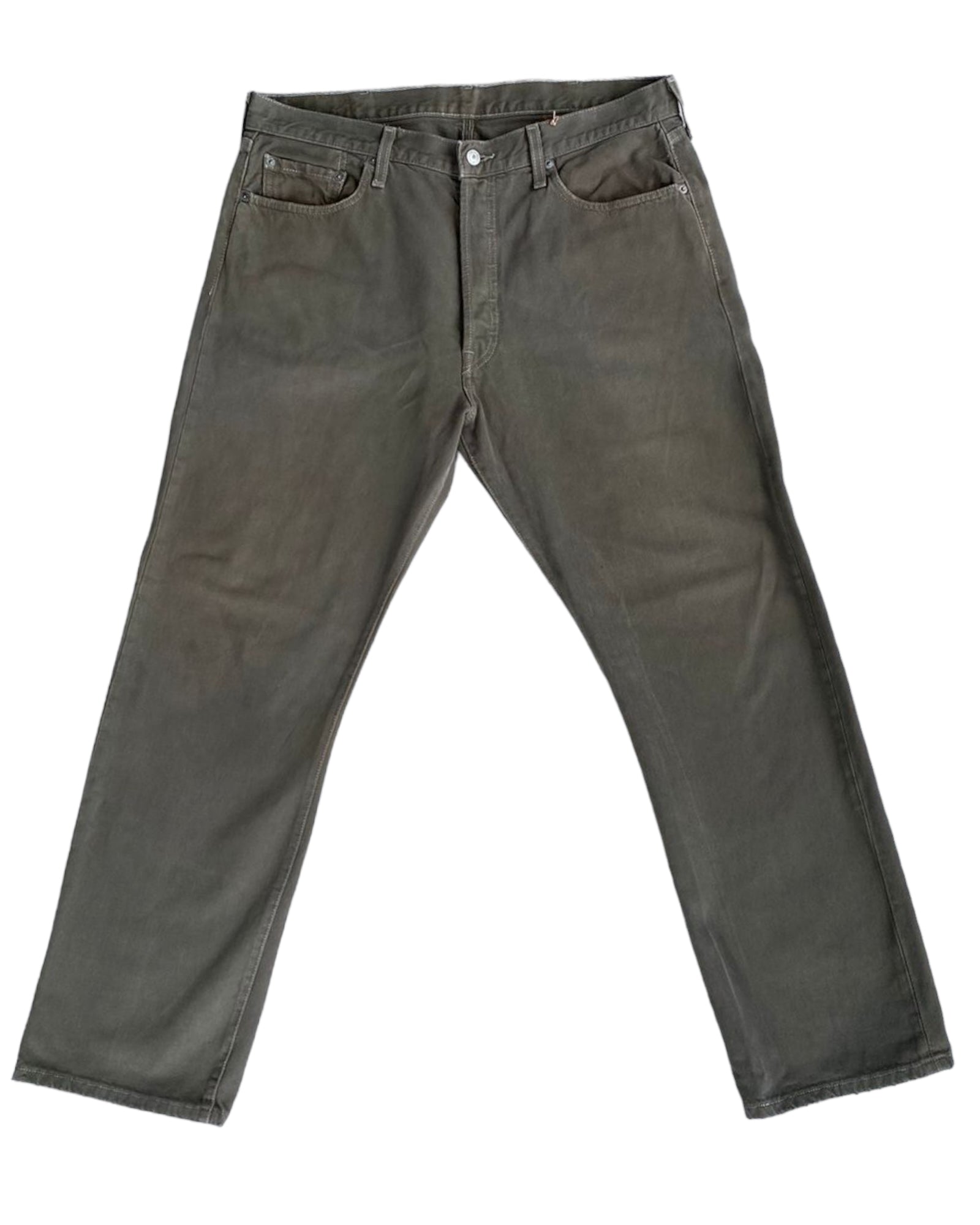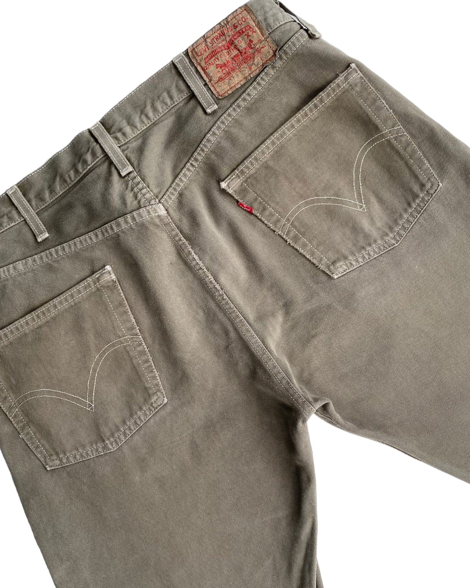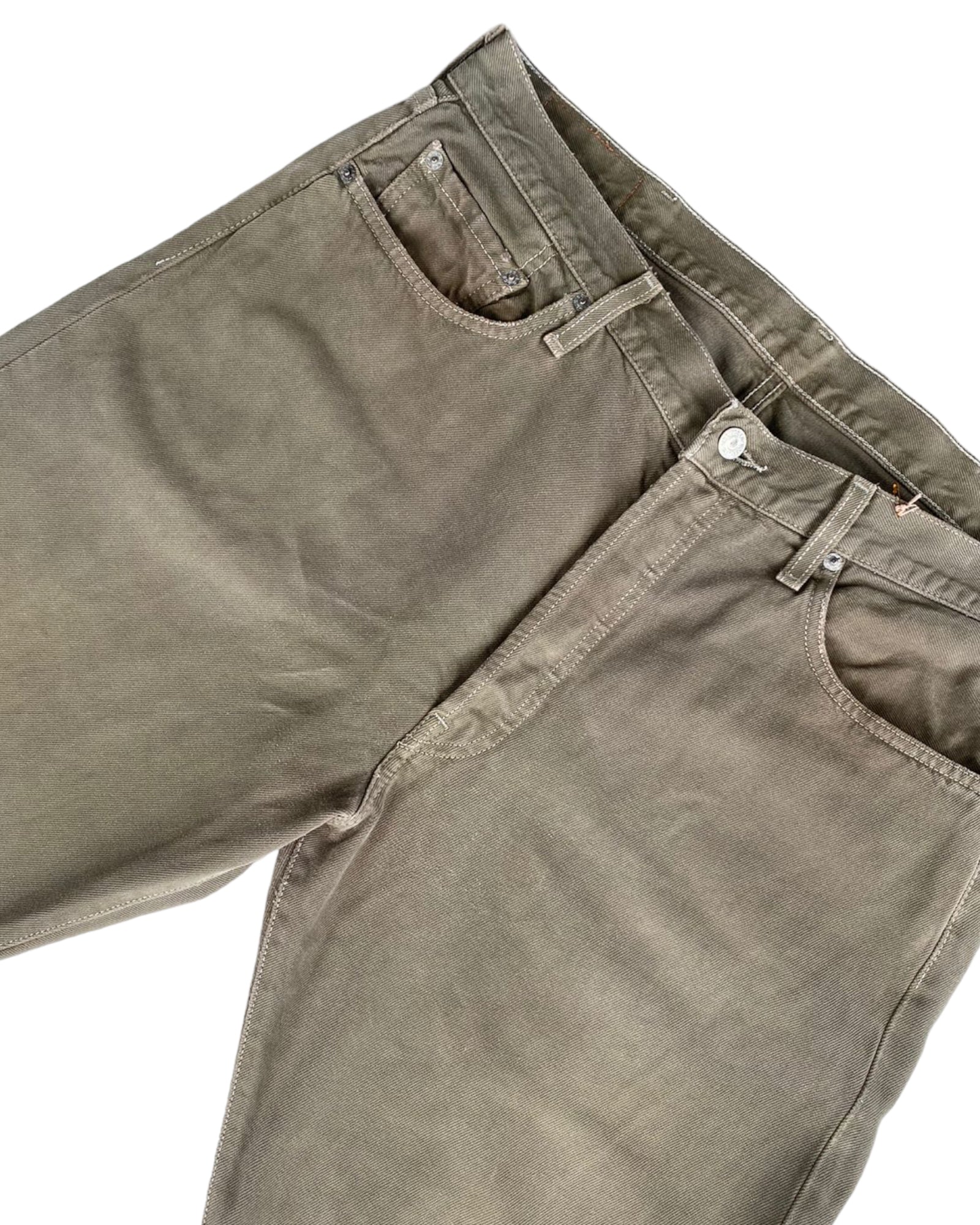 PANTALONES LEVIS VERDE MILITAR 100% ALGODON (36 W 32 L). BOTONES EN VEZ DE ZIPPER DELANTERO. BOLSAS FUNCIONALES. DESGASTE EN ETIQUETA TRASERA DE LEVIS.