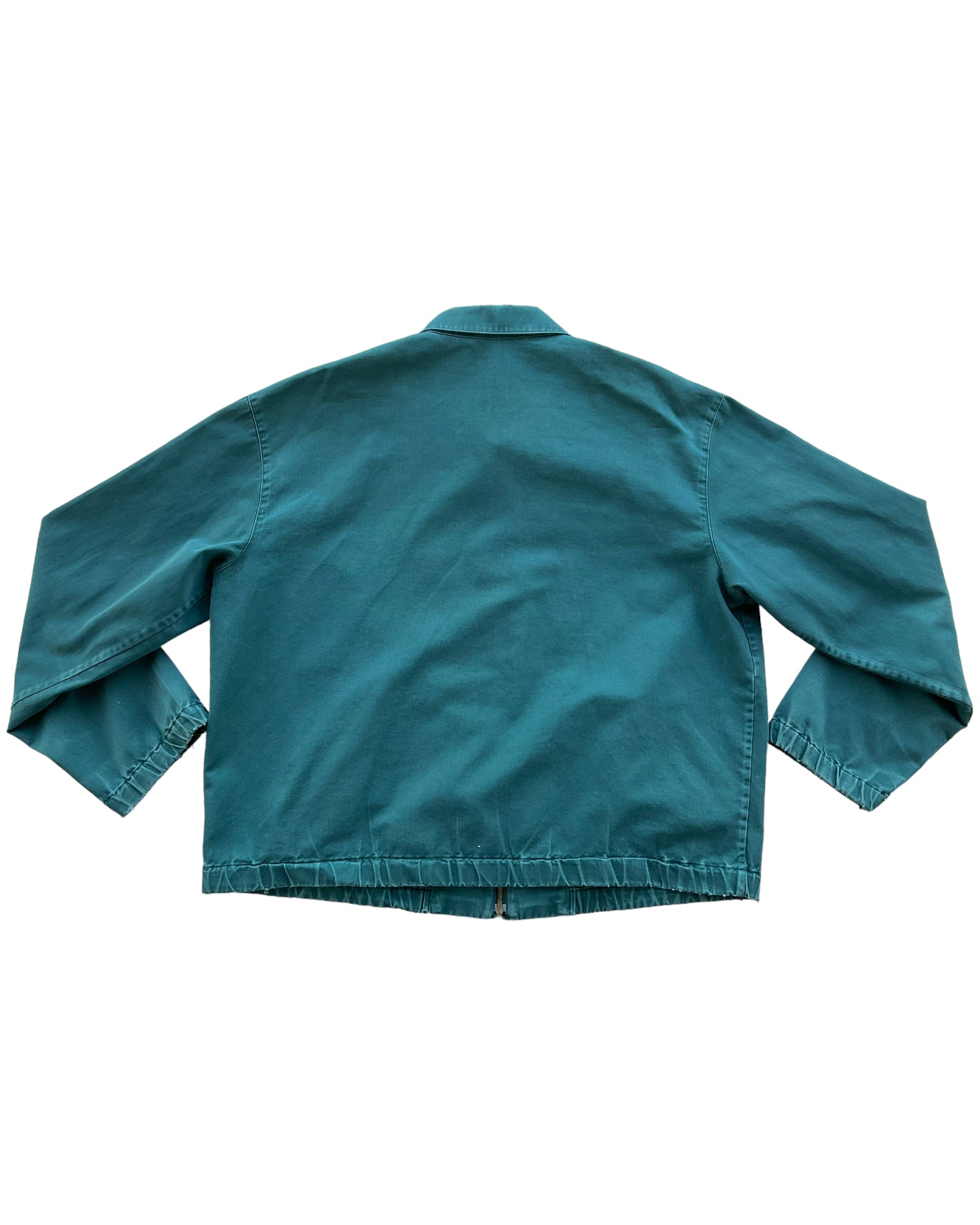 CHAMARRA VERDE OSCURO MARCA POLO, LISA SIN ESTAMPADOS, CON LOGO DE LA MARCA BORDADO AL FRENTE EN COLO ROJO, CON LIGERO DESGASTE POR ANTIGÜEDAD EN BORDES, DOS BOLSAS DELANTERAS Y UN CIERRE POR EN MEDIO,100% ALGODÓN