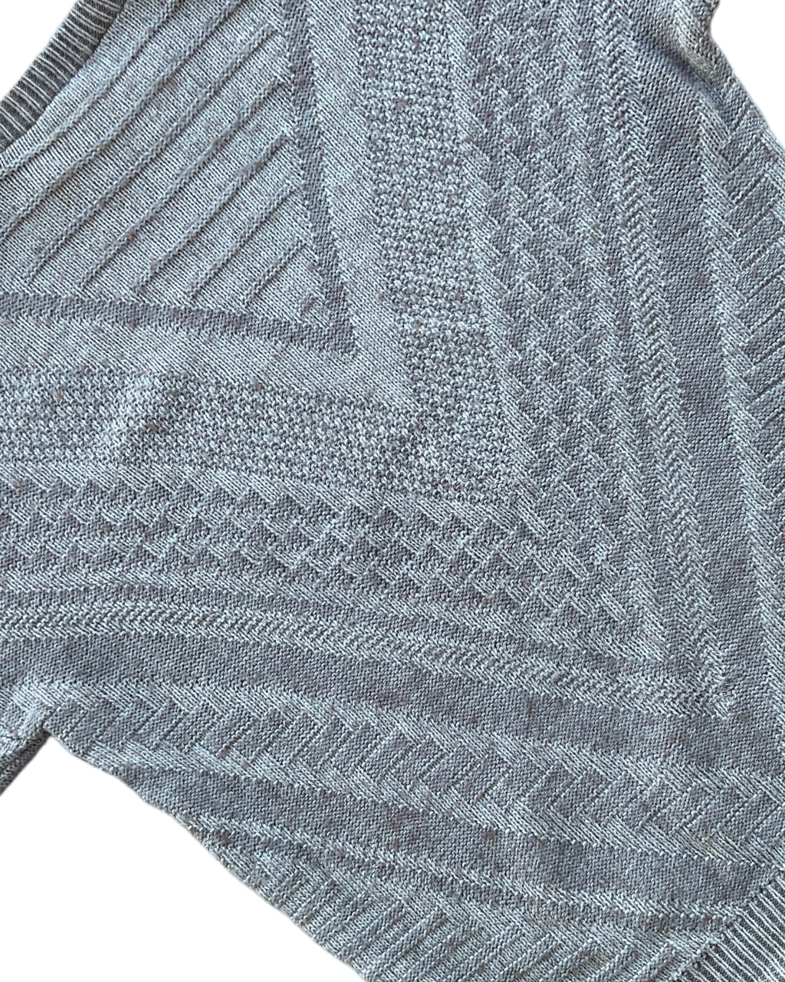 SUÉTER TEJIDO COLOR HUESO CON PATRONES TEJIDOS EN FORMA DE PICO. SIN DETALLES DE USO