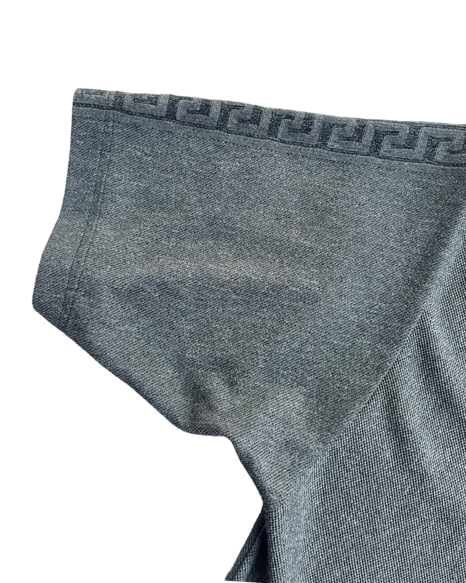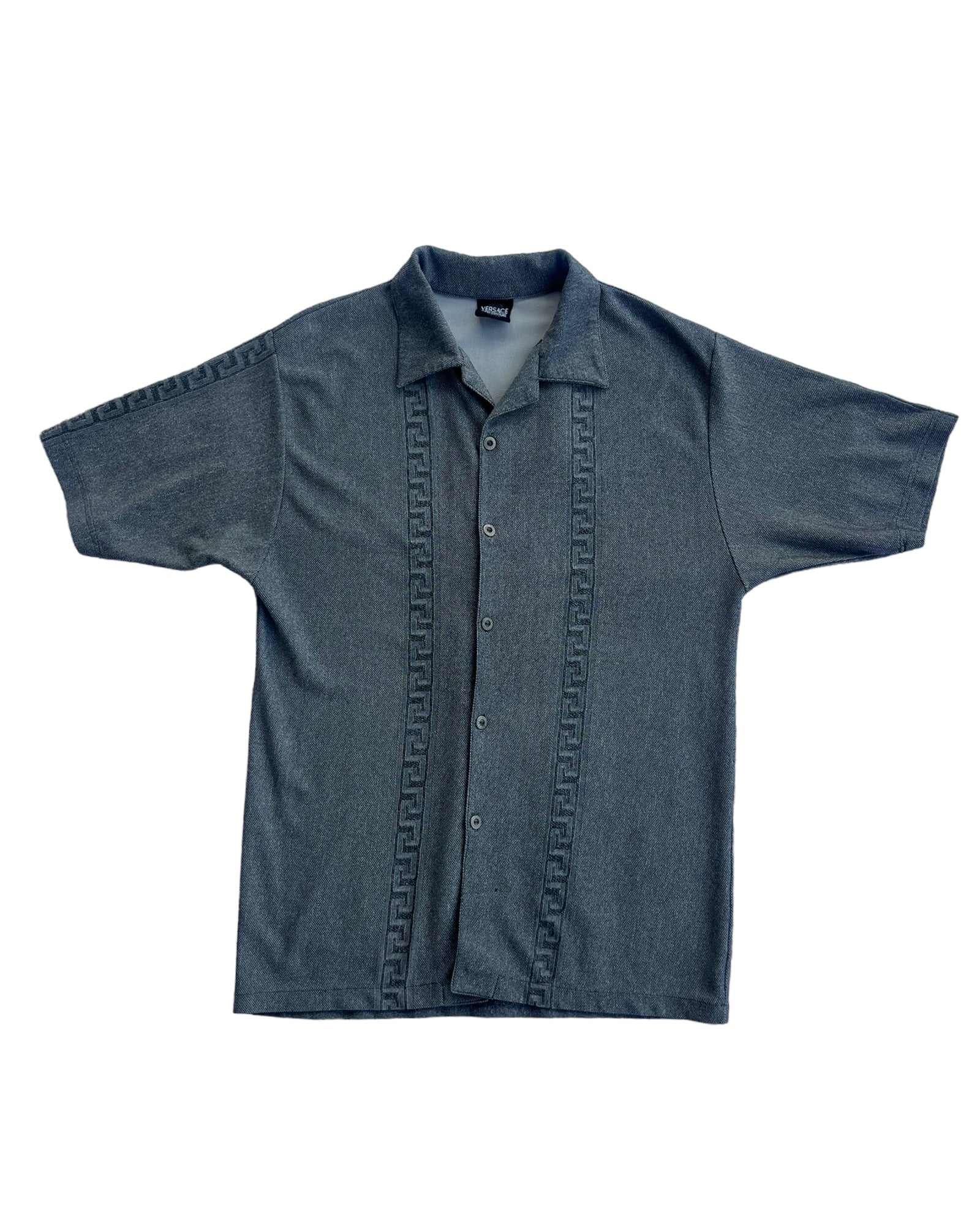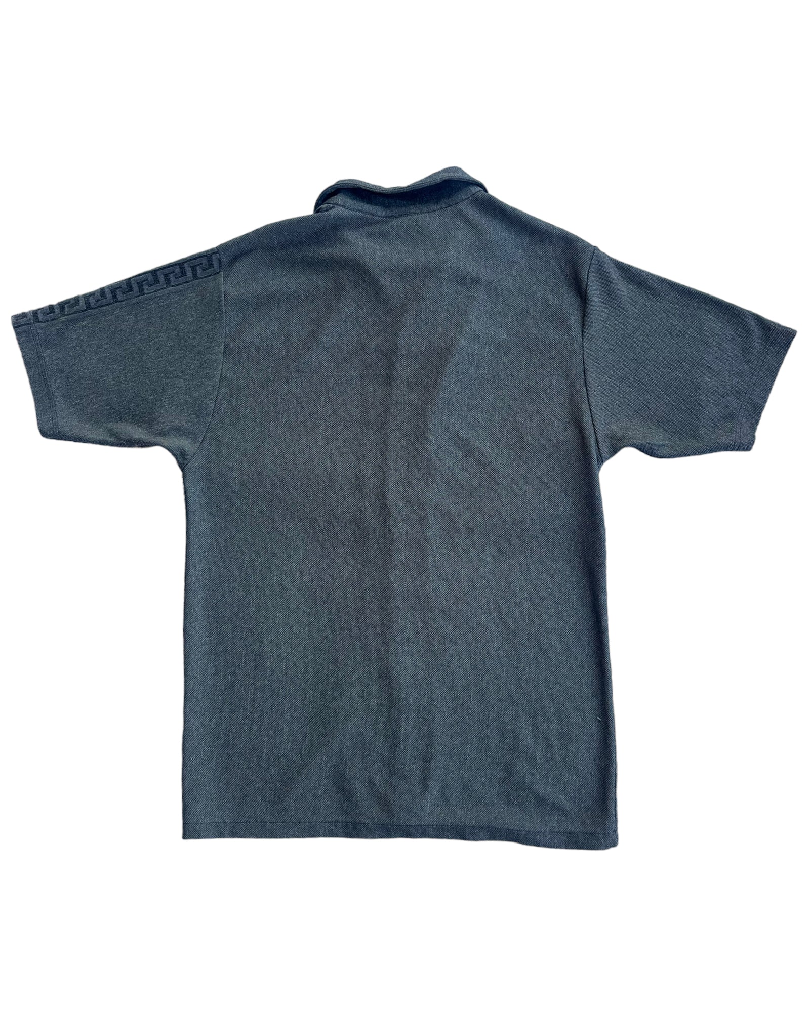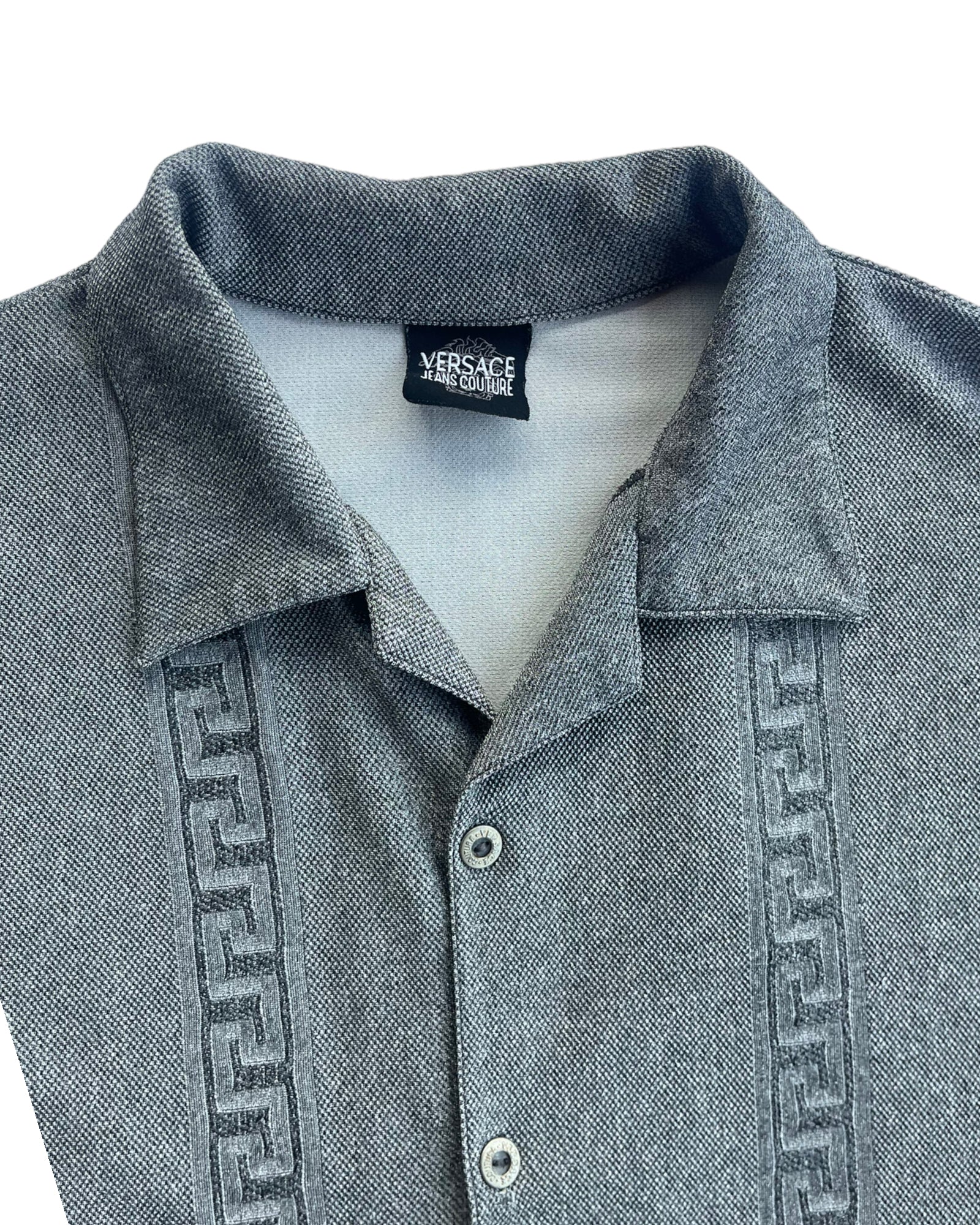 CAMISA VERSACE JEANS COUTURE. GRIS JASPEADO. DETALLE DISEÑO VERSACE POR DELANTE Y MANGAS.