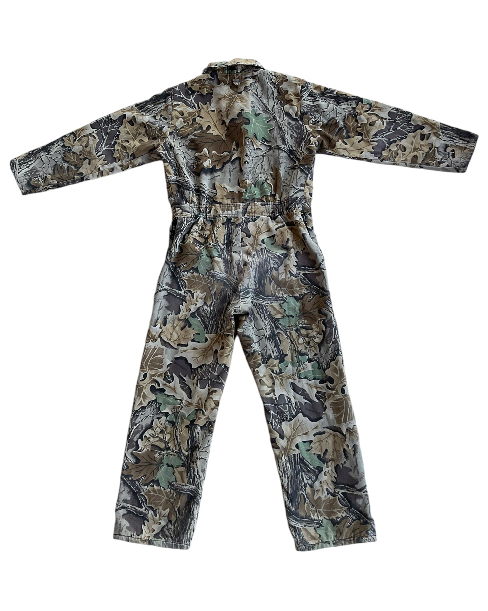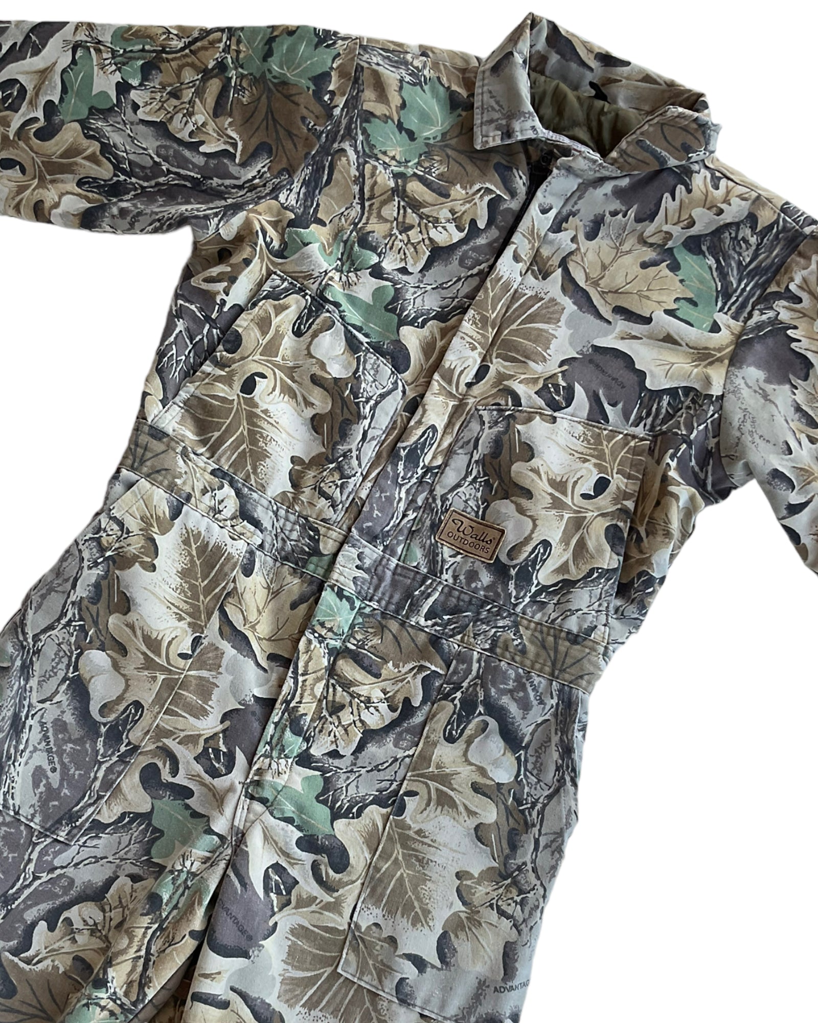 OVEROLES 50% ALGODÓN 50% POLIÉSTER DE COLOR CAFÉ CON ESTAMPADO DE HOJAS CAIDAS, AISLANTE DE TEMPERATURAS. 4 BOLSILLOS FRONTALES. CIERRE CENTRAL COLOR NEGRO Y EN LAS PIERNAS. PARCHE CAFÉ CON GRABADO DEL LOGO DE LA MARCA EN EL BOLSILLO IZQUIERDO. SIN DETALLES DE USO.