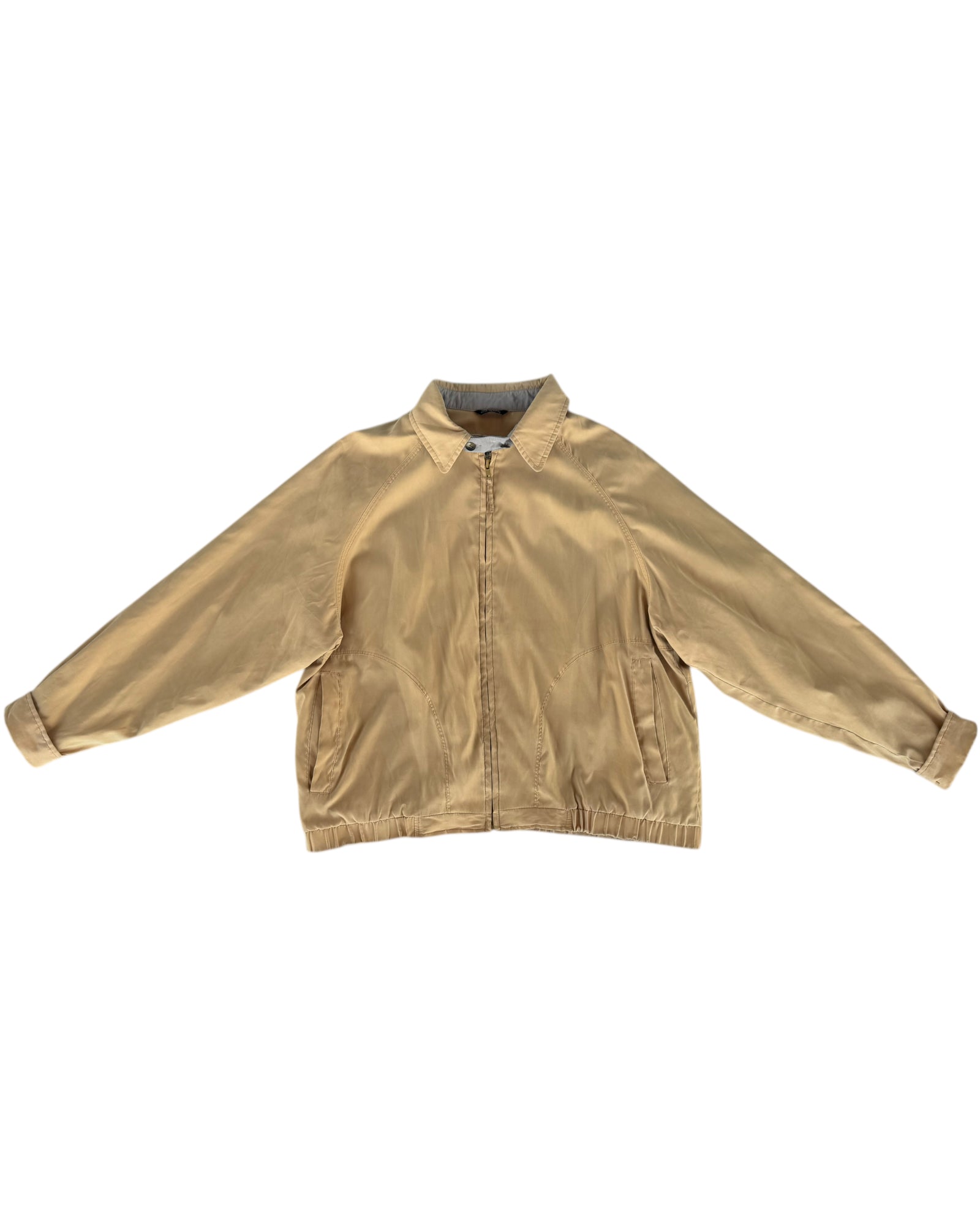CHAMARRA85% POLYESTER 15% NYLON EN COLOR CAFE CAMELLO MUY SUAVE Y LIGERA PARA EL CLIMA DE OTOÑO. NO TIENE DETALLES, EN PERFECTO ESTADO.