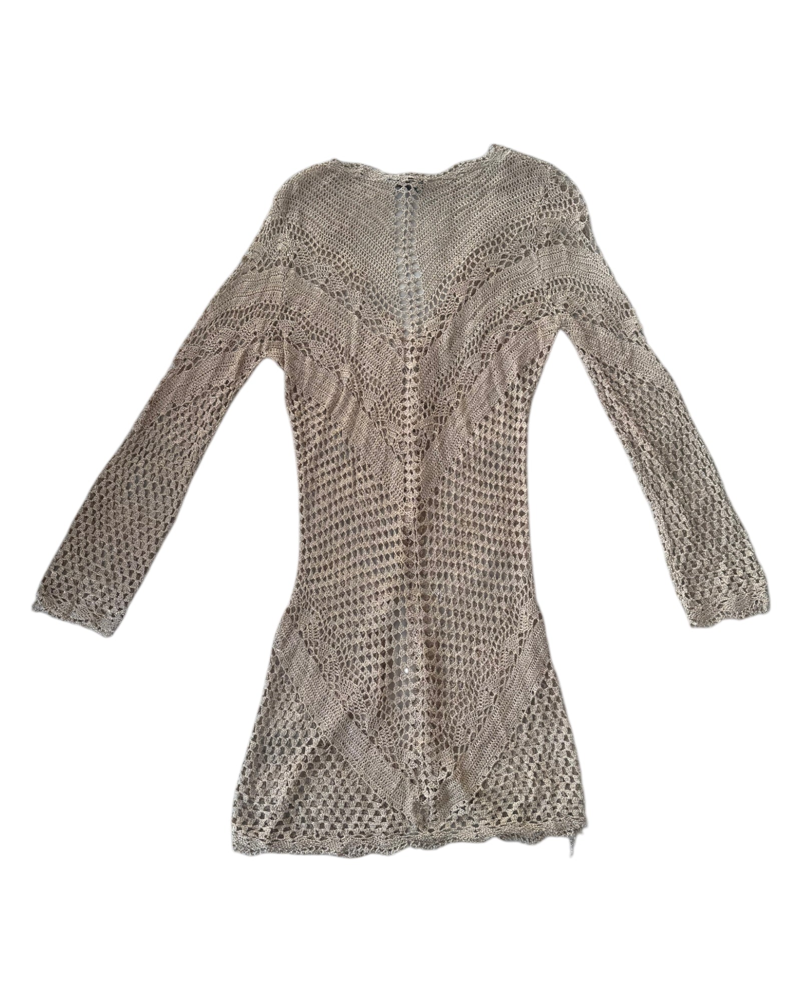 CARDIGAN 100% TEJIDO DE CROCHET A MANO EN COLOR NUDE CON BOTONES TEJIDOS Y MANGAS ESTILO FLARE. 100% RAYON. NO TIENE DETALLES, EN PERFECTO ESTADO.