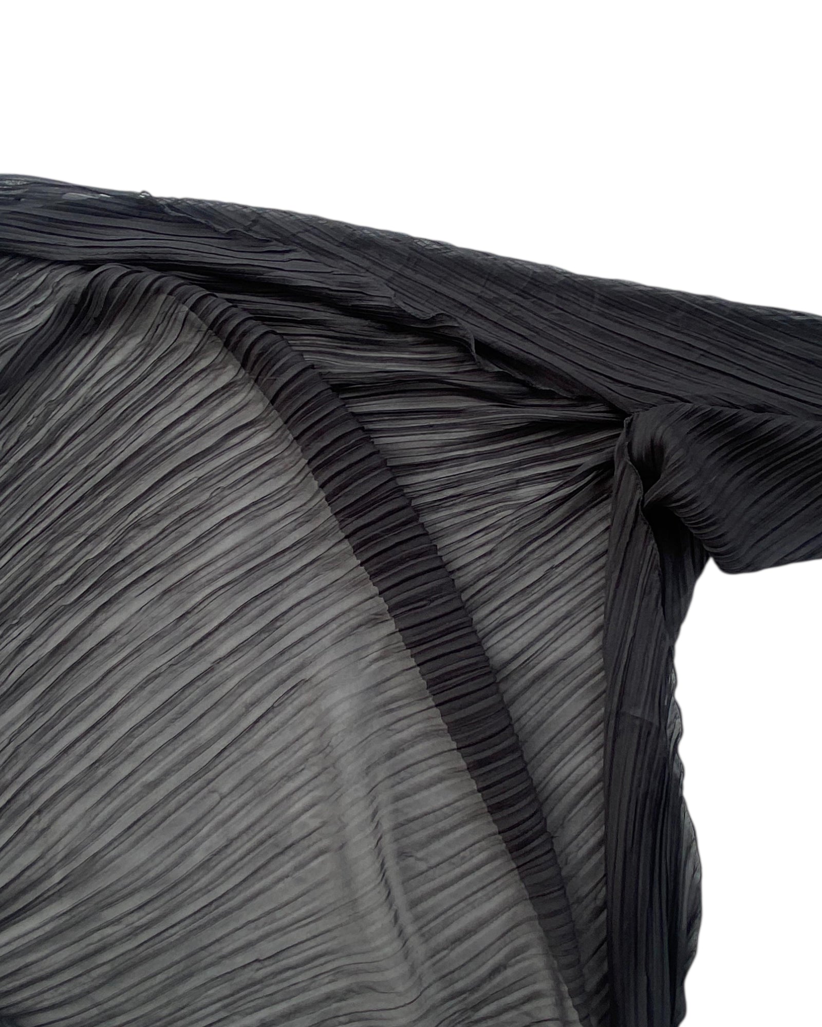 CHALINA NEGRA DE MESH Y MANGA LARGA CON PLISADO, TIPO CIRCULO, NO BOTONES NI CIERRES, 100% POLYESTER. MUY BUEN ESATDO