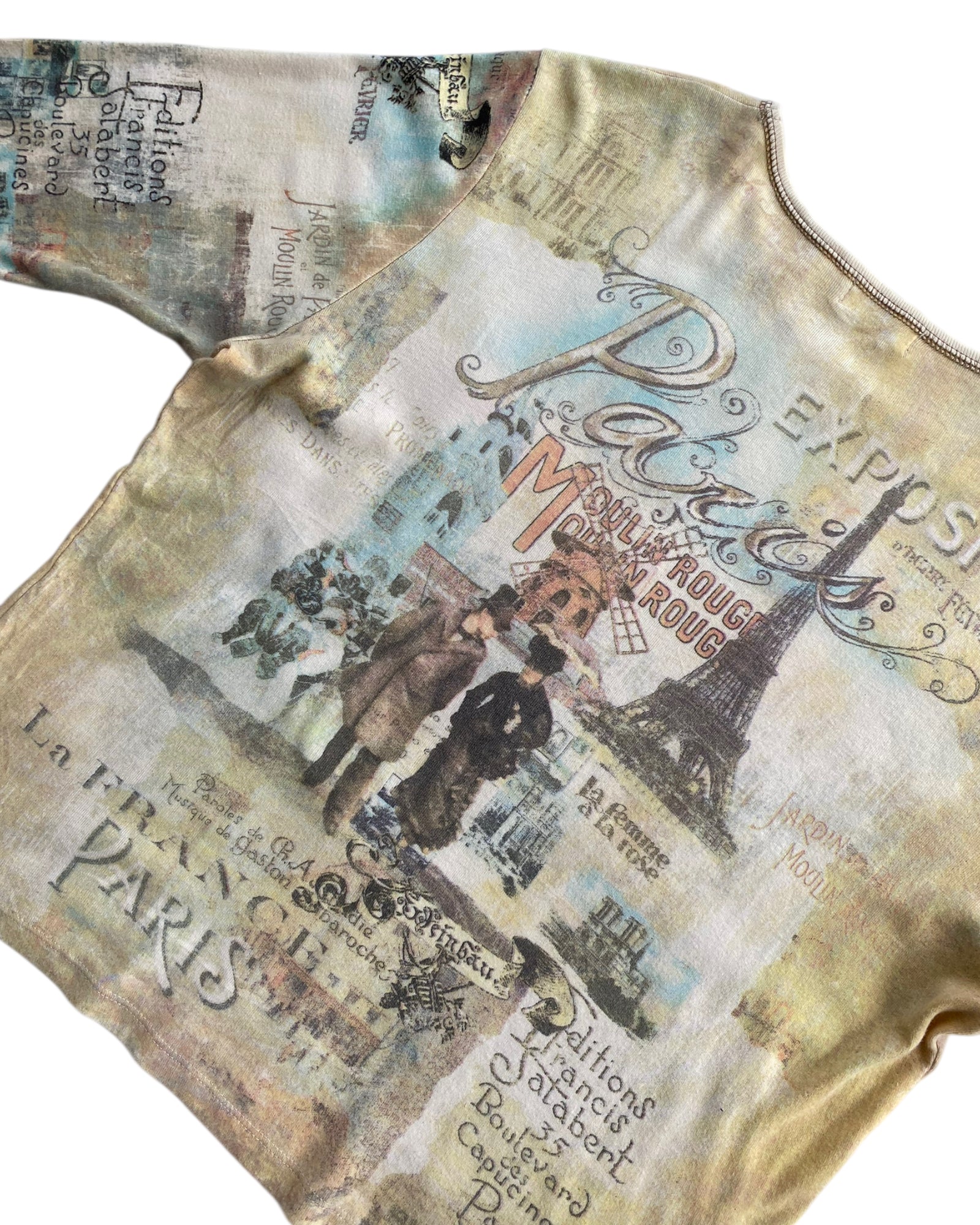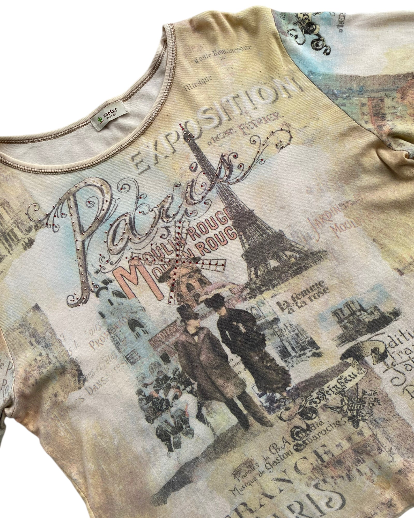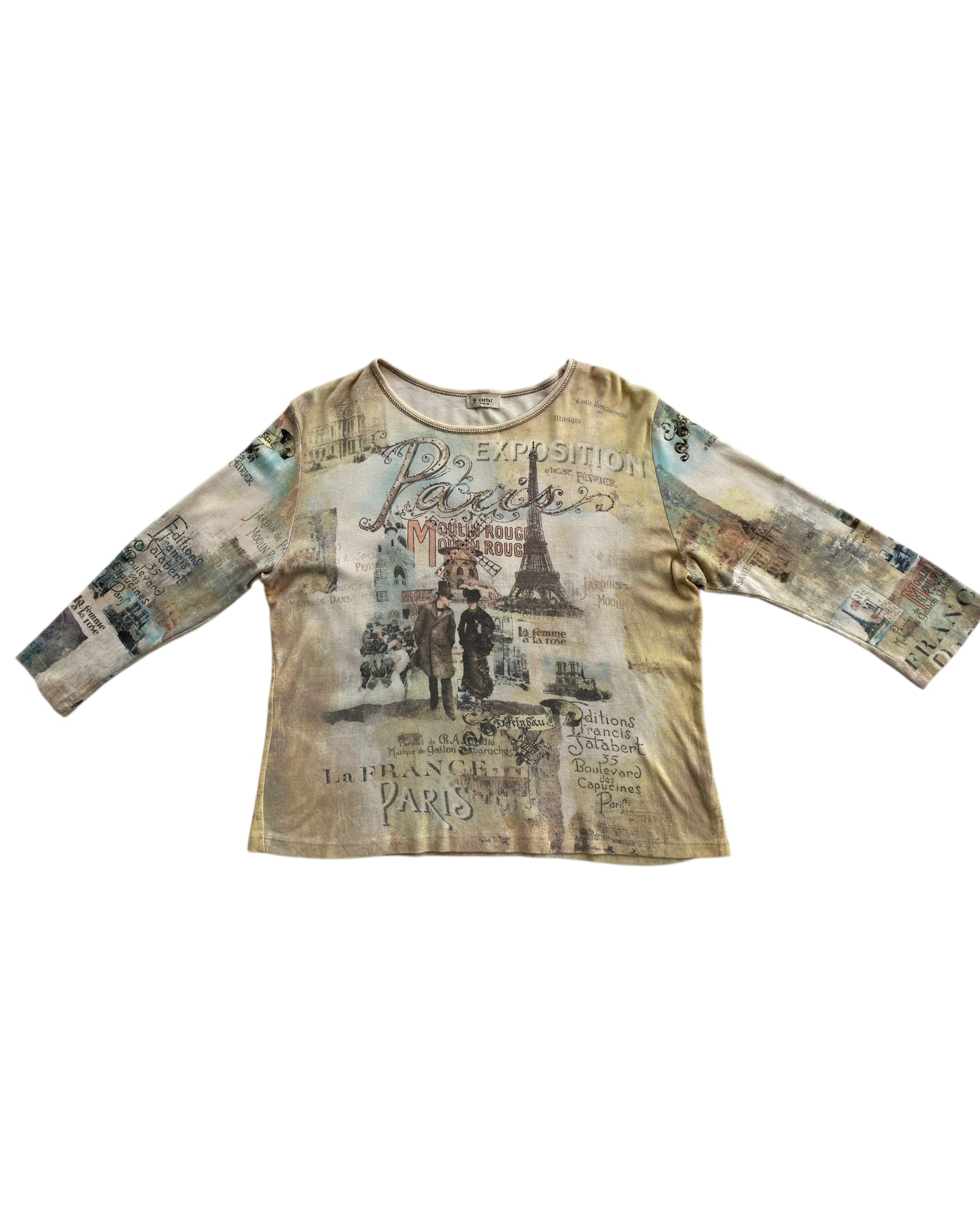 BLUSA 100% ALGODÓN CON PRINT EN TODA LA PARTE DELANTERA Y TRASERA DE PARIS, BRILLITOS DORADOS EN LAS LETRAS Y PRINT EMBLEMÁTICO DE PARIS EN MANGAS, NO TIENE DETALLES, EN PERFECTO ESTADO.