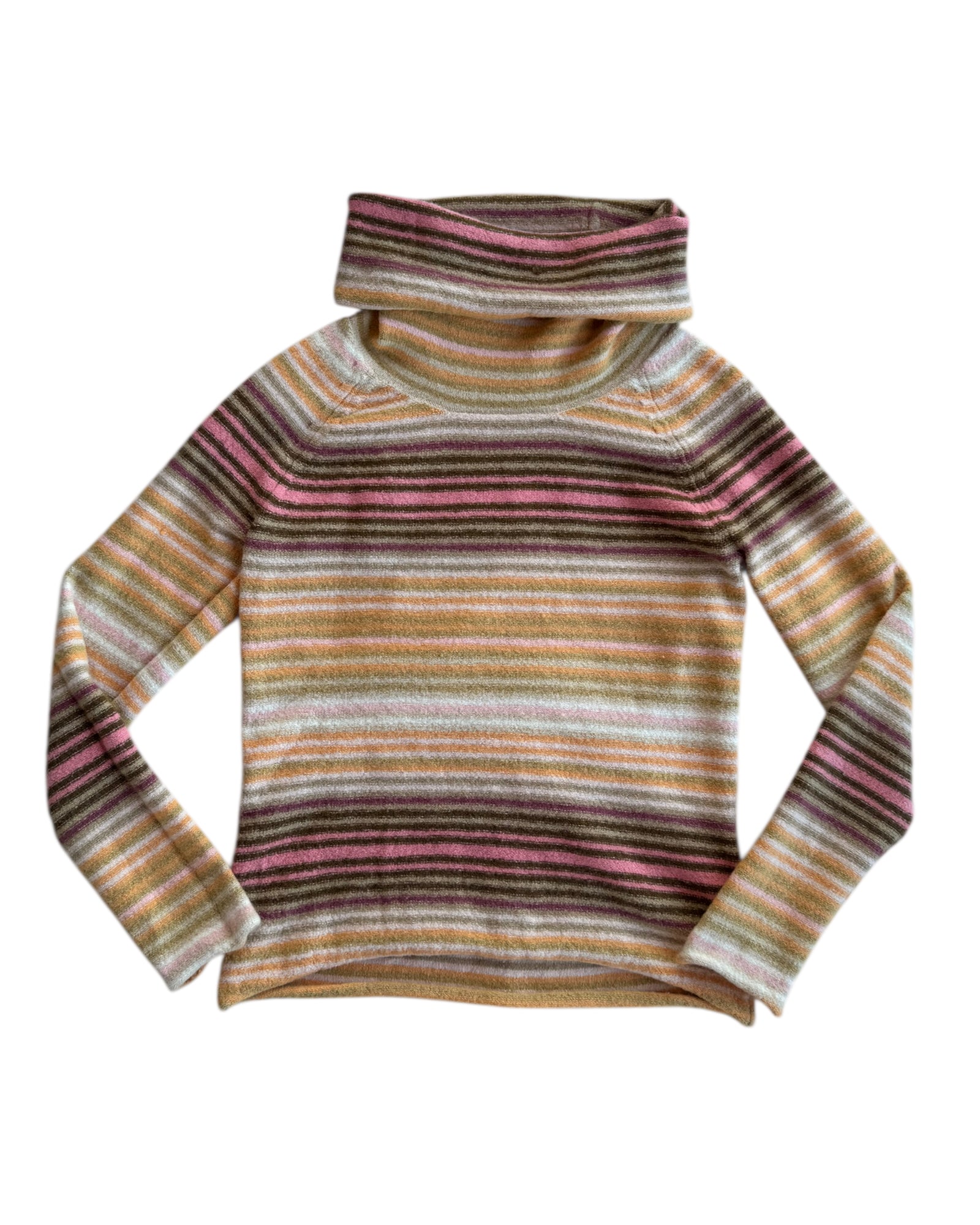 SUETER 45% ACRILICO, 37% POLYESTER, 15% LANA Y 3% SPANDEX CON LINEAS DE MUCHOS COLORES DE FORMA VERICAL Y CON CUELLO ALTO. NO TIENE DETALLES, EN PERFECTO ESTADO.
