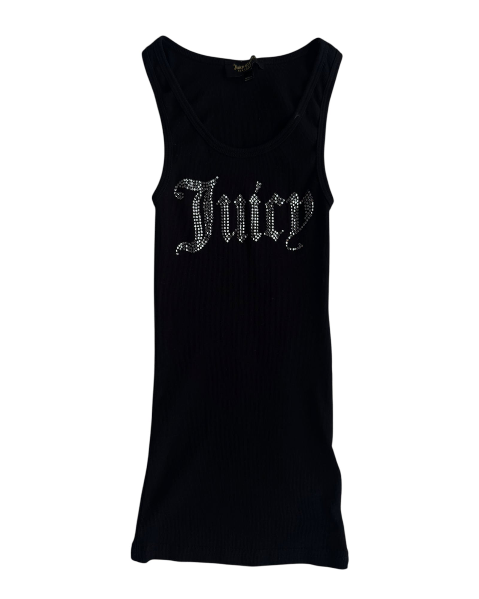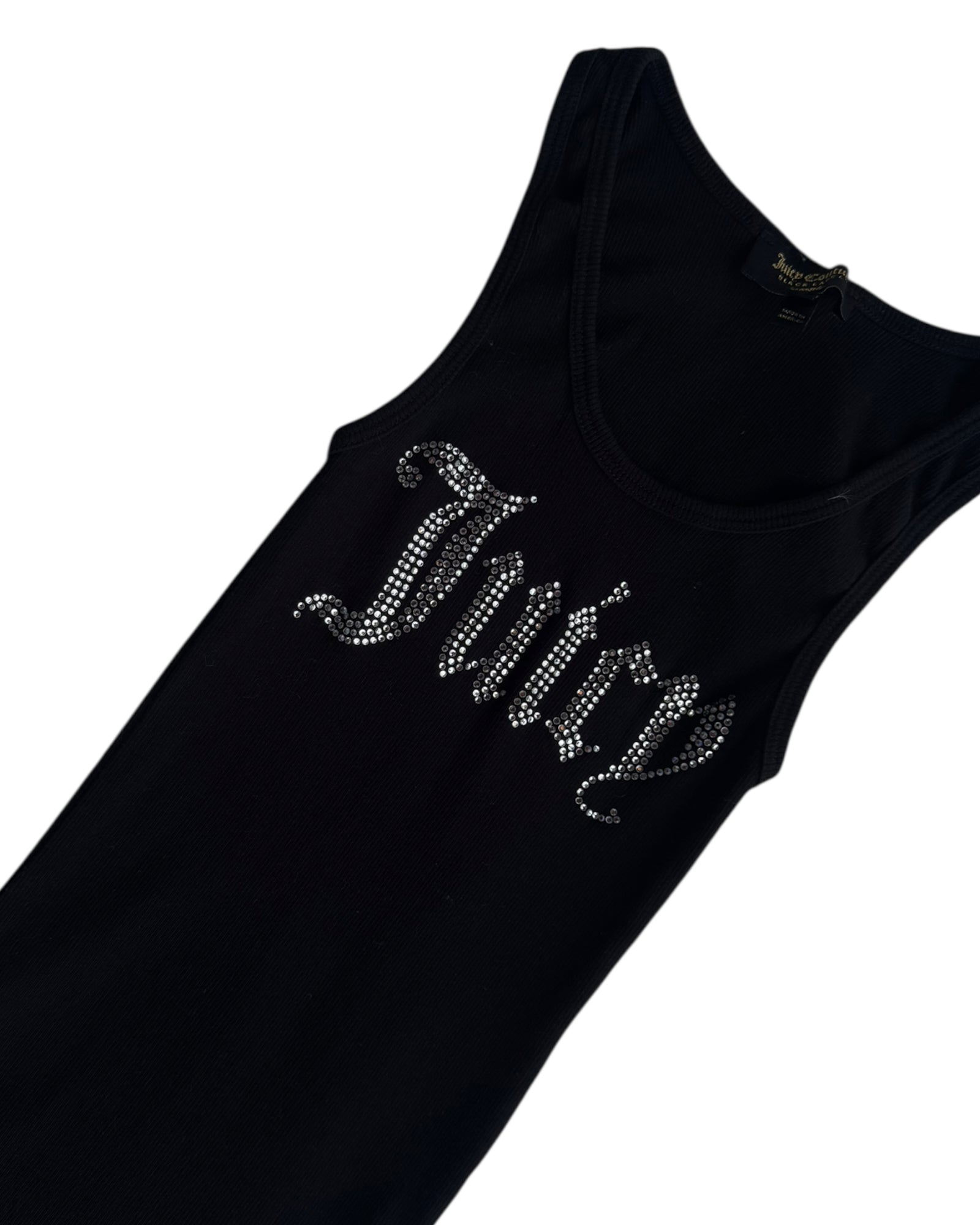 TOP NEGRO CON DETALLES DE PEDRERÍA DE LA MARCA JUICY. 95% ALGODÓN Y 5% SPANDEX. SIN DETALLES,EN PERFECTAS CONDICIONES.