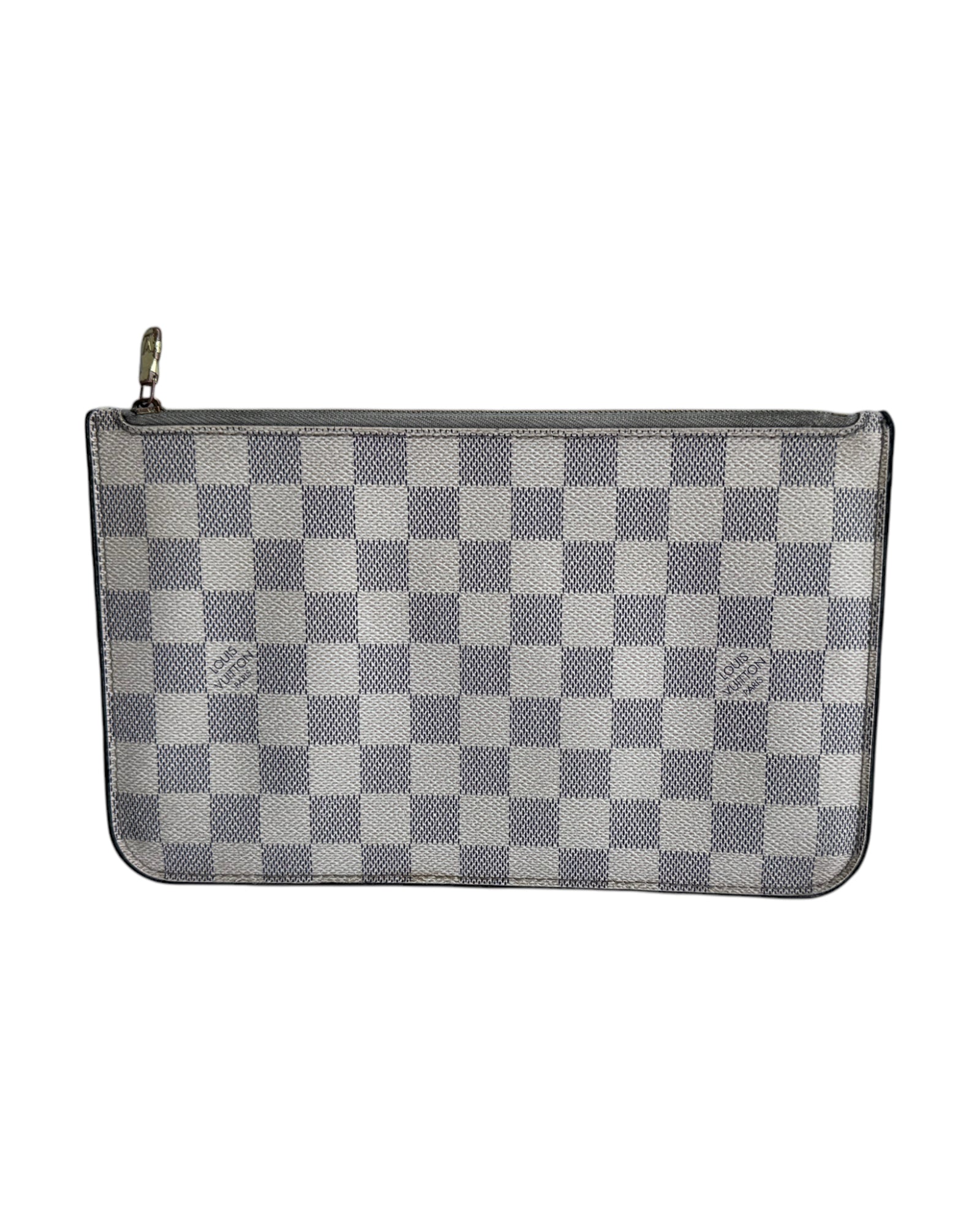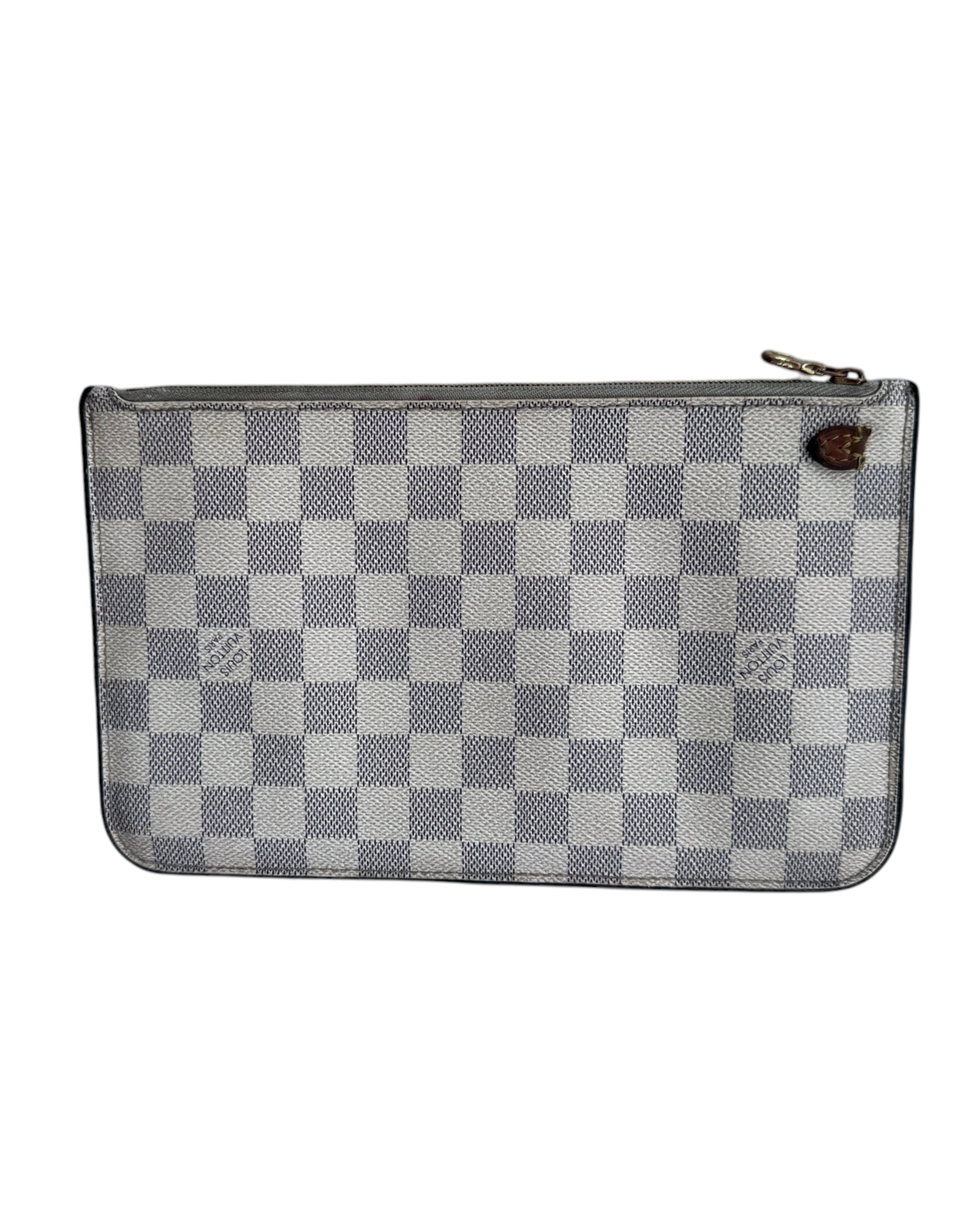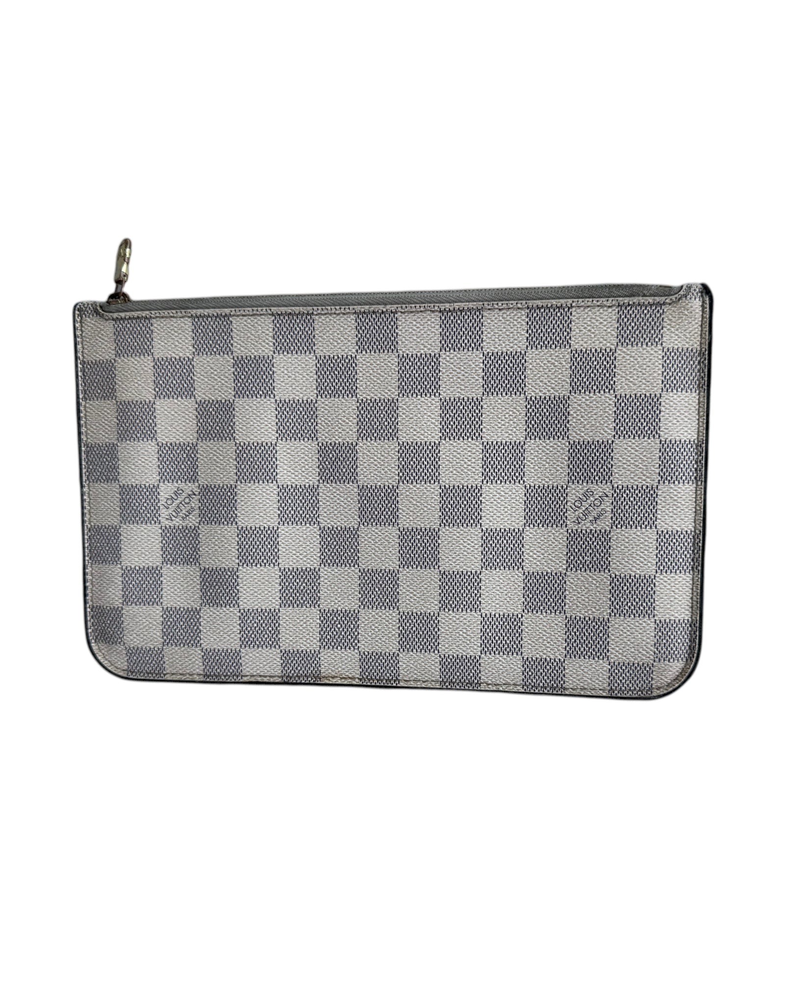 BOLSA CUADRADA TIPO POUCH DE PIEL DE LOUIS VUITTON EN MONOGRAMA BLANCO CON AZUL DE CUADROS. EN BUEN ESTADO, NO DETALLES.