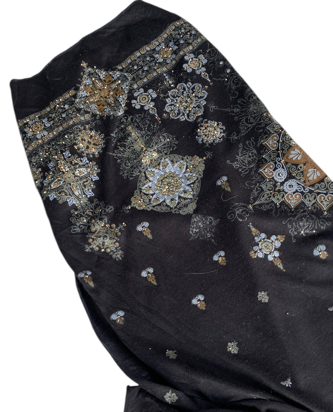 TOP CON NUDO EN EL PECHO Y MANGAS CON VUELO ESTILO MURCIELAGO, PRINT EN MANGAS CON MANDALAS Y PEDRERIA BORDADA, NO TIENE DETALLES, EN PERFECTO ESTADO.