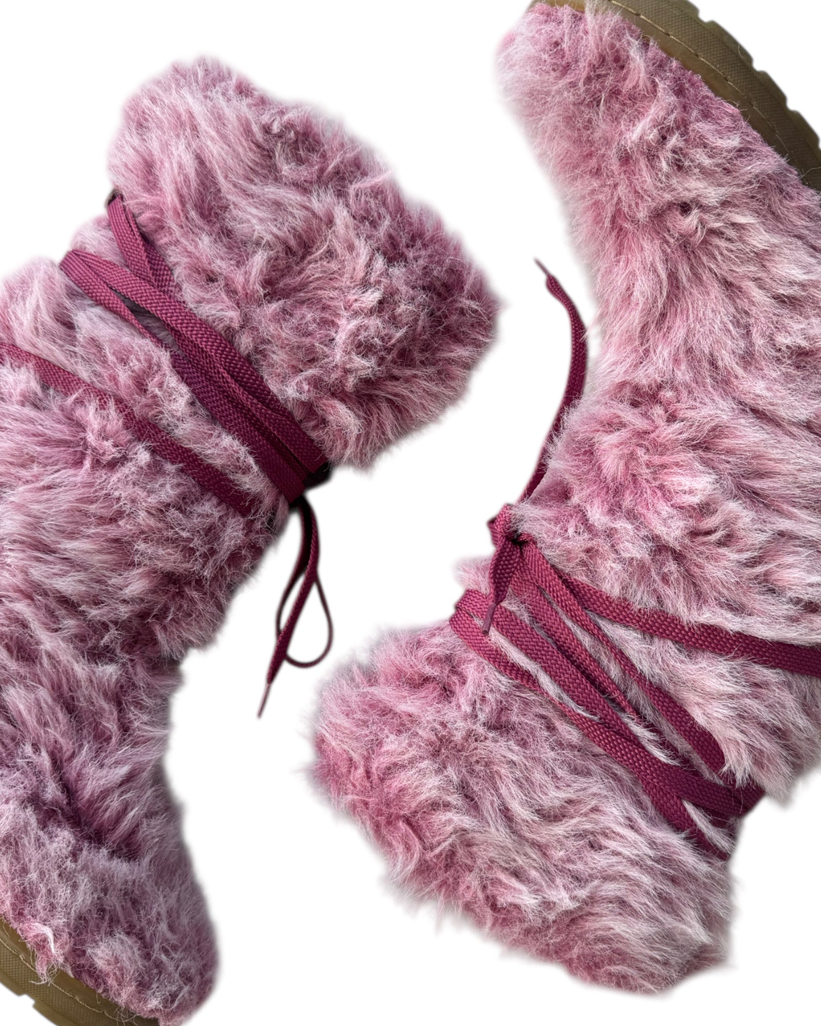 BOTAS DE NIEVE EM COLOR ROSA CON CORDONES DE UN ROSA MÁS FUERTE. SUELA DE GOMA RESISTENTE, 100% FAUX FUR, MUY CALIENTES Y CÓMODAS. EN PERFECTAS CONDICIONES.