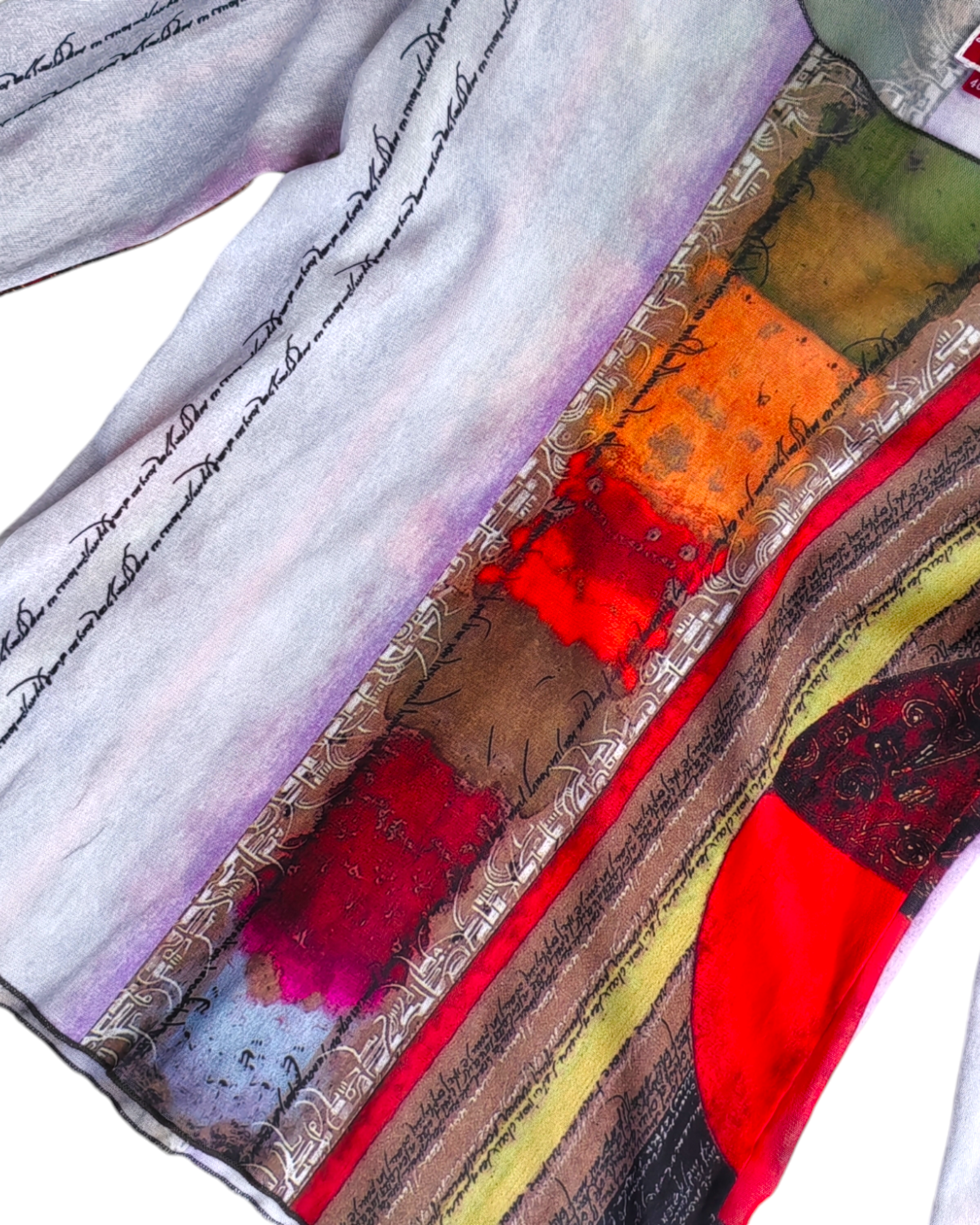 TOP DE MESH MANGA LARGA DE COLORES: ROJO, VERDE, NARANJA, BLANCO, CAFÉ Y NEGRO, CON PATRONES Y LETRAS PINTADAS. SIN DETALLES DE USO.