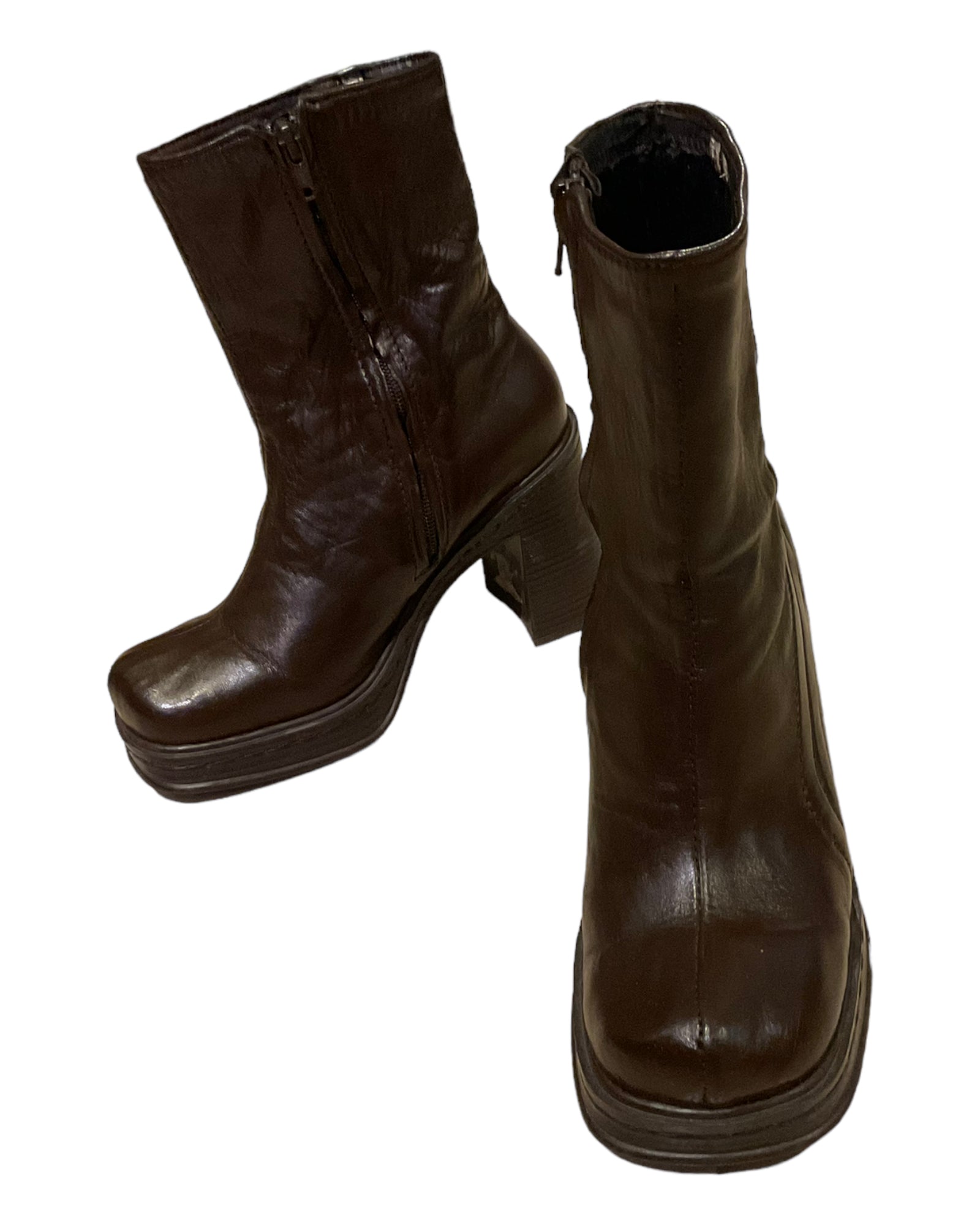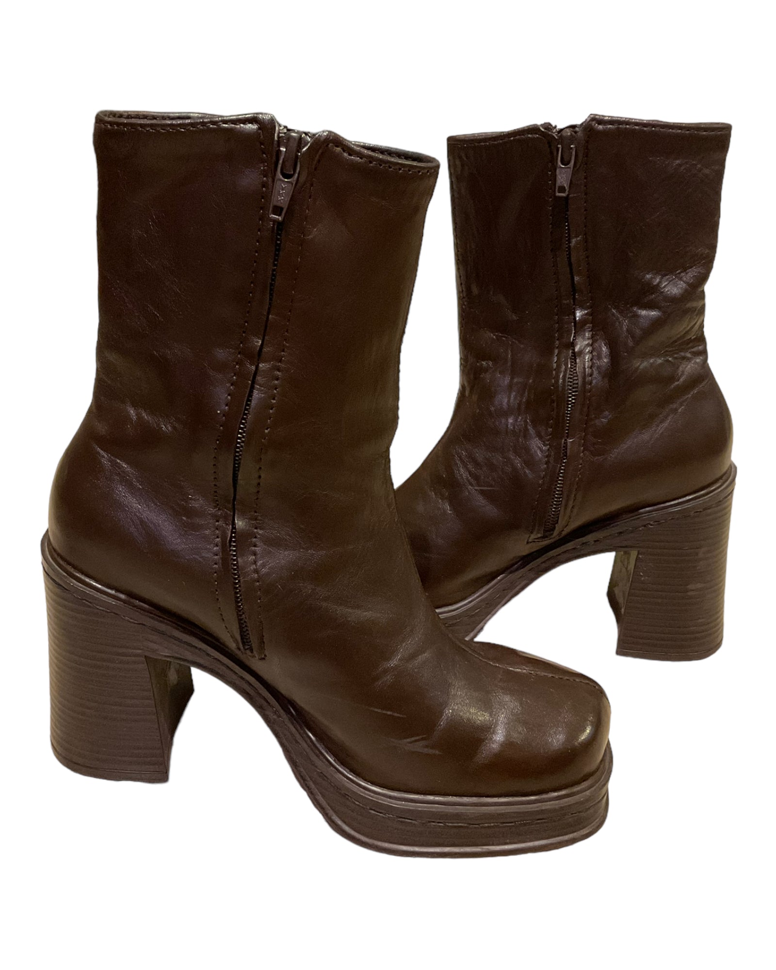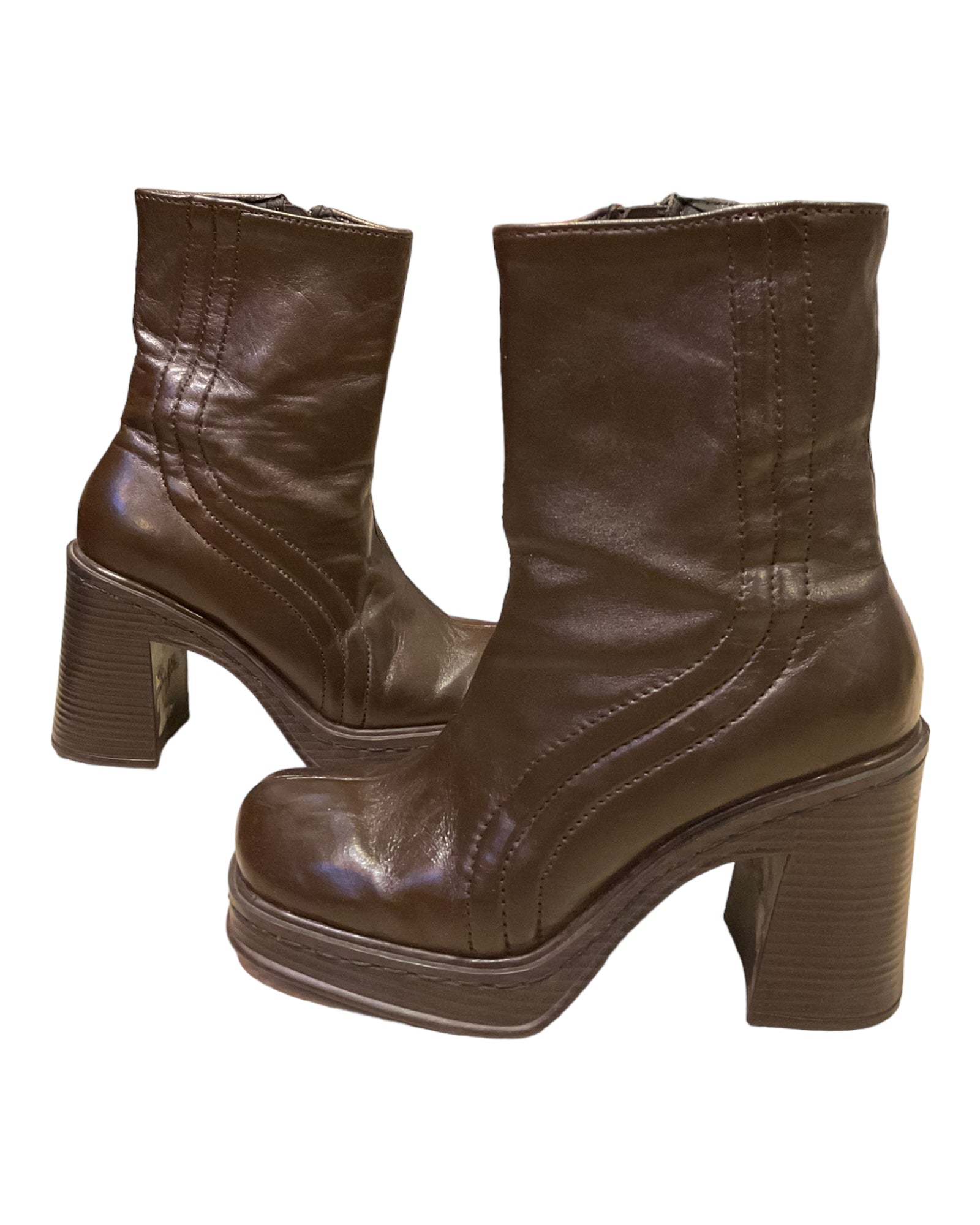 BOTINES DE CUERO CAFÉ CARAMELO CON TACÓN Y CIERRE.