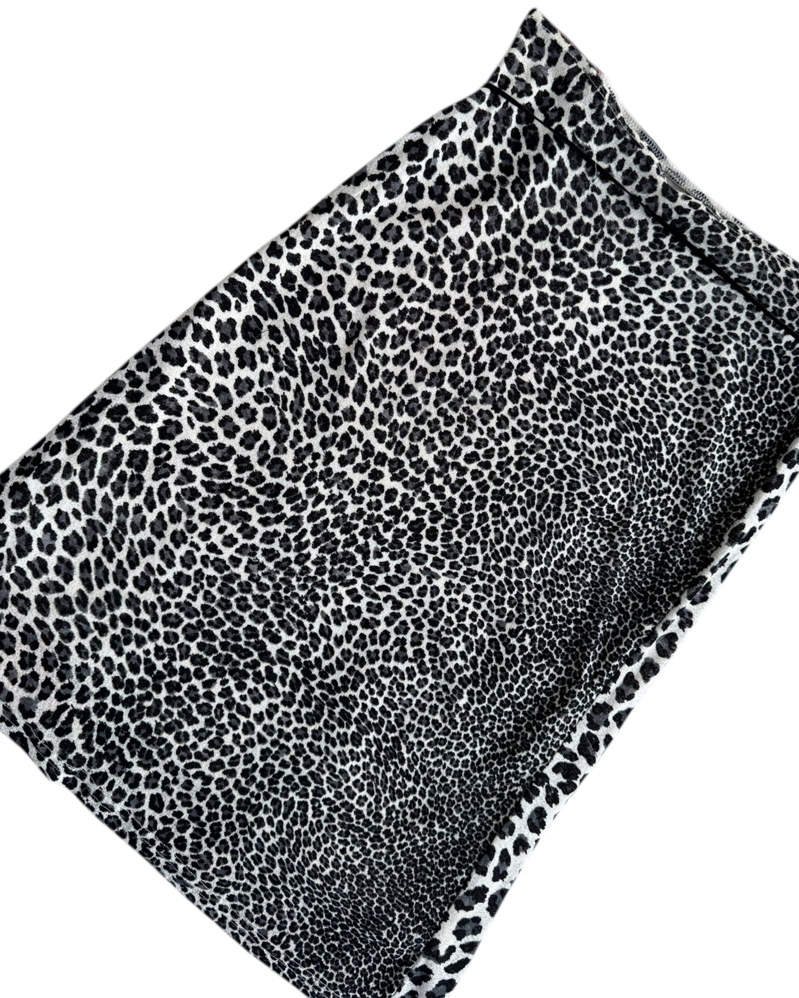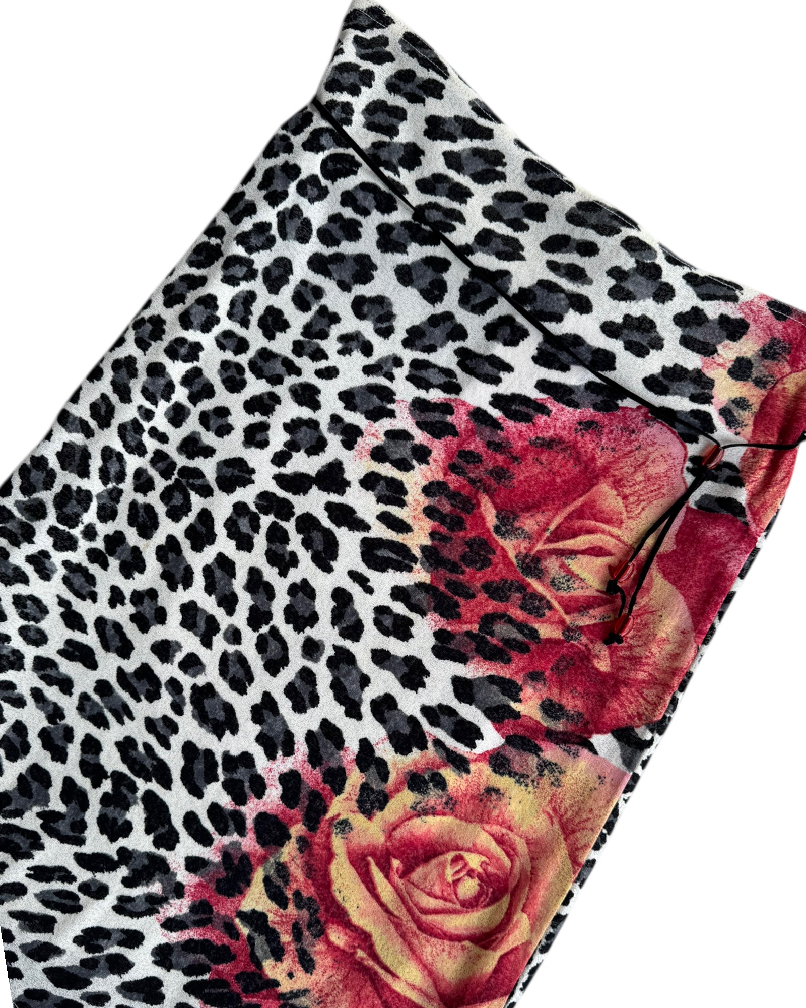 FALDA LARGA CON ANIMAL PRINT COLOR BLANCO Y NEGRO CON PRINT DE UNA ROSA ROJA EN LADO IZQUIERDO. CON CINTILLO NEGRO EN CADERA. SIN DETALLES. EN PERFECTAS CONDCIONES.