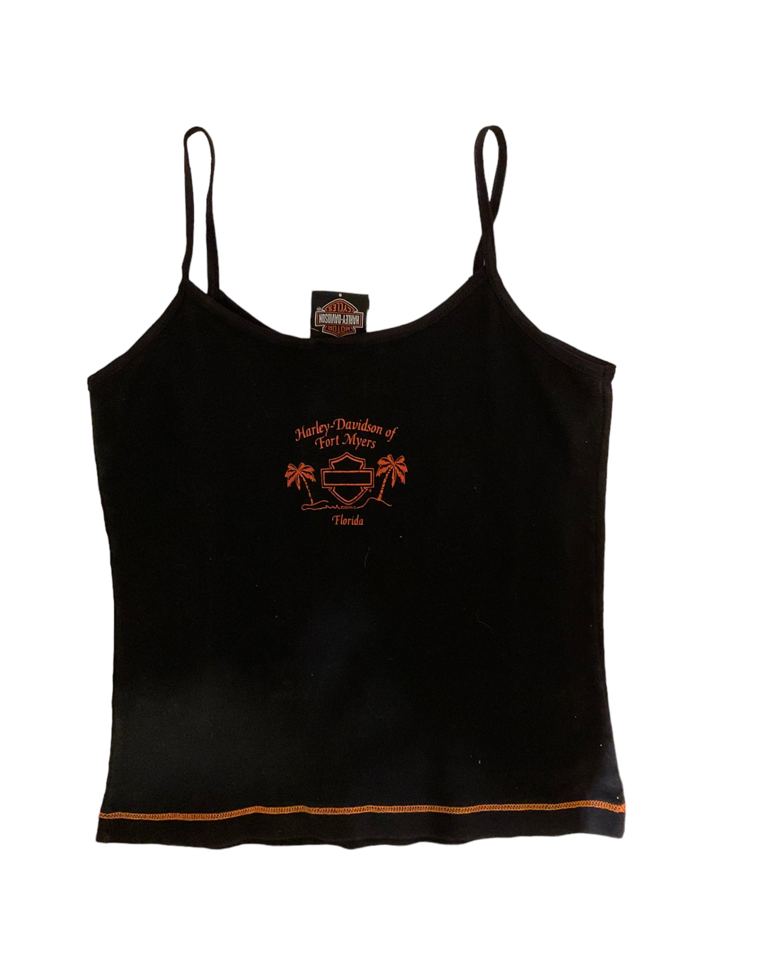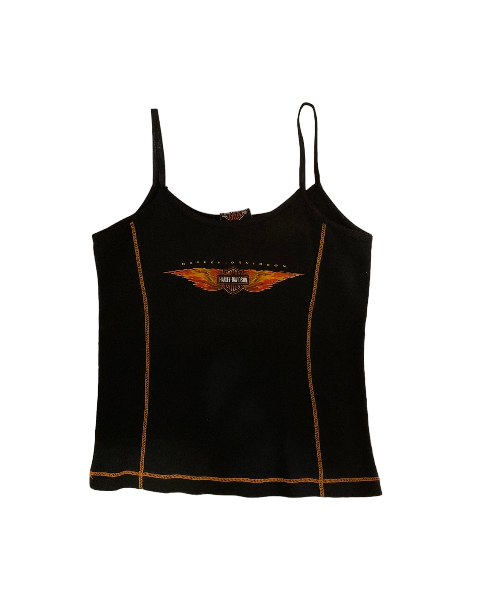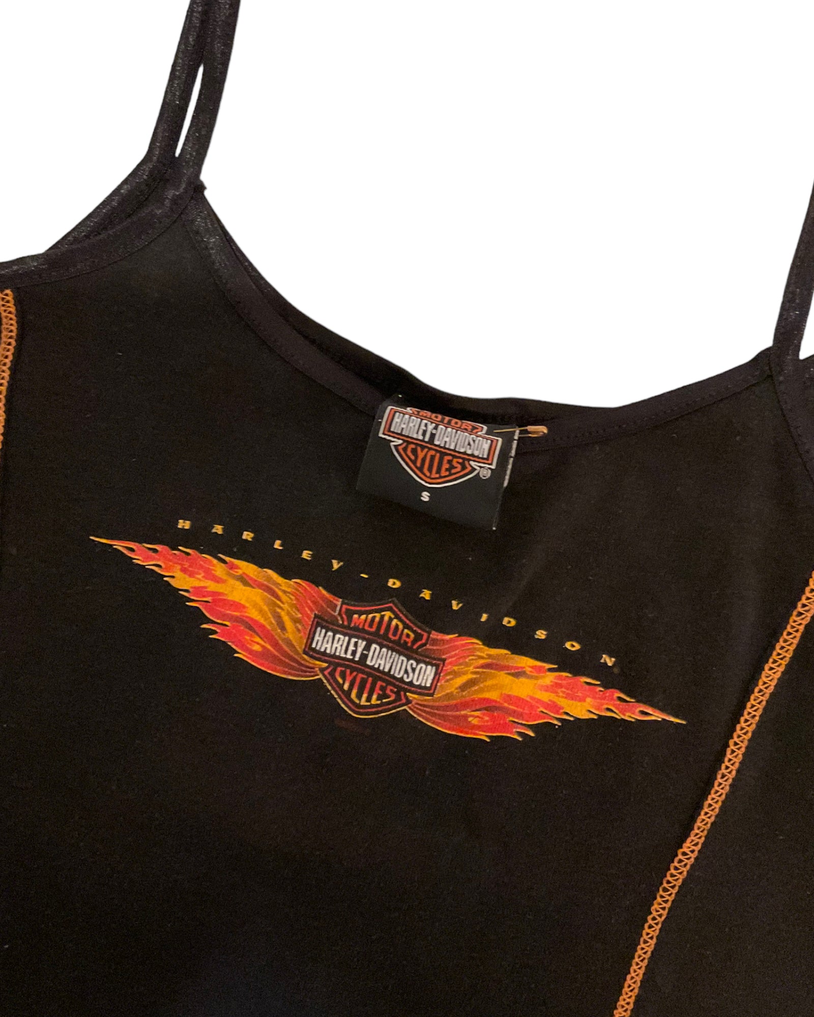 Top Harley Davidson hecho en el 2001 hecho de algodón y poliéster. La tela estira, se nota un poco de deslavado en tela por edad de la prenda pero se ve 100% increíble.