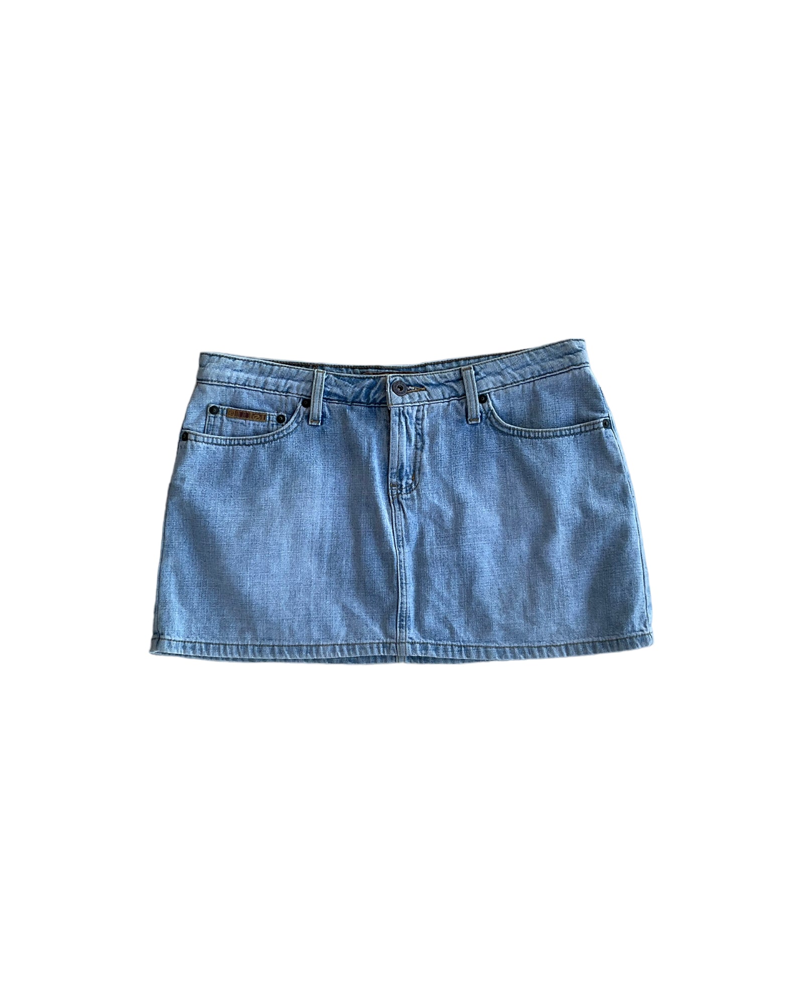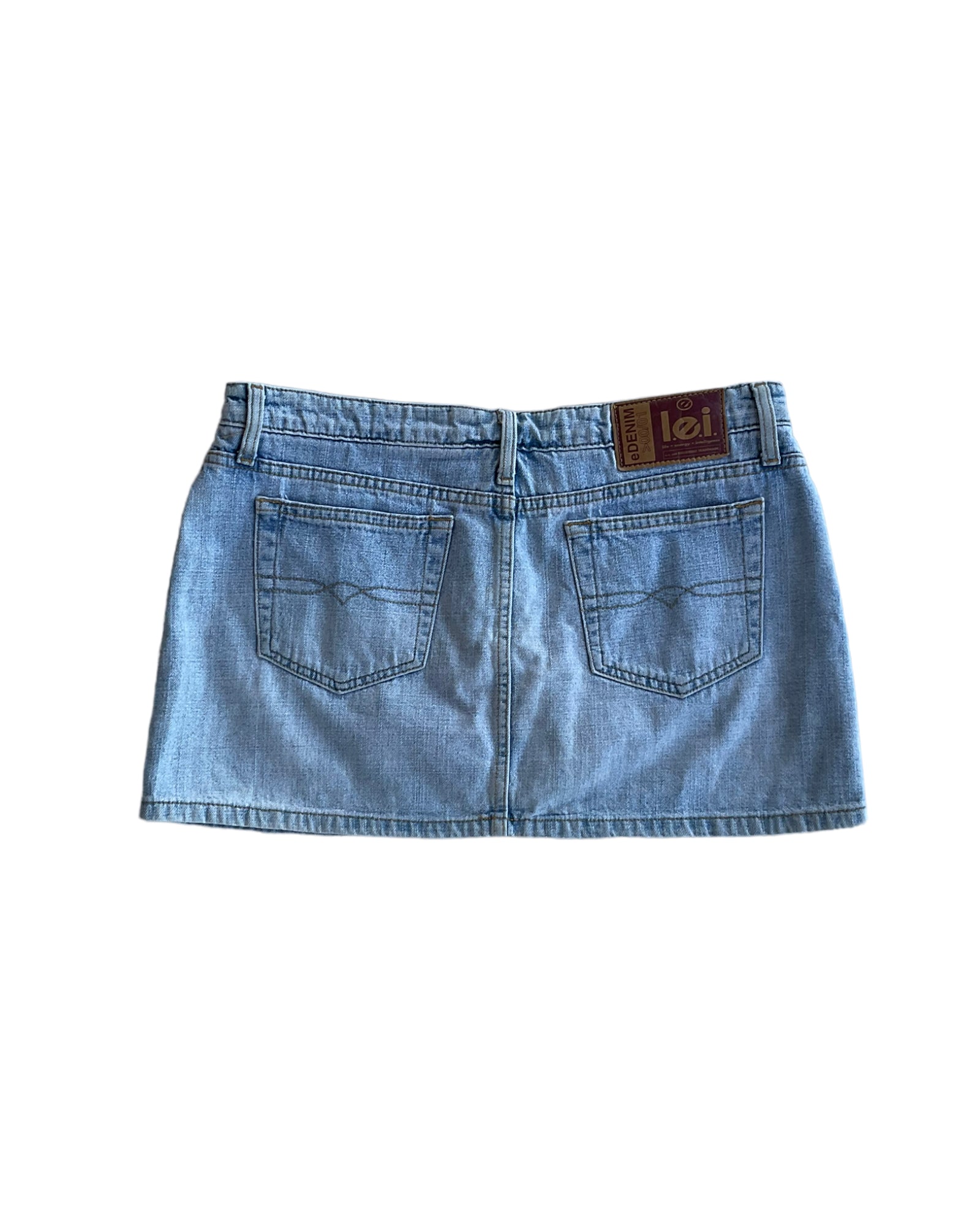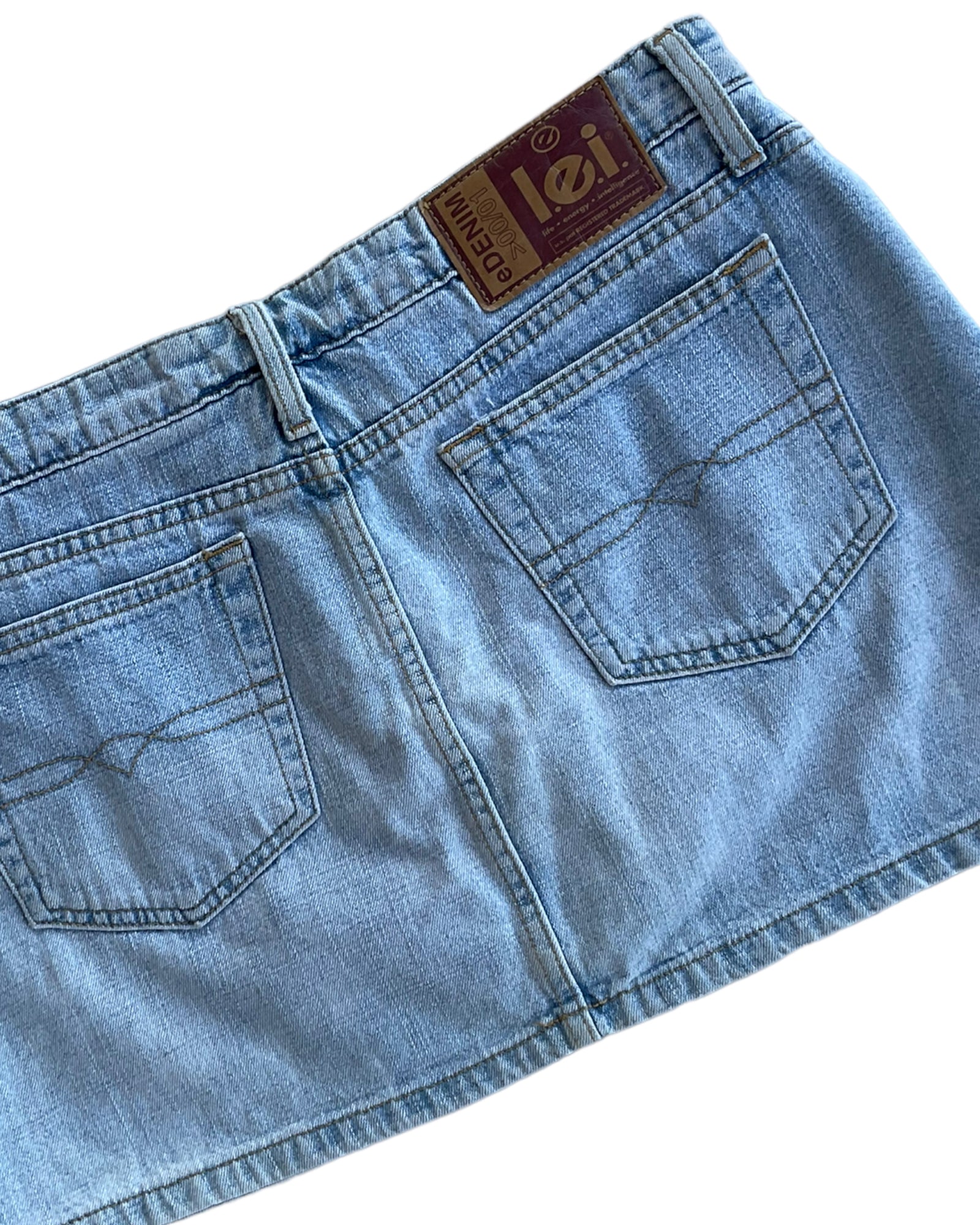 FALDA MINI Y2K. ACID WASH. 100% ALGODÓN. MEZCLILLA MARCA LEI. SIN DETALLES.