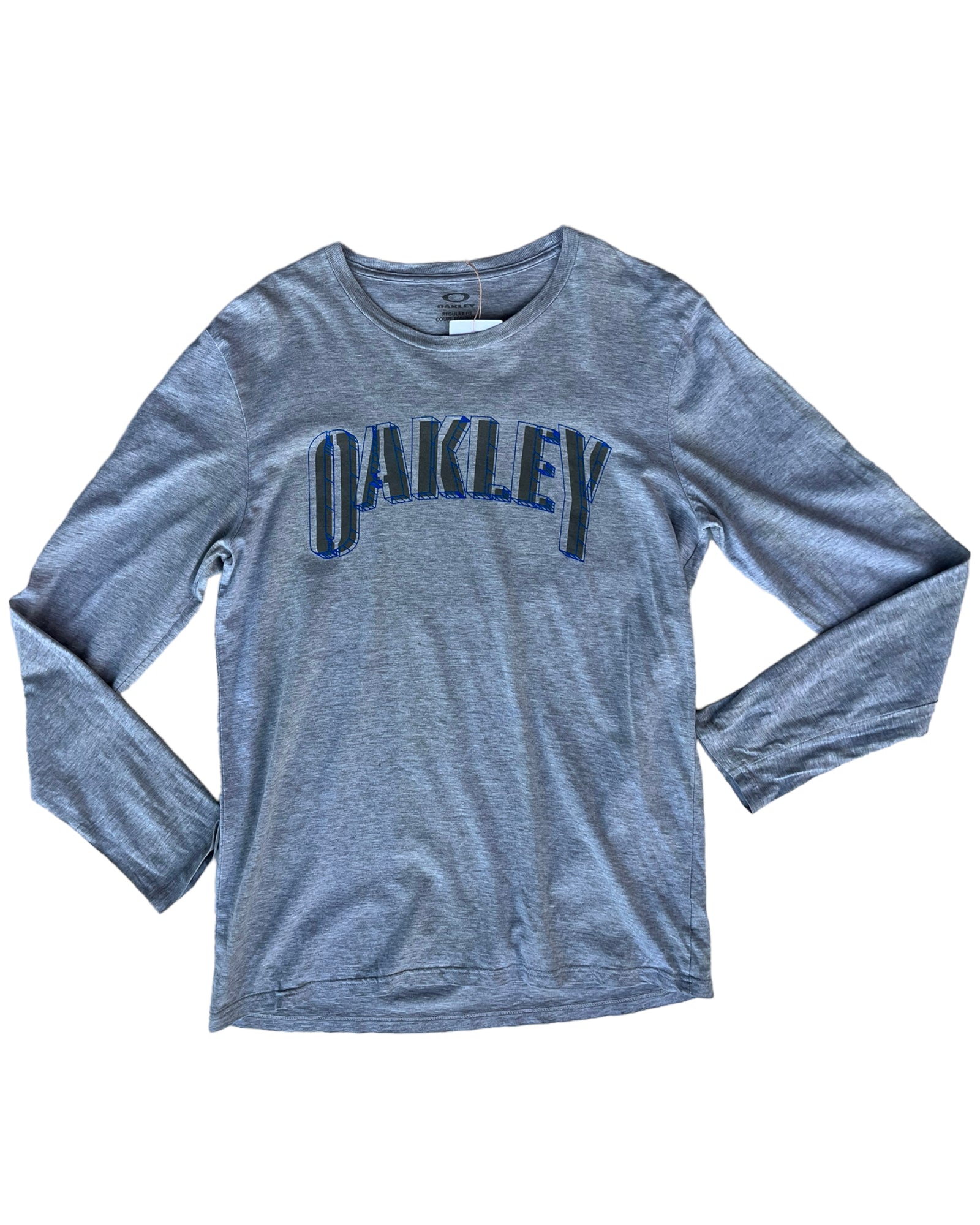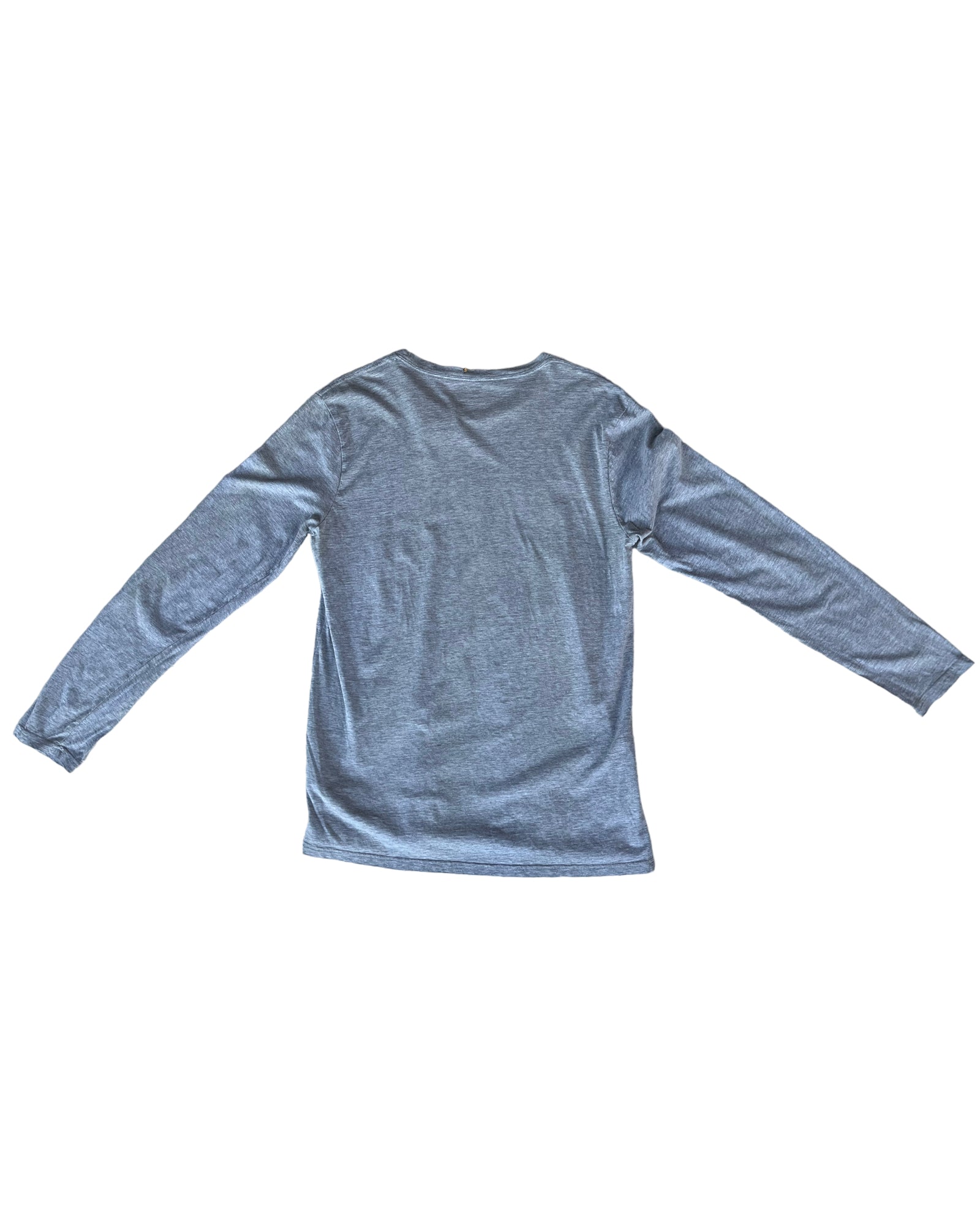 PLAYERA MANGA LARGA GRIS CON LOGO ESTAMPADO EN EL PECHO.