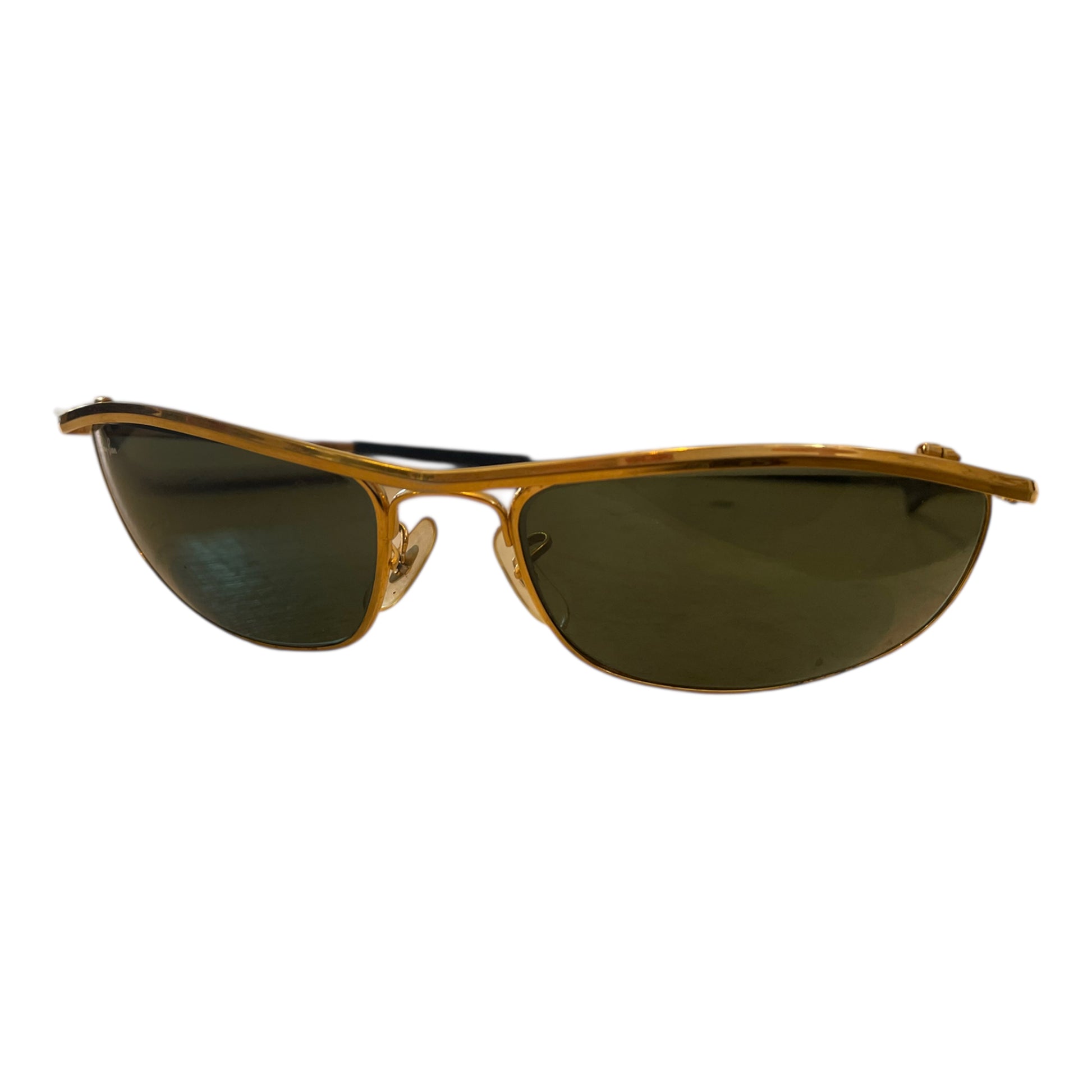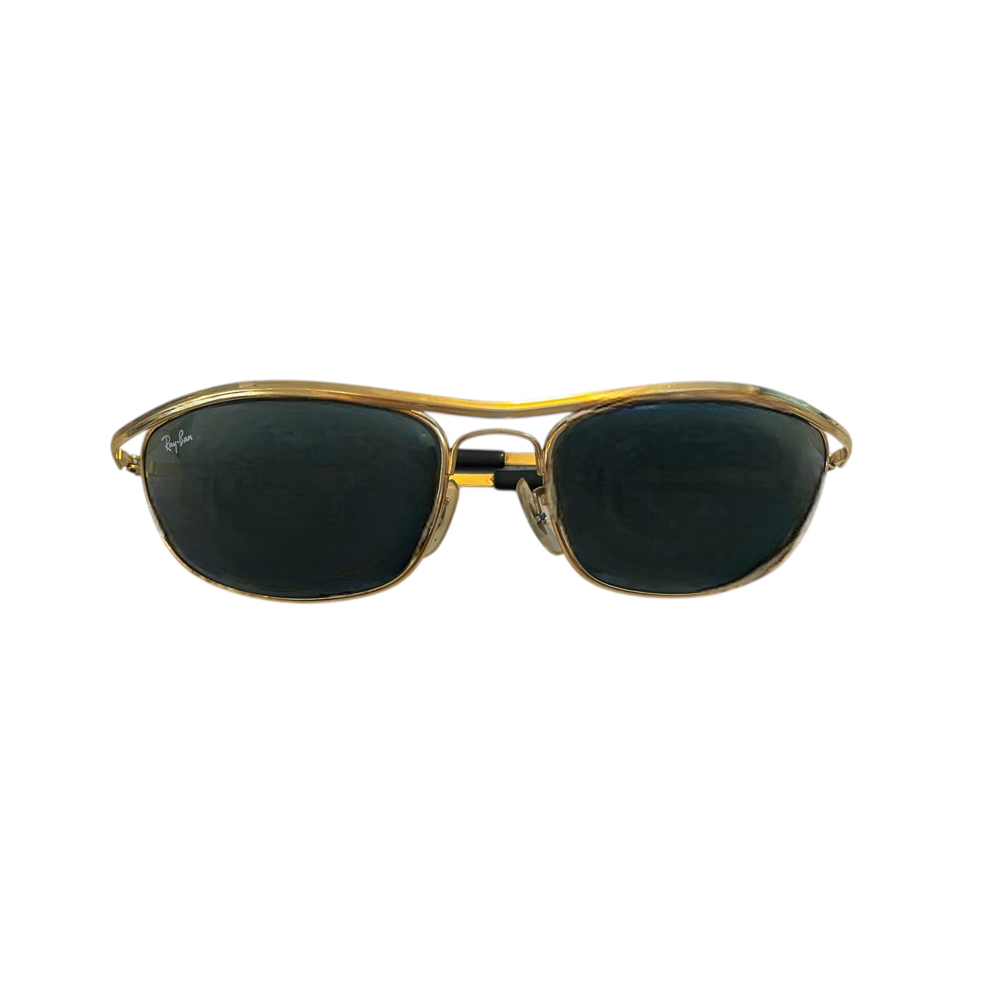 LENTES DE SOL OVALADOS CON ARMAZON Y PATAS EN TONO METALICO DORADO, PELICULAS VERDES, PLAQUETAS NASALES AJUSTABLES, PEQUEÑAS MARCAS EN UNA DE LAS PATAS, NO AFECTA USO.