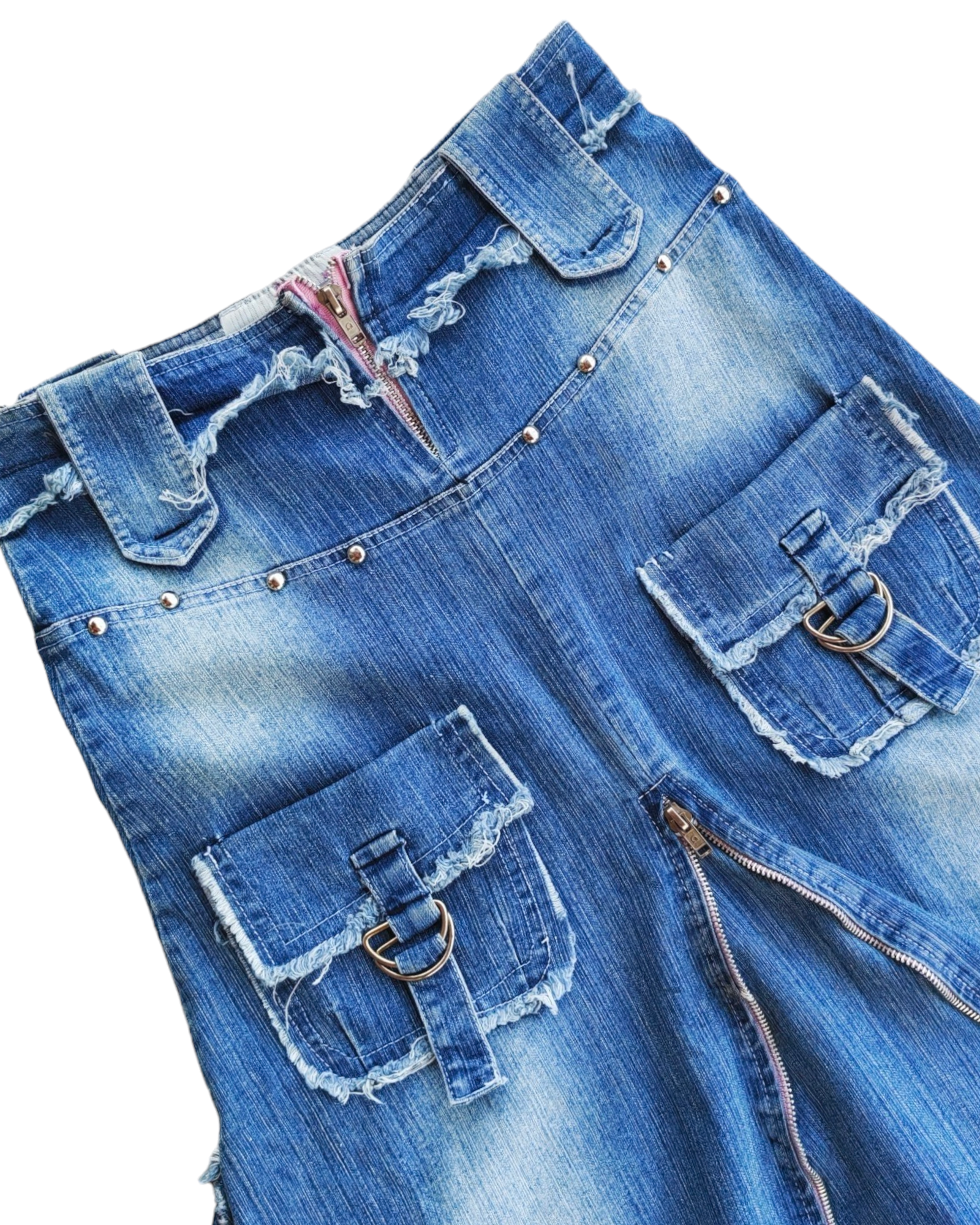 FALDA MARCA SUSTITUTE. MIDI CON DETALLES DE CIERRE Y BOLSILLOS TIPO CARGO. CORTE A.