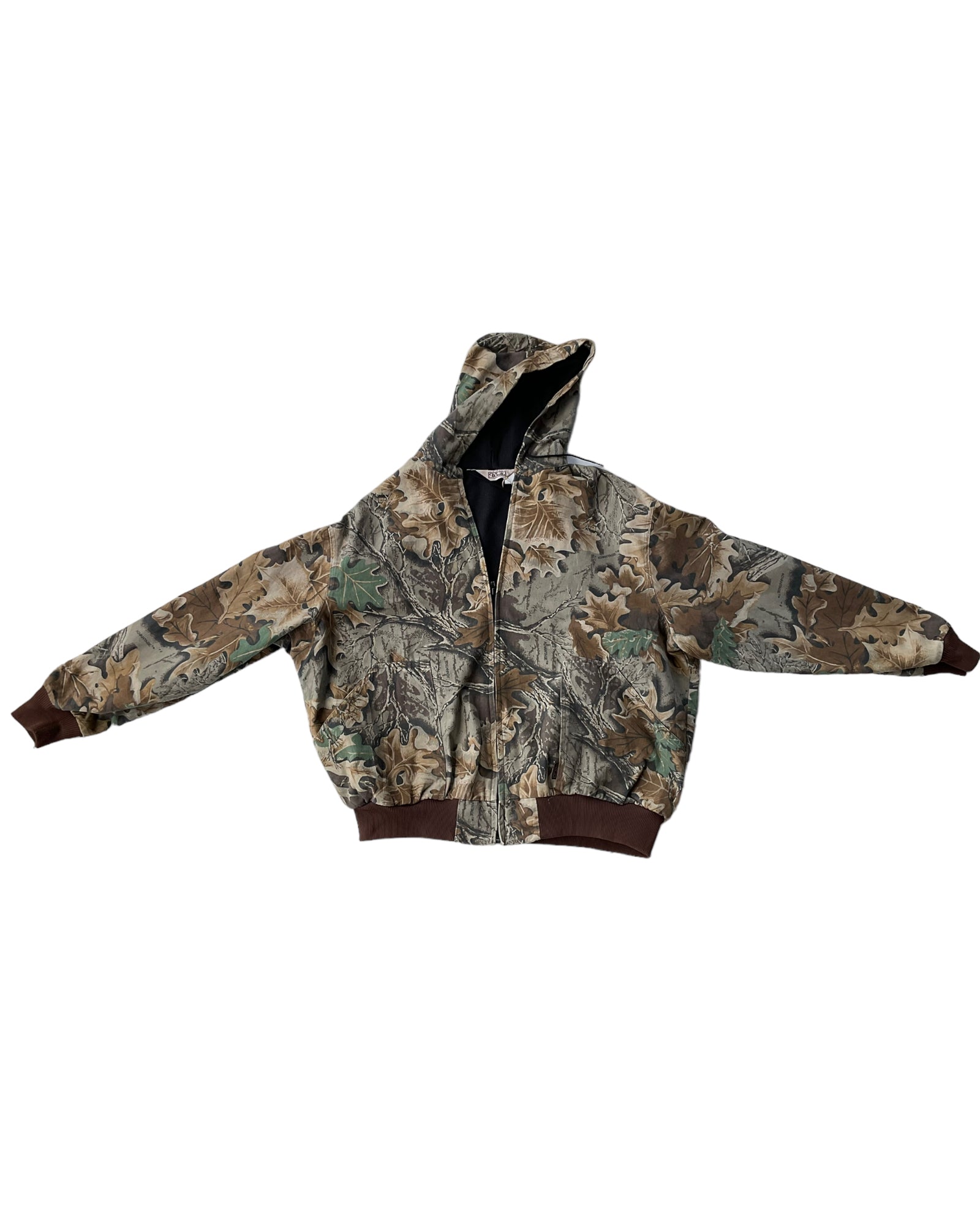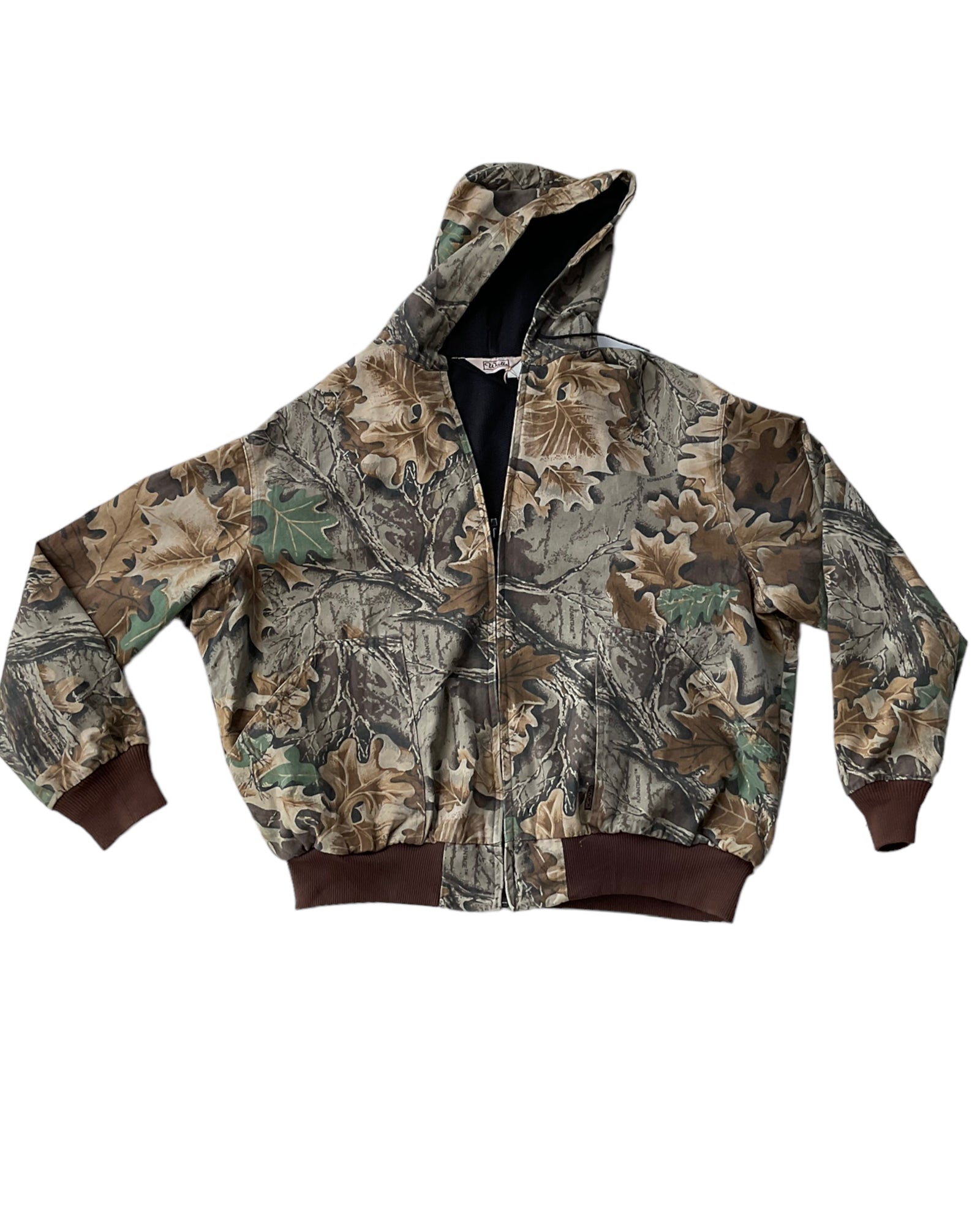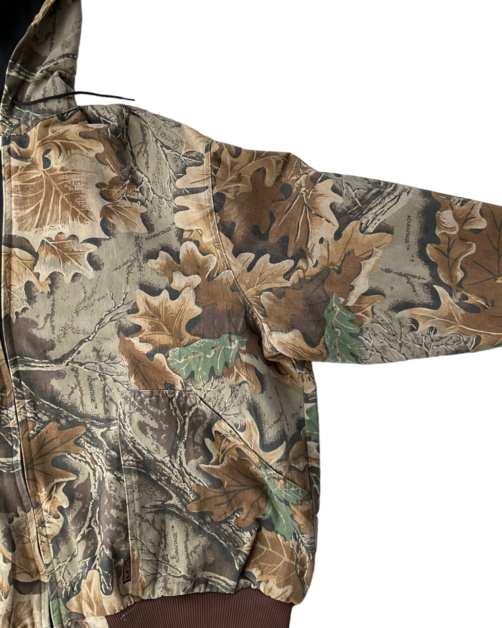 CHAMARRA CON ESTAMPADOS EN TONOS CÁLIDOS Y CAFÉS, CON CAPUCHA, DOS BOLSILLOS FRONTALES. AISLA DEL FRÍO