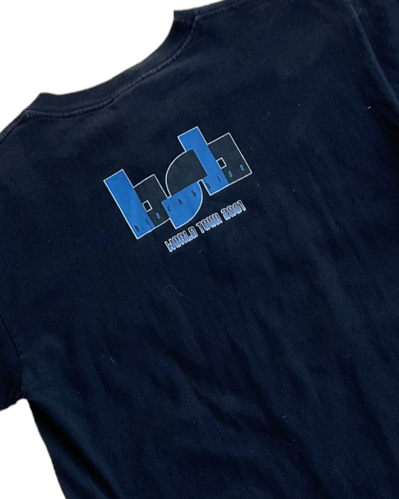 PLAYERA COLOR NEGRO 100% ALGODÓN CON ESTAMPADO CENTRAL DEL LOGO DE LA BANDA CON SUS INTEGRANTES. LEYENDA: BACKSTREET BOYS WORLD TOUR 2001; ESTAMPADO EN LA ESPALDA DE LAS SIGLAS BSB. SIN DETALLES DE USO.