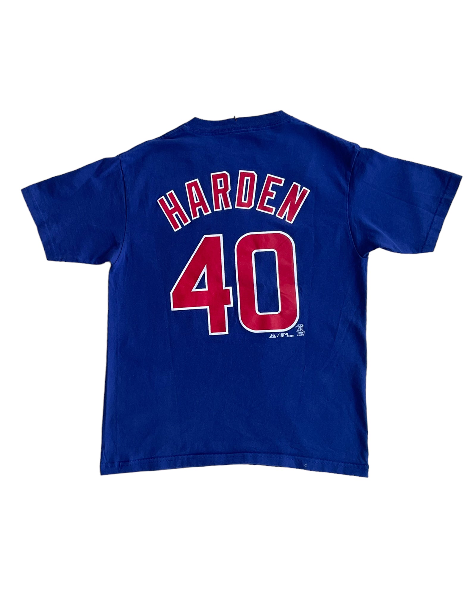 CAMISA 100% ALGODÓN COLOR AZUL CON EL LOGO DE LOS CHICAGO CUBS ESTAMPADO EN EL PECHO EN COLORES AZUL Y ROJO. ESTAMPADO TRASERO "HARDEN 40" EN COLOR ROJO. SIN DETALLES DE USO.