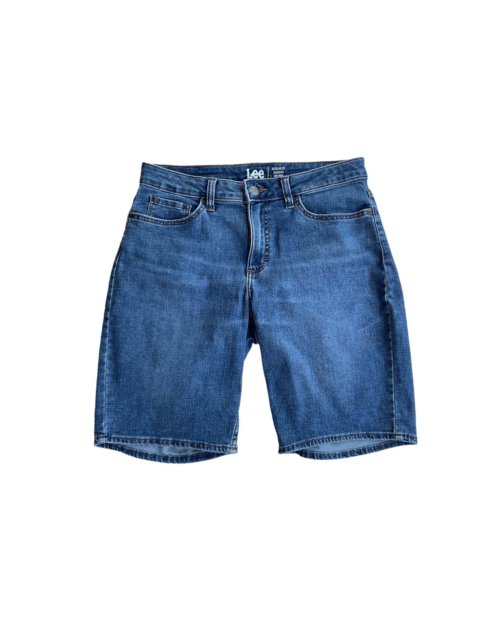 MOM SHORTS 70% ALGODÓN 29% POLIÉSTER 1% SPANDEX DE COLOR AZUL MARINO. DOS BOLSILLOS DELANTEROS Y DOS TRASEROS. BOTÓN COBRE CON GRABADO DEL NOMBRE DE LA MARCA. SIN DETALLES DE USO