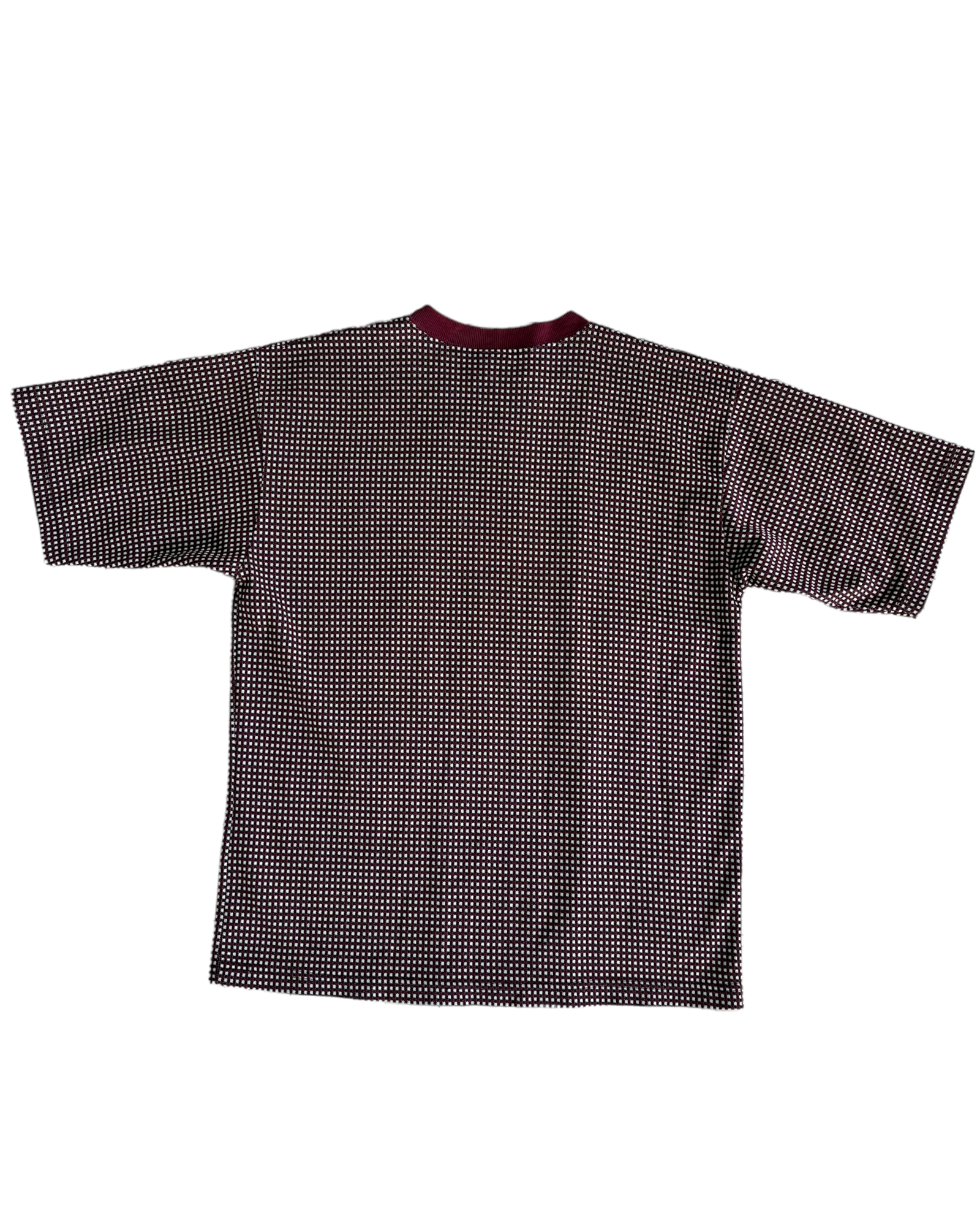 PLAYERA A CUADROS ROJO VINO, BLANCO Y NEGRO
