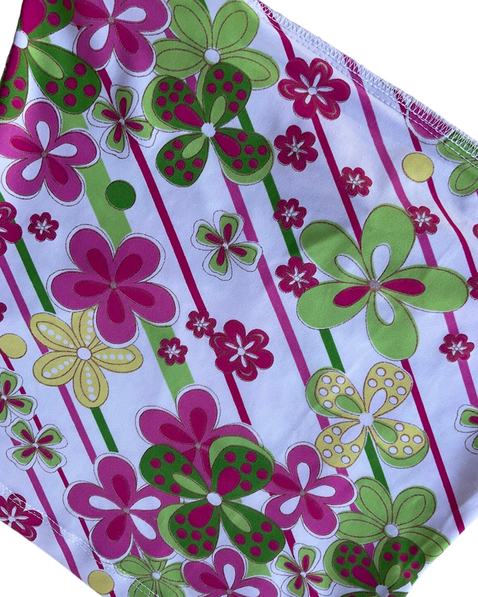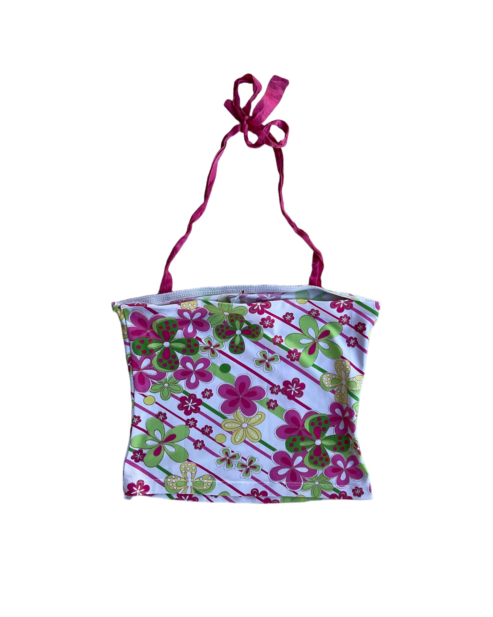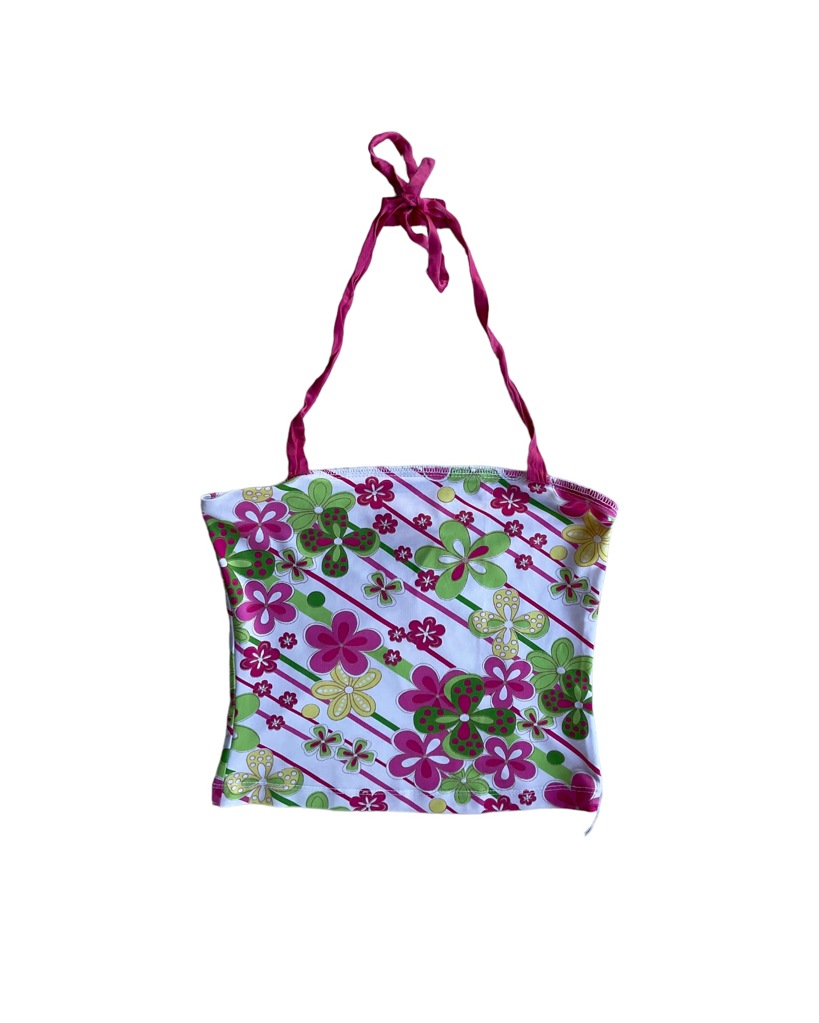 TOP BLANCO CON ESTAMPADO DE FLORES Y RAYAS CON TIRANTE EN EL CUELLO, 100% SPANDEX
