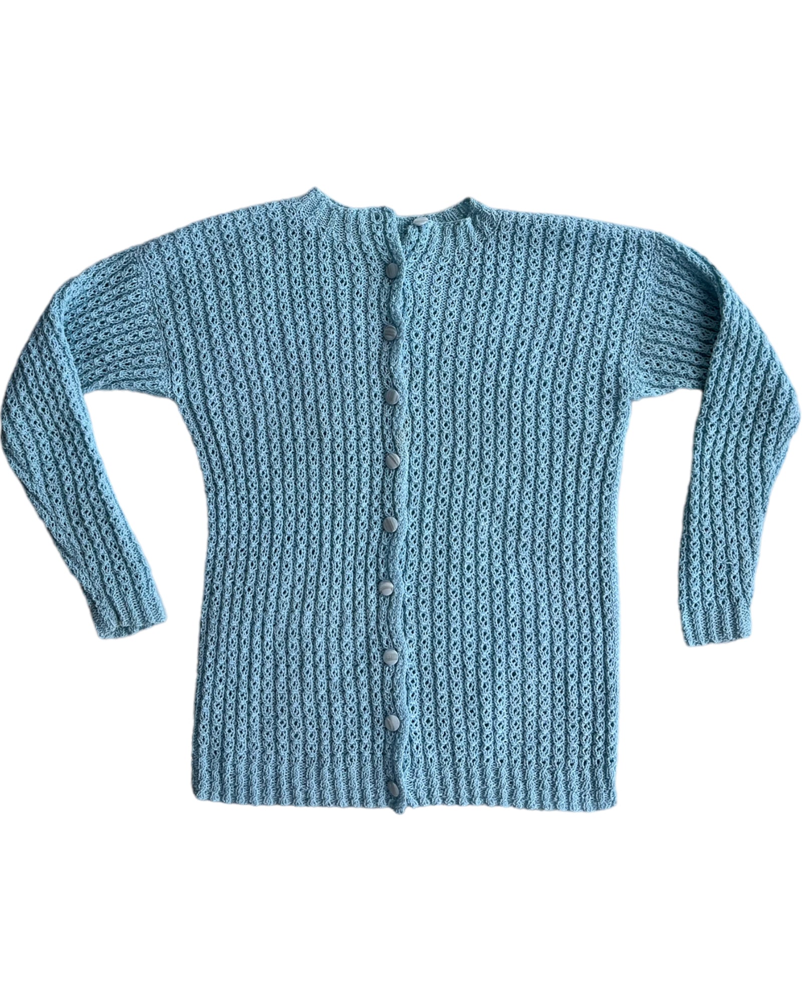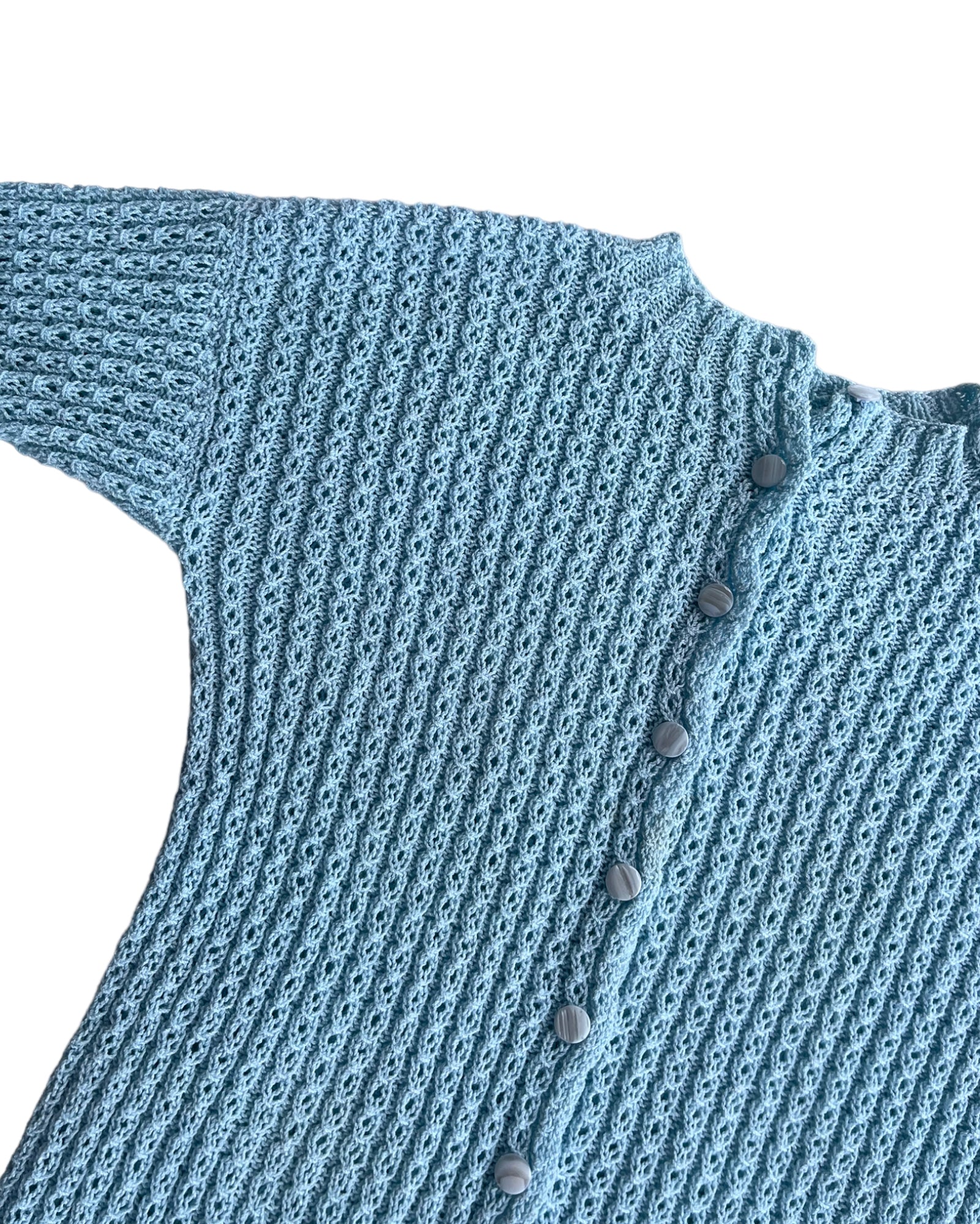 CÁRDIGAN AZUL CIELO TEJIDO CON BOTONES. ESTAMBRE DE ACRÍLICO