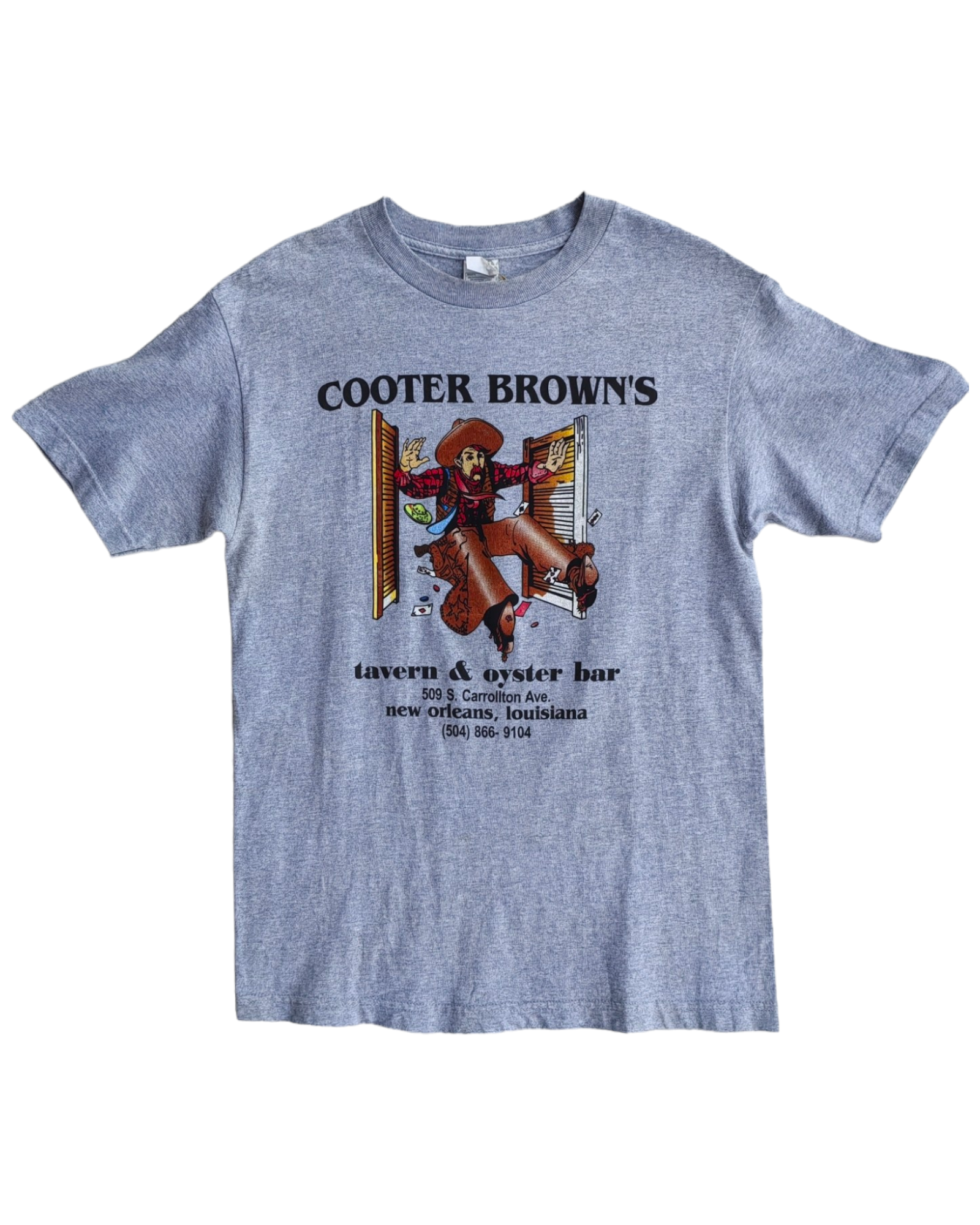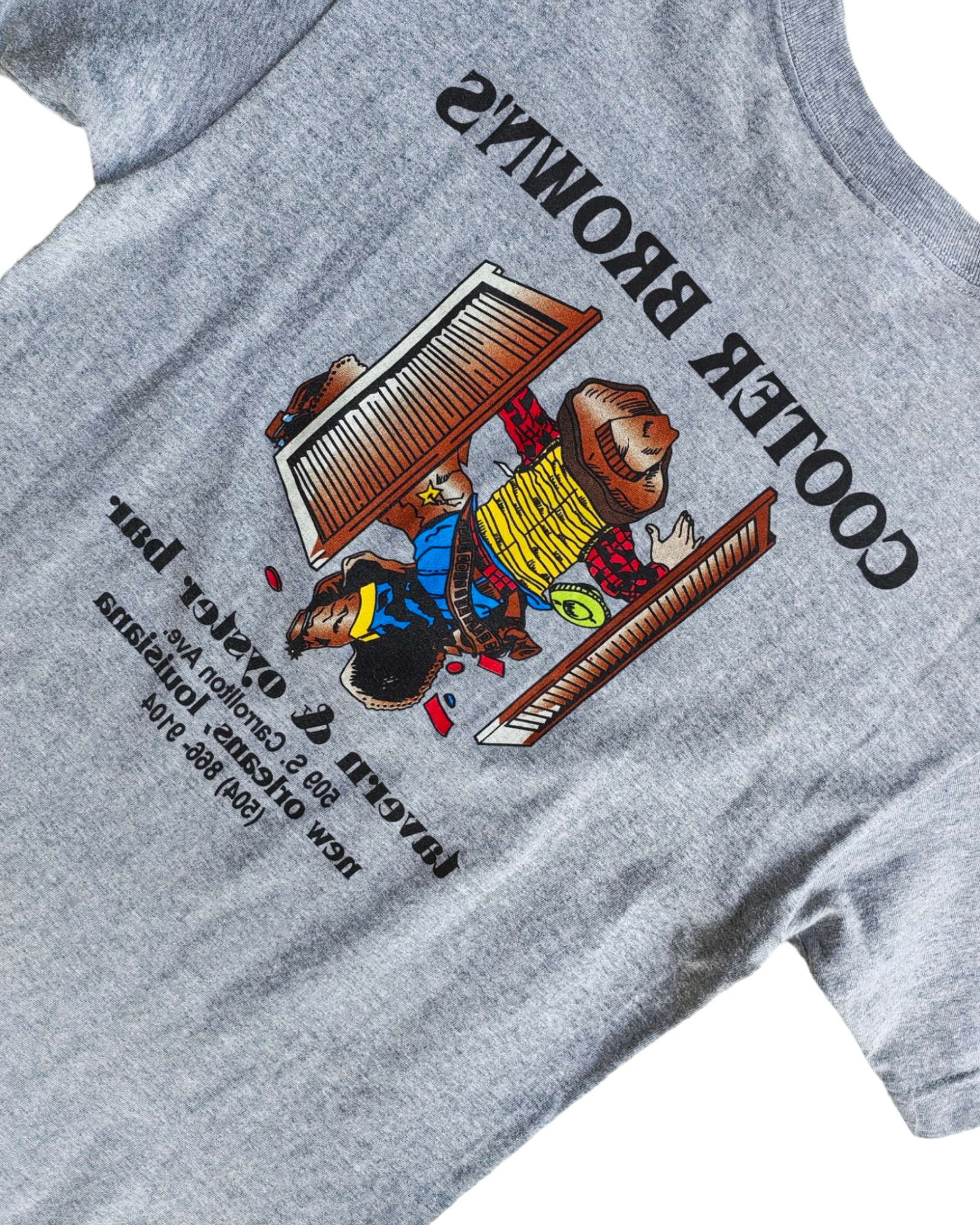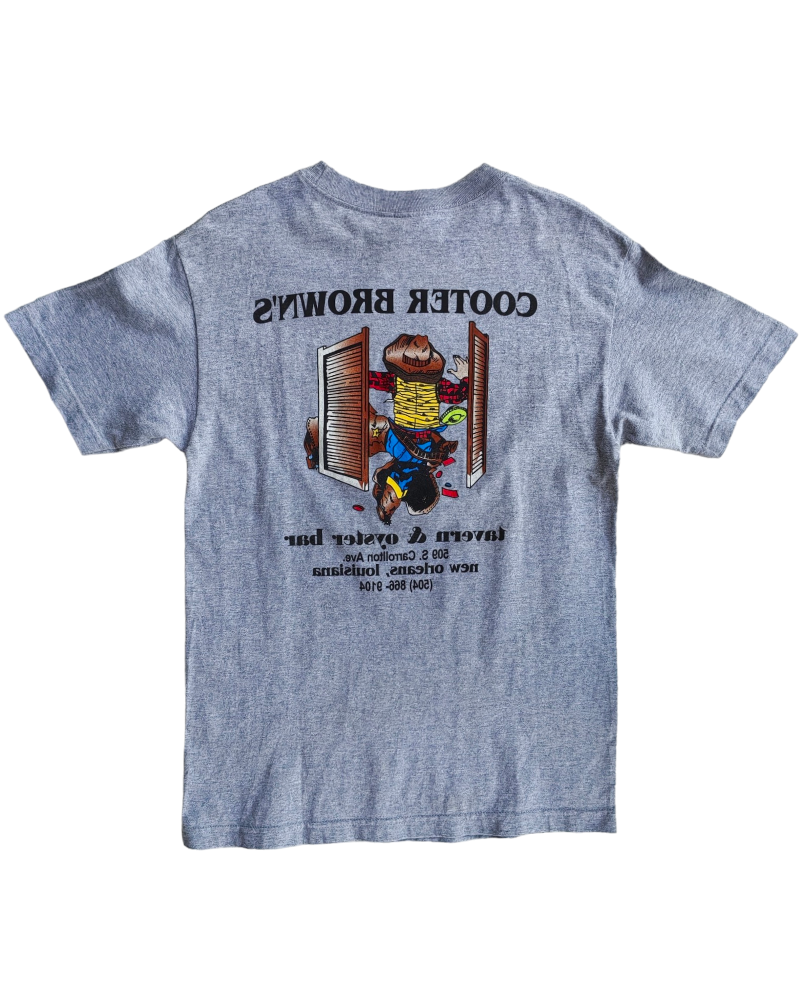 PLAYERA GRIS CON ESTAMPADO DE VAQUERO POR AMBOS LADOS, MANGA CORTA, 100% POLIESTER