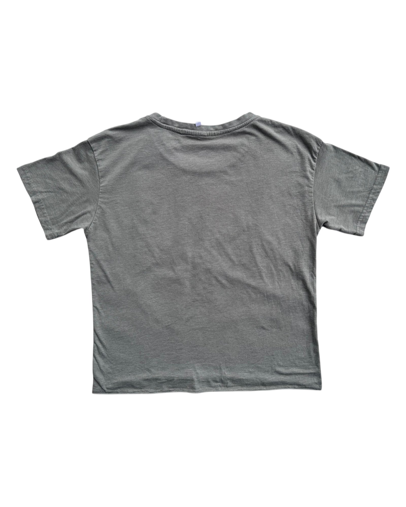 T-SHIRT GRIS CLARO CON ESTAMPADO ÚNICAMENTE AL FRENTE DE BETTY BOOP CON ALAS MONTADA EN UNA MOTOCICLETA, REVERSO LISO Y SIN ESTAMPADOS, 60% ALGODÓN, 40% POLIÉSTER