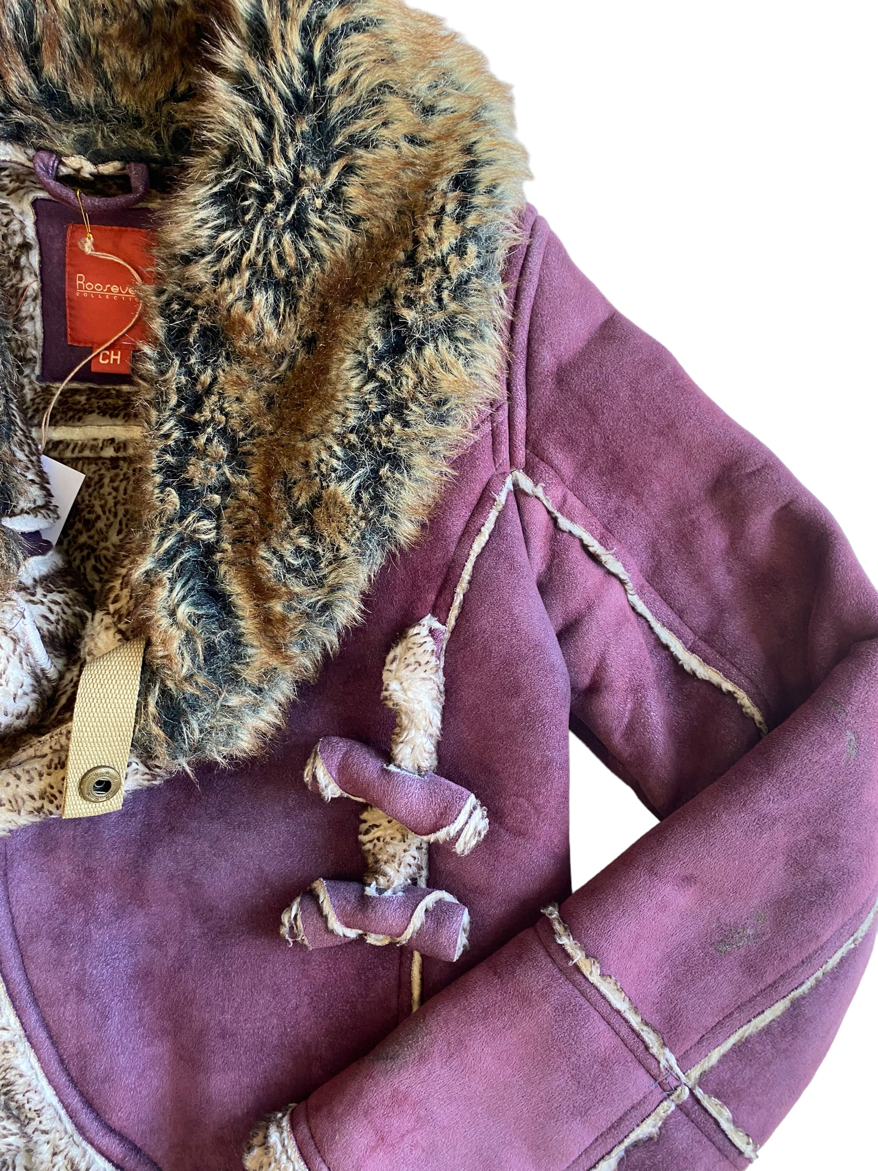 CHAMARRA ROOSEVELT COLOR VINO CON PELUCHE. EXTERIOR HECHO DE POLIÉSTER Y FORRO HECHO DE POLIÉSTER CON ACRÍLICO