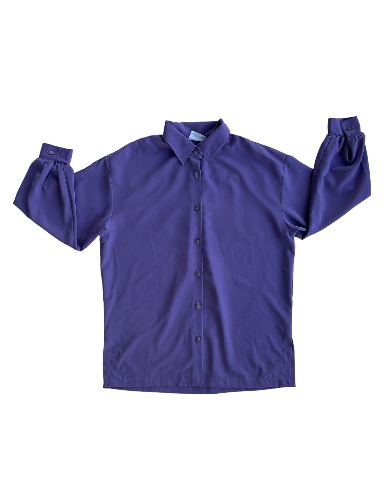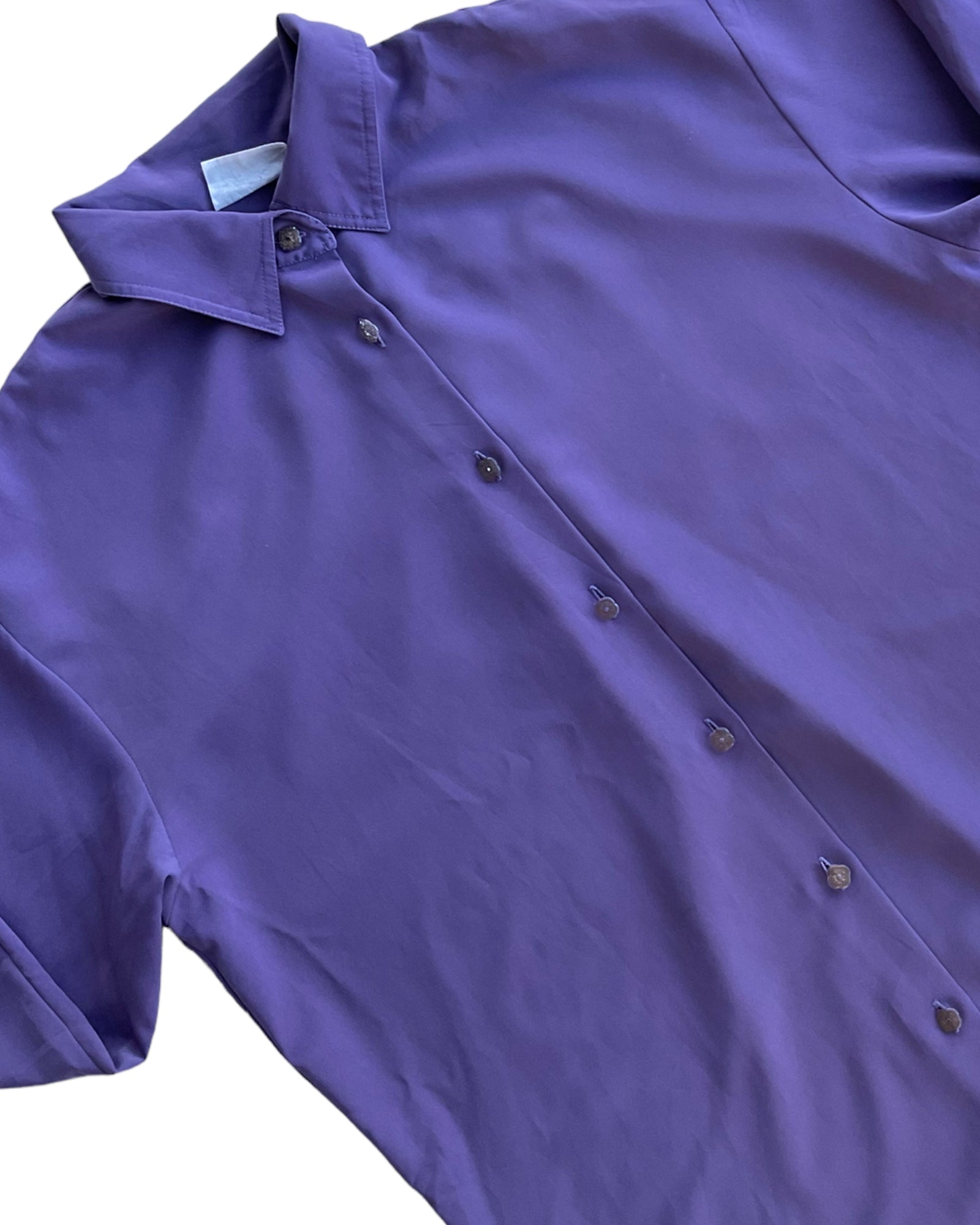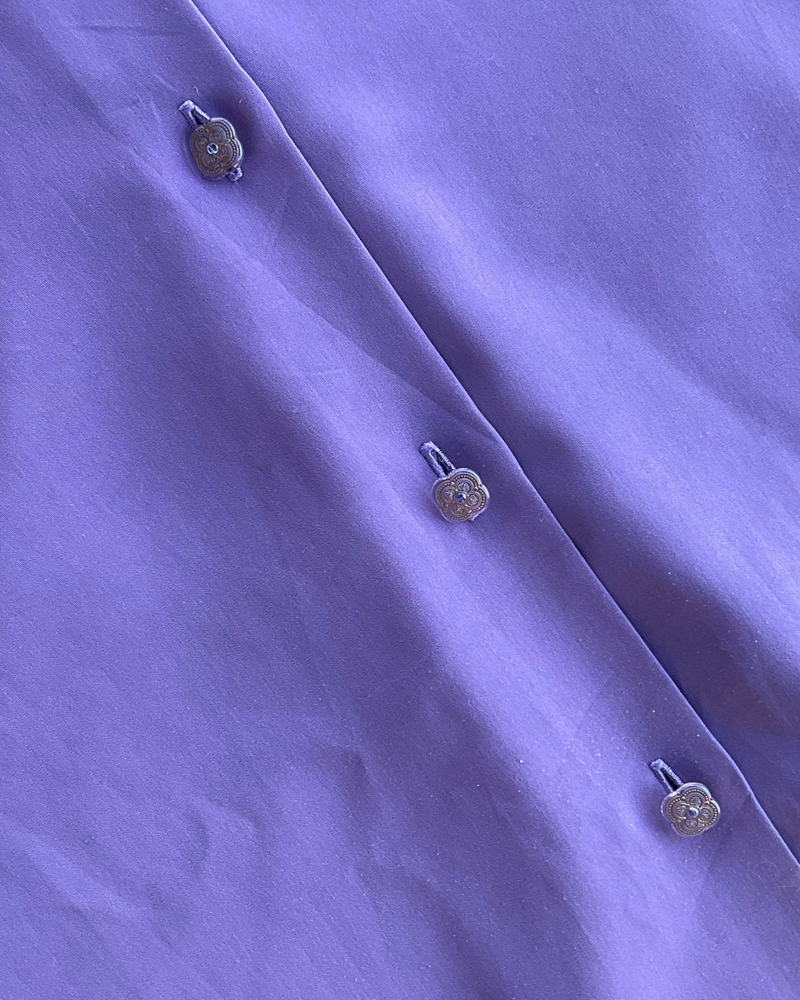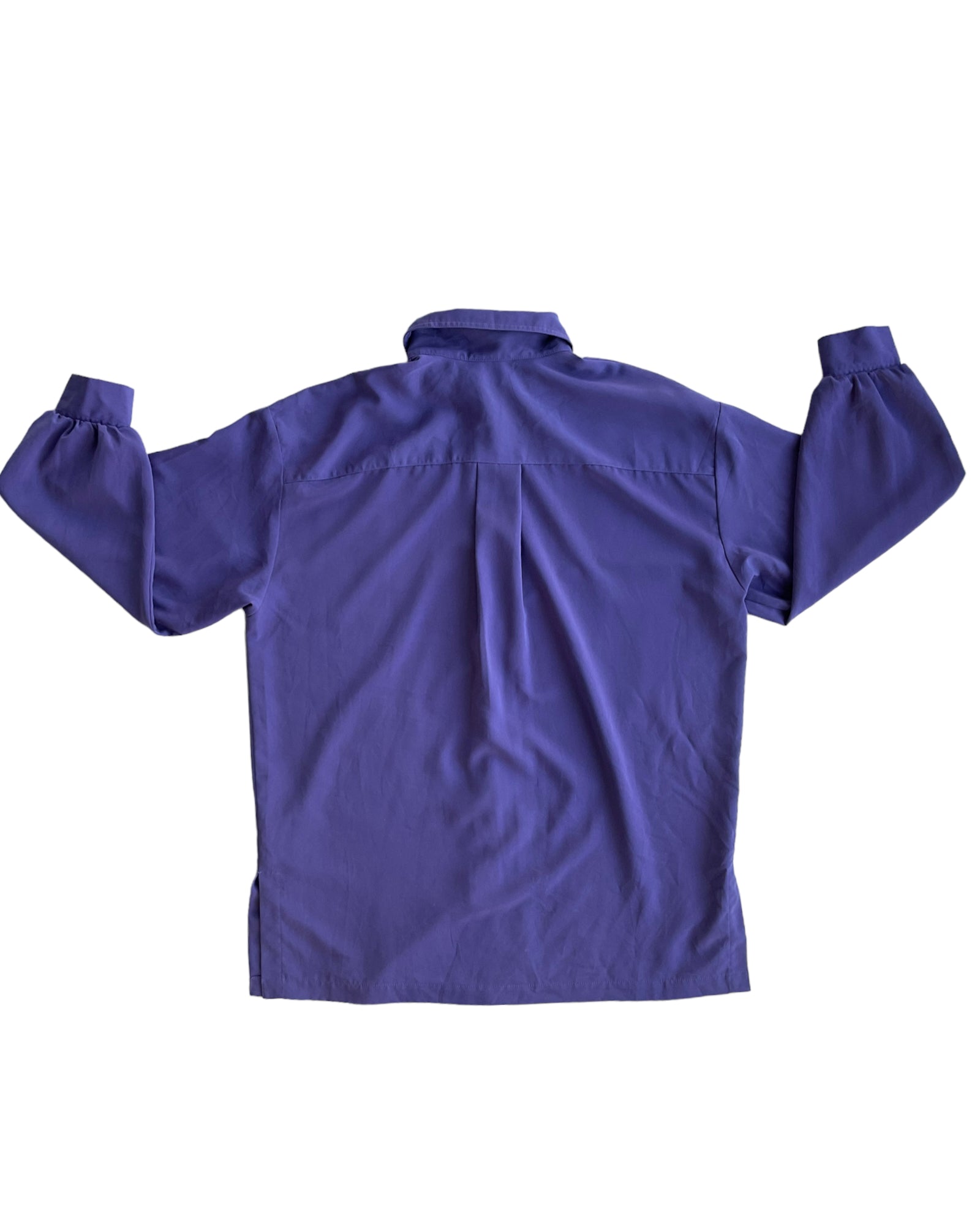 CAMISA MANGA LARGA DE BOTONES, COLOR MORADO 100% POLIÉSTER. DETALLES ORNAMENTALES EN LOS BOTONES.